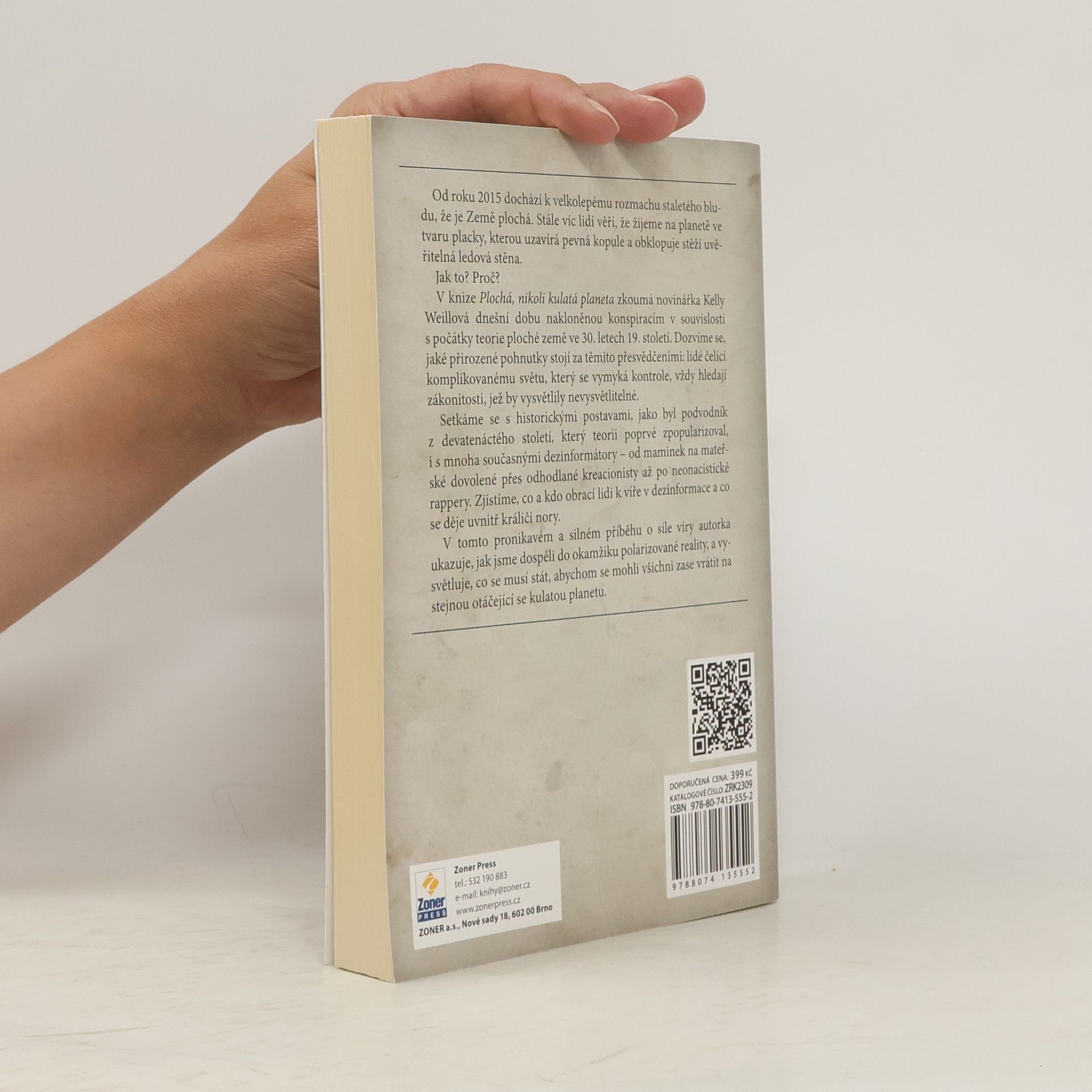 Konspirační teorie, plochozemci… Pokud chcete pochopit, jak se okrajové jevy staly naší novou normou, tuto knihu si nutně potřebujete přečíst. Od roku 2015 dochází k velkolepému rozmachu staletého bludu, že je Země plochá. Stále víc lidí věří, že žijeme na planetě ve tvaru placky, kterou uzavírá pevná kopule a obklopuje stěží uvěřitelná ledová stěna. Jak to? Proč? V knize Plochá, nikoli kulatá planeta (Off the Edge)zkoumá novinářka Kelly Weillová přímou návaznost mezi dnešní dobou nakloněnou konspiracím, která překypuje nejen plochozemci, ale i stoupenci dezinformačních webů, a počátky teorie ploché země ve 30. letech 19. století. Dozvídáme se, jaké přirozené pohnutky stojí za těmito přesvědčeními: lidé čelící komplikovanému světu, který se vymyká kontrole, vždy hledají zákonitosti, jež by vysvětlily nevysvětlitelné. Tato psychologie se nemění. S nástupem jednadvacátého století se však změnilo něco jiného. Hnutí za plochou Zemi, podporované algoritmy Facebooku a YouTube, nabývá na síle. V knize Plochá, nikoli kulatá planeta, která je zároveň vyčerpávající historií tohoto hnutí i zásadním pohledem na jeho neuvěřitelnou současnost, se setkáváme s historickými postavami, jako byl podvodník z devatenáctého století, který teorii poprvé zpopularizoval, i s mnoha současnými dezinformátory, se kterými se Weillová seznámila, od maminek na mateřské dovolené přes odhodlané kreacionisty až po neonacistické rappery. Zjistíme, co a kdo obrací lidi k víře v dezinformace a co se děje uvnitř králičí nory. A dokonce se dozvíme i o muži, který se rozhodl letět do vesmíru v podomácku vyrobeném balonu poháněném raketou a jehož tragická smrt je stejně nesmyslná a absurdní jako teorie, kterou se rozhodl dokázat. V tomto pronikavém a silném příběhu o síle víry Kelly Weillová zkoumá, jak jsme dospěli do okamžiku polarizované reality, a vysvětluje, co se musí stát, abychom se mohli všichni zase vrátit na stejnou otáčející se kulatou planetu.