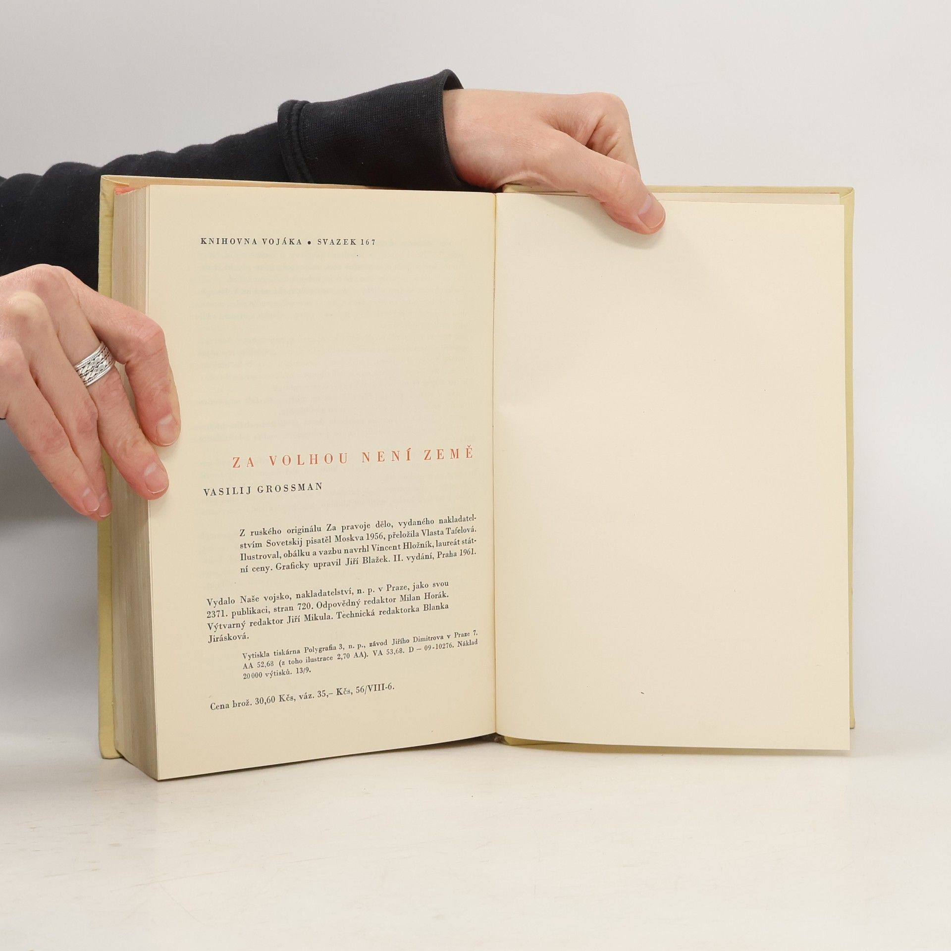Velkolepá románová freska o stalingradské bitvě Za Volhou není země, kterou napsal Vasilij Grossman několik let po ukončení 2. světové války, si získala v sovětské válečné literatuře své pevné místo. Její bezprostřednost, humanistický patos, ale i autorovo poctivé úsilí proniknout do složitých zákonitostí, příčin, zdrojů individuálního i kolektivního jednání, jež vytváří dějiny a rozhoduje o osudech jednotlivců a národů, budou vždy znovu a znovu upoutávat pozornost čtenářů. Román Za Volhou není země zůstal torzem rozsáhlé epopeje. Nenajdeme zde vpravdě šolochovovské nebo tolstojovské psychologické vedení postav a spletitou propojenost historických událostí s jejich individuálními osudy v bohatě rozvětvených dějových liniích. Síla Grossmanovy knihy tkví jinde – především v opravdovosti a autentické pravdivosti, s níž autor vydává své hořké svědectví. Spočívá ve spisovatelově umění mozaikovitě, kamínek ke kamínku, skládat líčení válečných událostí, drobné postřehy, filozofická zamyšlení, desítky živě vykreslených postav a postaviček sovětských vojáků, jejich rodin v zázemí i ohroženém Stalingradu do monumentálního celku, do sugestivního obrazu jedné z největších bitev druhé světové války – bitvy u Stalingradu. (předsádka)
