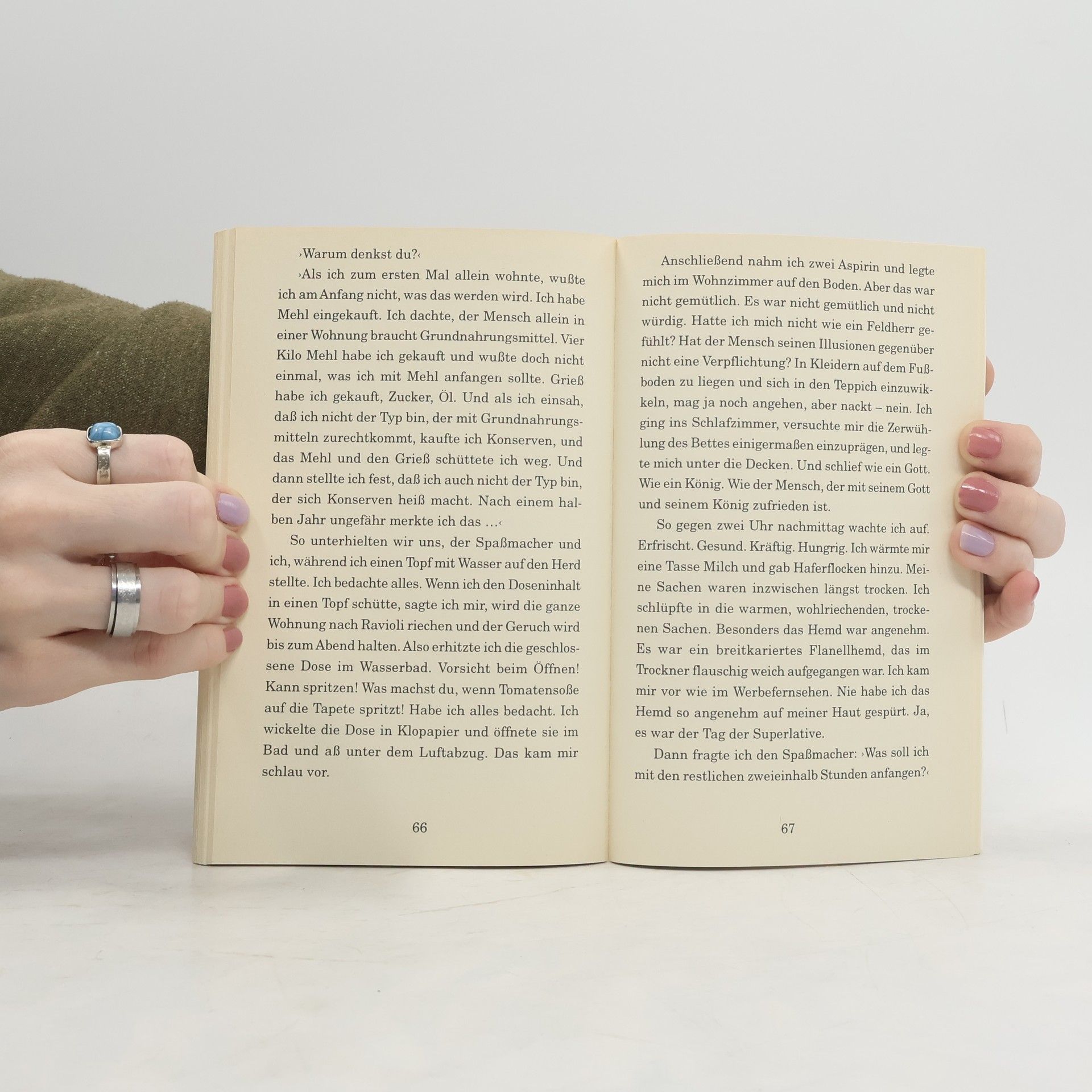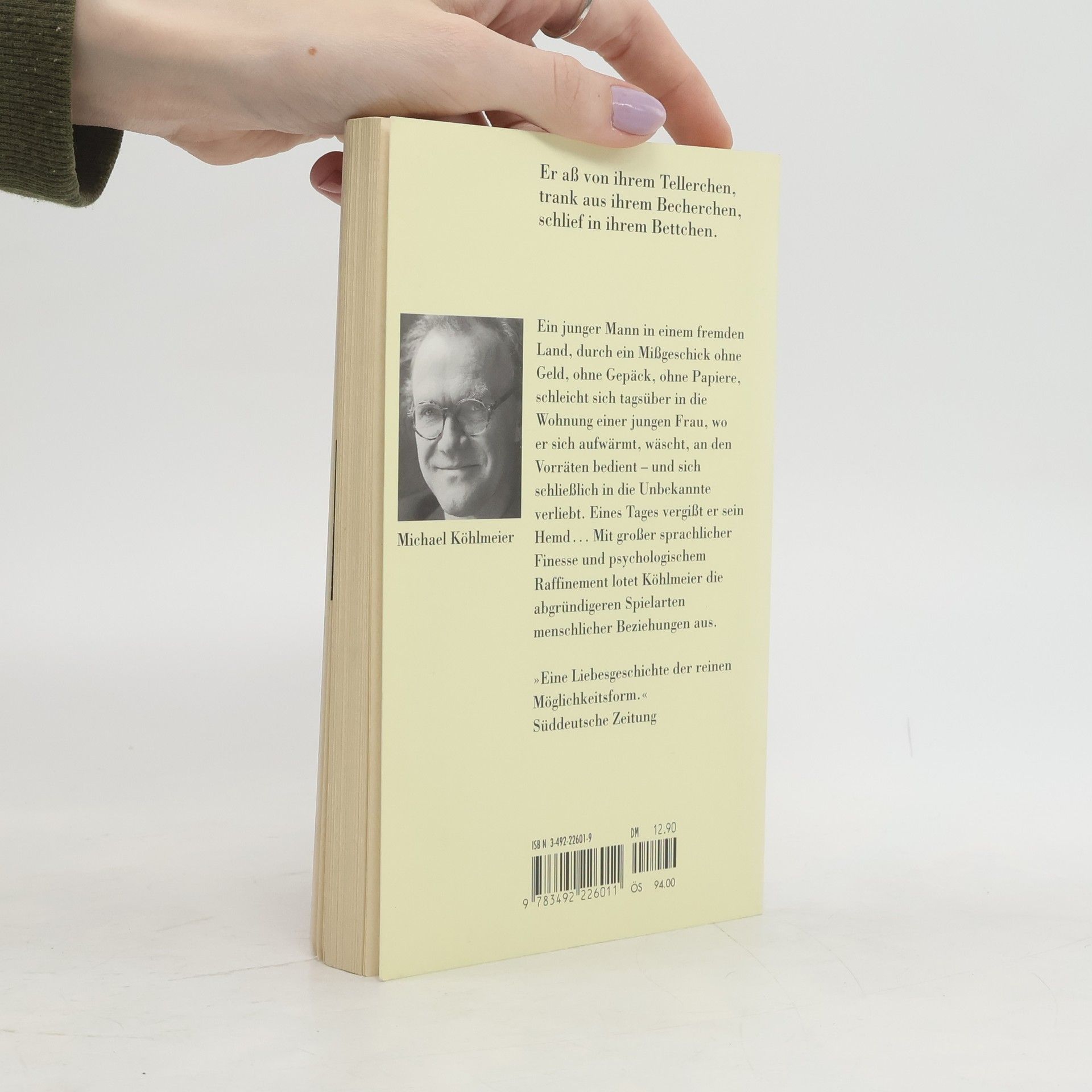 Ein junger Mann ohne Geld, Papiere und Gepäck in einem fremden Land, dessen Sprache er kaum versteht. Durch Zufall gerät er an die Schlüssel einer jungen Frau und schleicht sich dort tagsüber ein. Er wärmt sich dort auf, wäscht sich, bedient sich an ihren Vorräten - und verliebt sich eines Tages in die Unbekannte. In sprachlicher Vollkommenheit ergründet Michael Köhlmeier die Abgründe der menschlichen Seele.