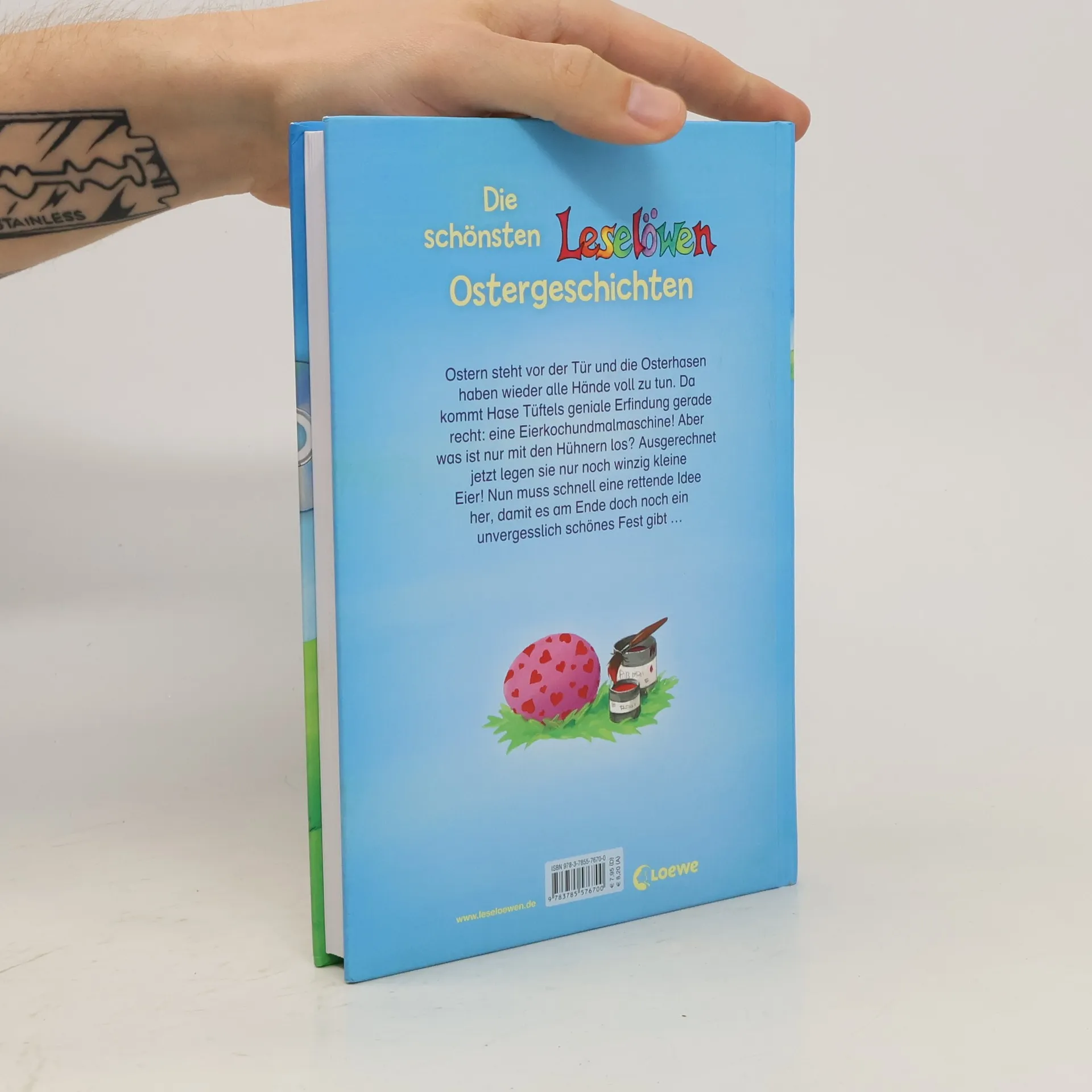 Sammlung mit 18 bereits früher erschienenen Leselöwen-Geschichten rund ums Thema "Ostern", geschrieben von Christina Koenig, Ursel Scheffler und Norbert Landa. Reihenüblich grosse Fibelschrift und viele bunte Illustrationen. Die Geschichten wenden sich an schon etwas geübtere Leseanfänger. Ab 7