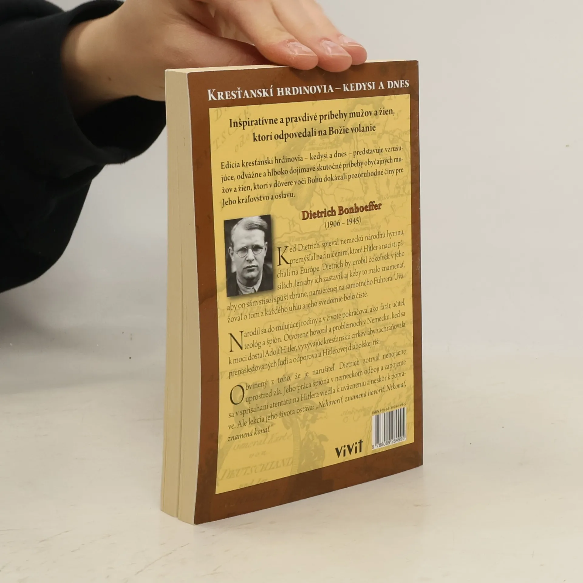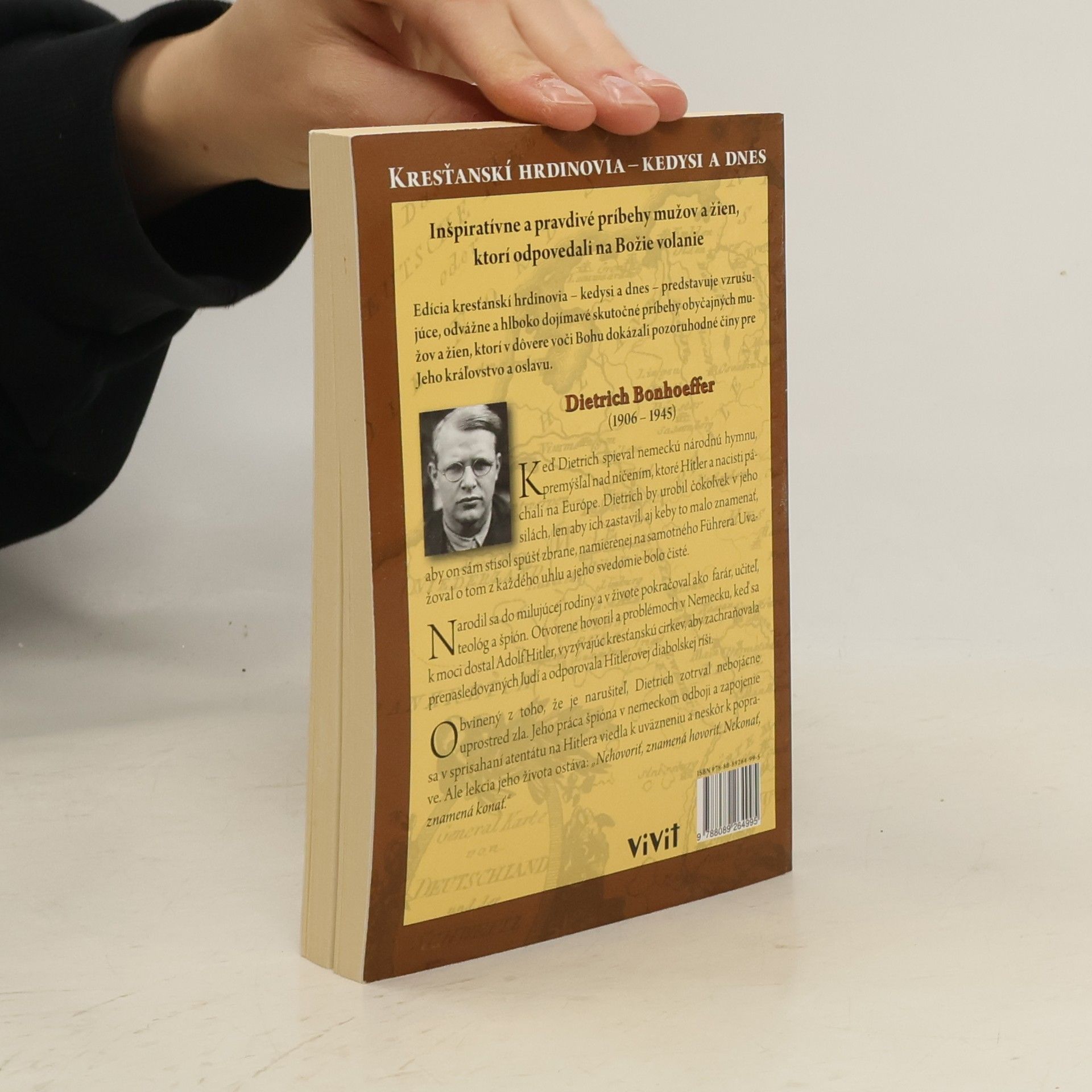 Narodil sa do milujúcej rodiny a v živote pokračoval ako farár, učiteľ, teológ a špión. Otvorene hovoril o problémoch v Nemecku, keď sa k moci dostal Adolf Hitler, vyzývajúc kresťanskú cirkev, aby zachraňovala prenasledovaných ľudí a odporovala Hitlerovej diabolskej ríši. Obvinený z toho, že je narušiteľ, Dietrich zotrval nebojácne uprostred zla. Jeho práca špióna v nemeckom odboji a zapojenie sa v sprisahaní atentátu na Hitlera viedla k uväzneniu a neskôr k poprave. Ale lekcia jeho života ostáva: " Nehovoriť, znamená hovoriť. Nekonať, znamená konať."