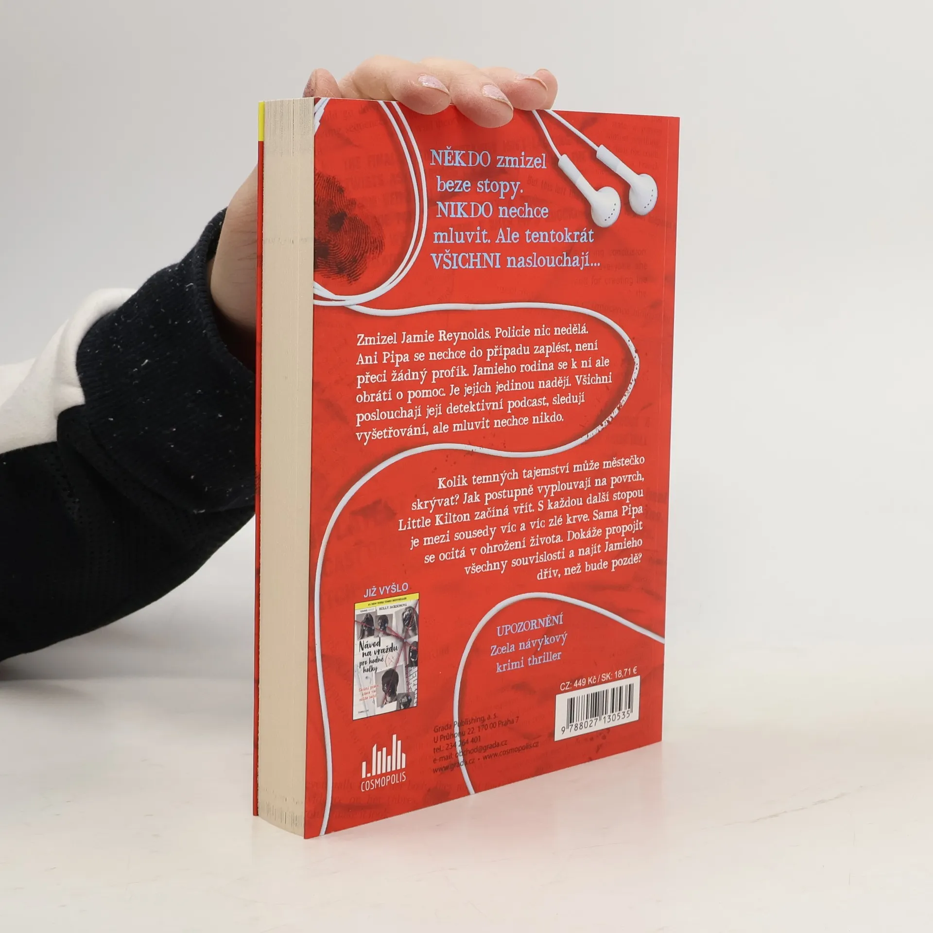 NĚKDO zmizel beze stopy. NIKDO nechce mluvit. Ale tentokrát VŠICHNI naslouchají. Zmizel Jamie Reynolds. Policie nic nedělá. Ani Pipa se nechce do případu zaplést, není přeci žádný profík. Jamieho rodina se k ní ale obrátí o pomoc. Je jejich jedinou nadějí. Všichni poslouchají její detektivní podcast, sledují vyšetřování, ale mluvit nechce nikdo. Kolik temných tajemství může městečko skrývat? Jak postupně vyplouvají na povrch, Little Kilton začíná vřít. S každou další stopou je mezi sousedy víc a víc zlé krve. Sama Pipa se ocitá v ohrožení života. Dokáže propojit všechny souvislosti a najít Jamieho dřív, než bude pozdě?