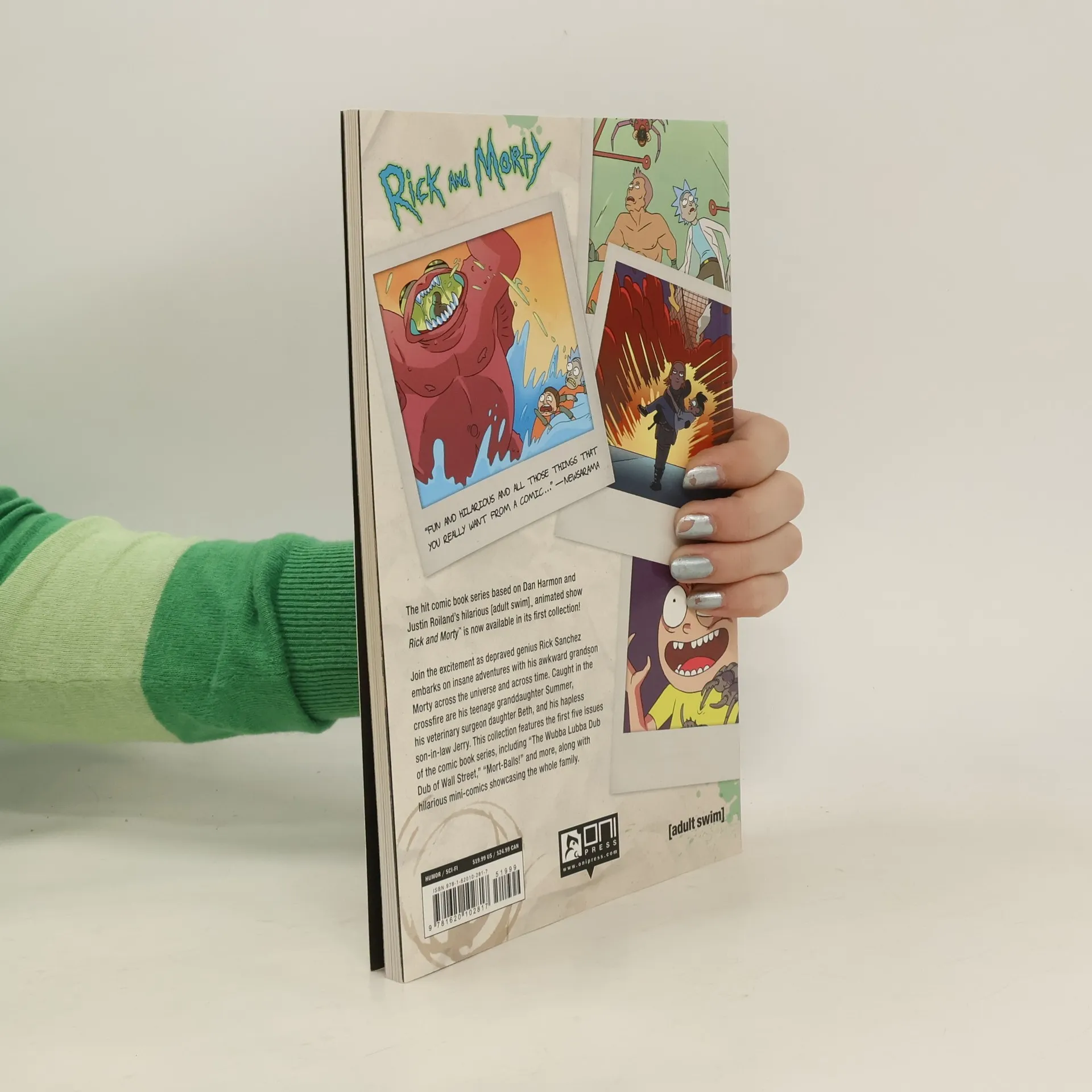 The hit comic book series based on Dan Harmon and Justin Roiland's hilarious [adult swim] animated show RICK & MORTY is now available in its first collection! Join the excitement as depraved genius Rick Sanchez embarks on insane adventures with his awkward grandson Morty across the universe and across time. Caught in the crossfire are his teenage granddaughter Summer, his veterinary surgeon daughter Beth, and his hapless son-in-law Jerry. This collection features the first five issues of the comic book series, including "THE WUBBA LUBBA DUB DUB of WALL STREET," "MORT-BALLS!" and more, along with hilarious mini-comics showcasing the whole family.
