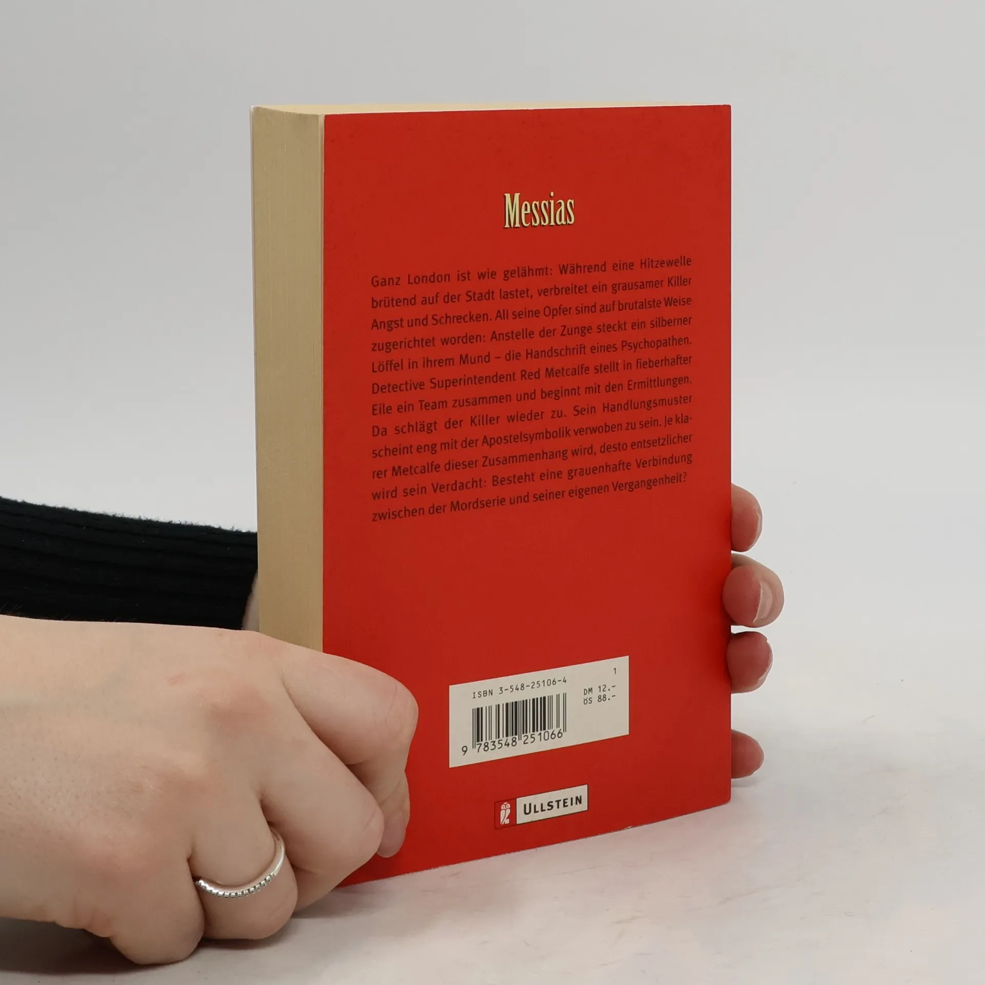 Ganz London ist wie gelähmt: Während eine Hitzewelle brütend auf der Stadt lastet, verbreitet ein psychopathischer Killer Angst und Schrecken. All seine Opfer sind grauenvoll zugerichtet. Detective Red Metcalfe beginnt in fieberhafter Eile die Ermittlungen. Doch bald schlägt der Killer wieder zu. Sein Handlungsmuster scheint eng mit der Apostelsymbolik verwoben zu sein.