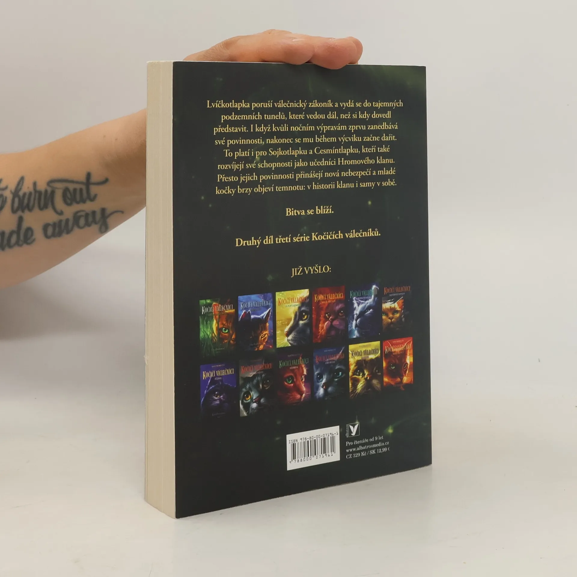 BITVA SE BLÍŽÍ. DRUHÝ DÍL TŘETÍ SÉRIE KOČIČÍCH VÁLEČNÍKŮ. Lvíčkotlapka poruší válečnický zákoník a vydá se do tajemných podzemních tunelů, které vedou dál, než si kdy dovedl představit. Přestože kvůli nočním výpravám zprvu zanedbává své povinnosti, nakonec se mu během výcviku začne dařit. To platí i pro Sojkotlapku a Cesmíntlapku, kteří také rozvíjejí své schopnosti jako učedníci Hromového klanu. Přesto jejich povinnosti přinášejí nová nebezpečí a mladé kočky brzy objeví temnotu: v historii klanu i samy v sobě.