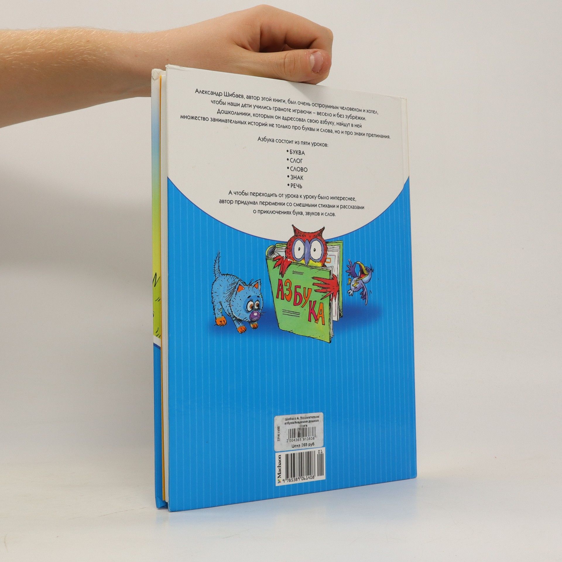 По этой весёлой и озорной азбуке учили буквы и читали первые слова мамы и папы сегодняшних малышей. От буквы - к слогу, от слога - к слову, от слов - к знакам препинания. Так постепенно, шаг за шагом, наши дети осваивают родную речь. Александр Шибаев, автор этой книги, был очень остроумным человеком и хотел, чтобы наши дети учились грамоте играючи - весело и без зубрёжки. Дошкольники, которым он адресовал свою азбуку, найдут в ней множество занимательных историй не только про буквы и слова, но и про знаки препинания. Азбука состоит из пяти уроков. А чтобы переходить от урока к уроку было интереснее, автор придумал переменки со смешными стихами и рассказами о приключениях букв, звуков и слов.