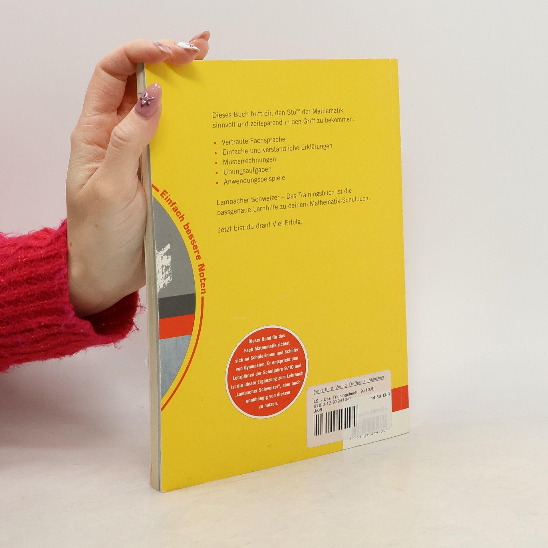 Dieses "Trainingsbuch" folgt im Inhalt dem Schulbuch "Lambacher-Schweizer Kompakt 9/10" aus dem Jahr 2000 (ekz-Nr. 563.233.3, hier nicht angezeigt). Es bietet reichhaltiges Übungsmaterial zum gesamten Stoff der Klassen 9 und 10 an Gymnasien. Den Aufgaben vorausgestellt sind ergiebige und gut verständliche Erklärungen der Sachverhalte mit Beispielen und Verständnisfragen ("Zwischen-Tests"). Grundregeln, Formeln und Merksätze sind farbig hervorgehoben. Für die Nutzung dieser Lernhilfe kann man also auf das nur 64-seitige Schulbuch getrost verzichten. Ausgezeichnete Lösungen (rechnerisch und zeichnerisch) zu sämtlichen Tests und Übungen im 2. Teil. Gerne zusätzlich empfohlen zu einschlägigen Titeln, z.B. von R. Baumann (BA 5/03, 7/03) oder E. Dahlke (BA 9/03). (1 S)