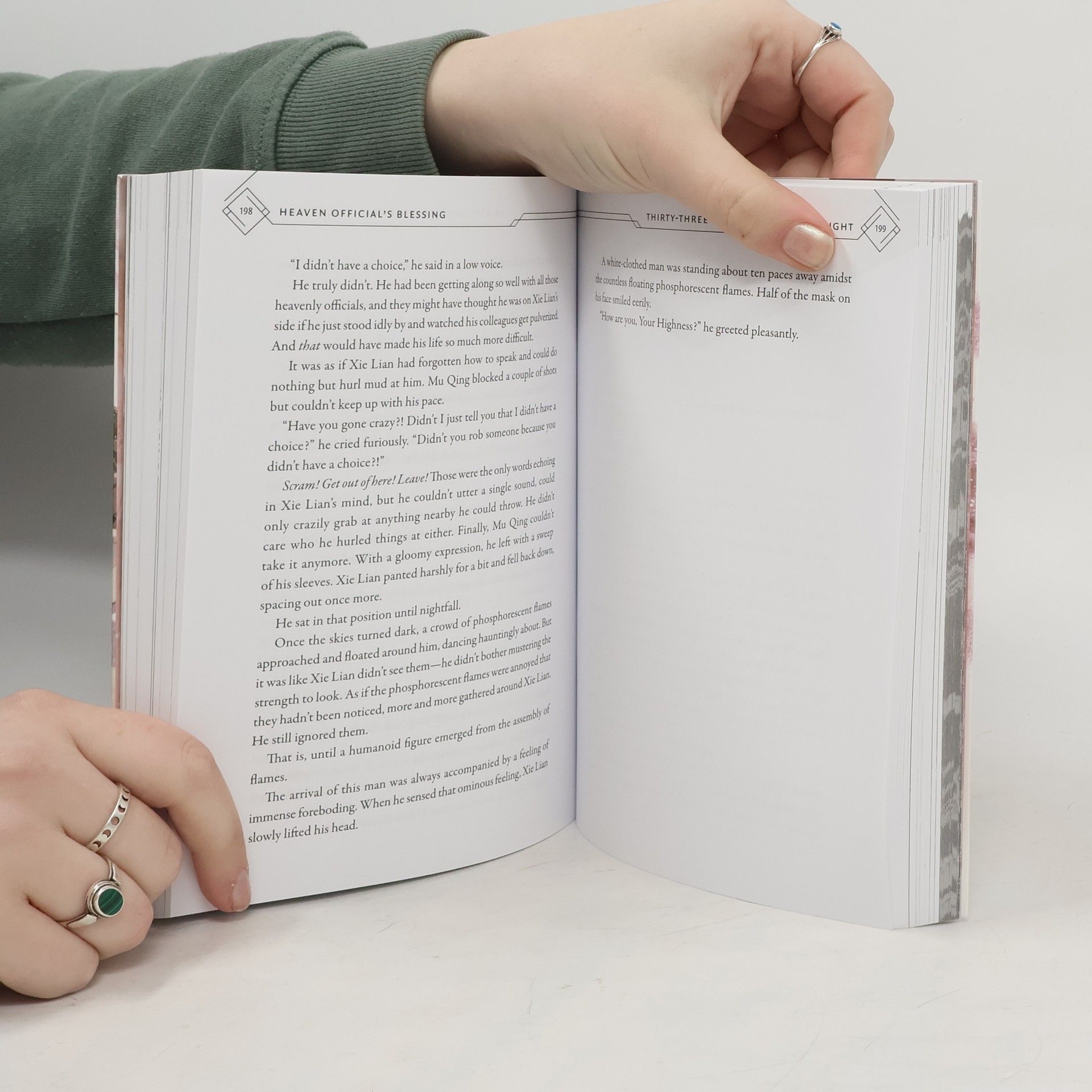 White No-Face, Xie Lian’s greatest fear and most hated enemy, has arrived…or so it seems. While the ghost with the half-crying, half-smiling mask is somewhere nearby, the creature is elusive as always, taunting Xie Lian from just out of reach and promising the total destruction of everything he holds dear.As Xie Lian confronts the trauma of his last encounter with the terrifying ghost, Hua Cheng will do anything in his power to protect him. But White No-Face’s identity and purpose are not the only mysteries to unravel, as Hua Cheng also has a history in the labyrinthine tunnels beneath Mount Tonglu. Will Xie Lian finally discover the full connection they share—and learn the true depths of Hua Cheng’s devotion?