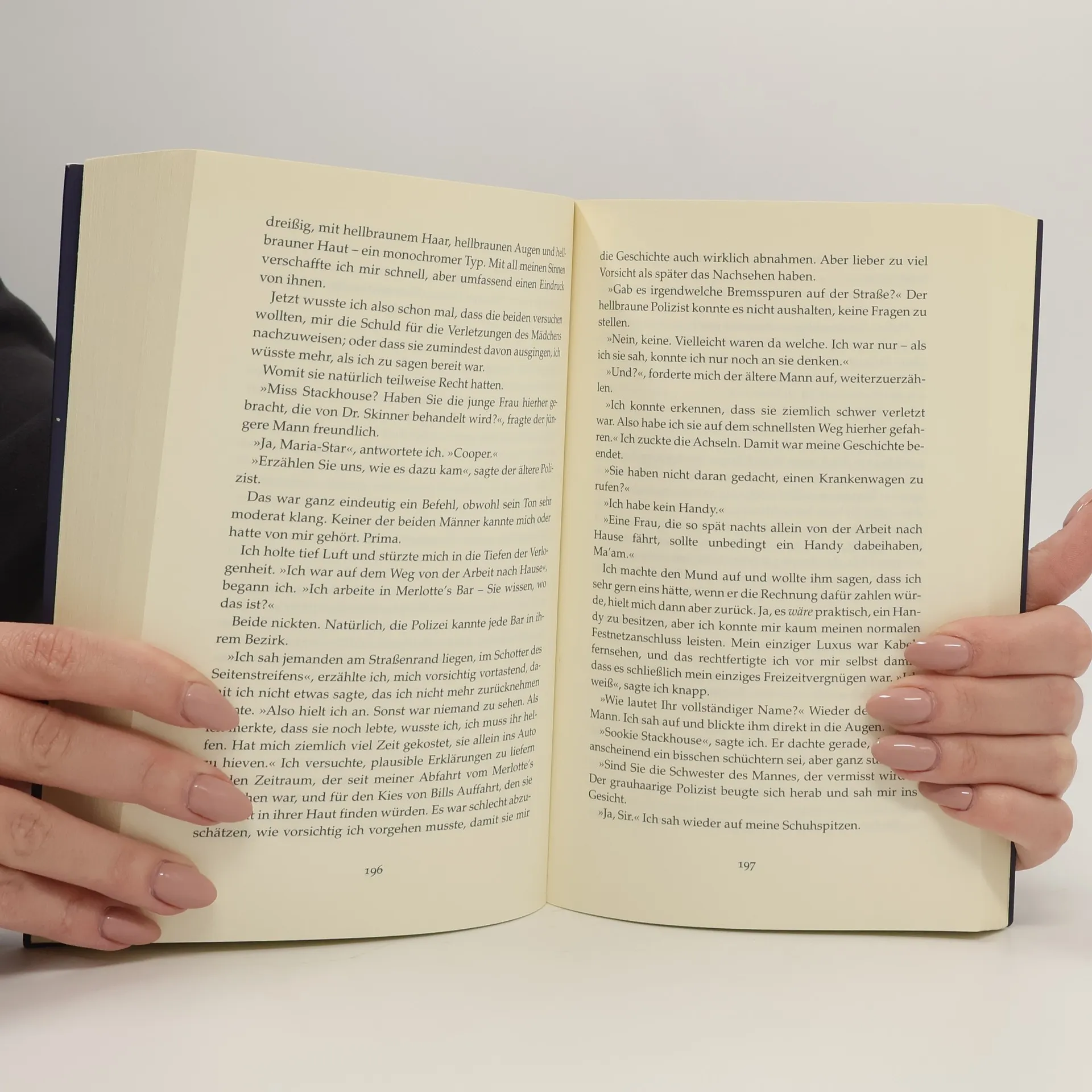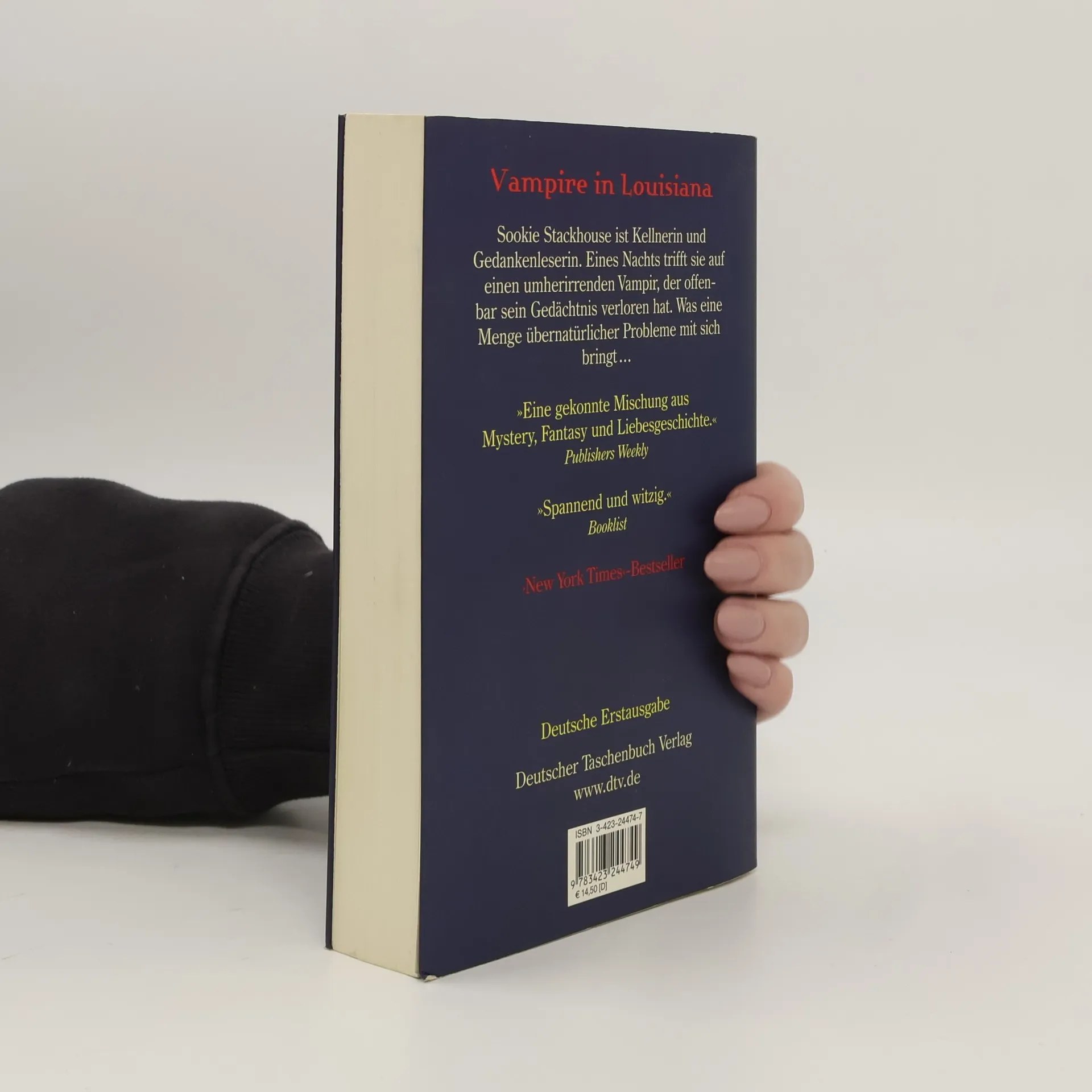 Sookie Stackhouse ist Kellnerin in einer Bar in Louisiana. Sie ist hübsch, jung, ihr Job macht ihr Spaß. Eines Nachts trifft sie auf dem Nachhauseweg auf einen umherirrenden Vampir. Er hat kaum einen Faden am Leib und außerdem sein Gedächtnis verloren. Zum Glück kennt ihn Sookie: Es ist Eric, der Boss ihres Ex-Freunds Bill. An sich ist er ein draufgängerischer, aggressiver Typ, doch mit dem Gedächtnis ist ihm anscheinend ein Teil seiner Persönlichkeit verlorengegangen: auf einmal ist er freundlich, zuvorkommend und schutzbedürftig. Aber er hat ein gewaltiges Problem: Ein Hexenzirkel ist in die kleine Stadt eingefallen und verlangt Schutzgeld von Eric, der ein erfolgreicher Vampir-Bar-Unternehmer ist. Er weigert sich zu zahlen, mit desaströsen Folgen. Sookie nimmt ihn bei sich auf, mit dem Erfolg, daß eine gefährliche Situation die andere jagt. Und da Eric ein sehr attraktiver Vampir ist, kommen die beiden sich bald ziemlich nah.