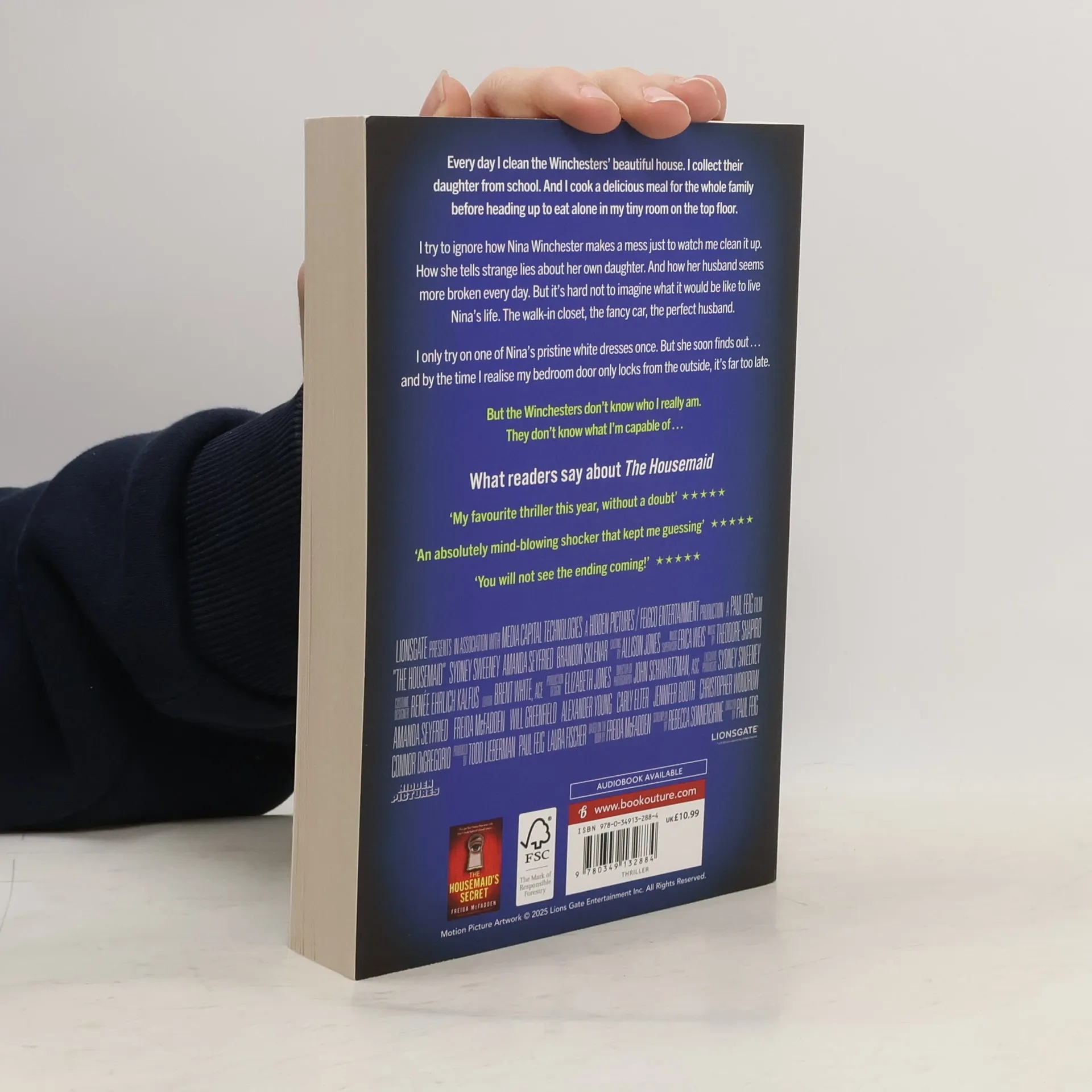 Every day I clean the Winchesters’ beautiful house top to bottom. I collect their daughter from school. And I cook a delicious meal for the whole family before heading up to eat alone in my tiny room on the top floor. I try to ignore how Nina makes a mess just to watch me clean it up. How she tells strange lies about her own daughter. And how her husband Andrew seems more broken every day. But as I look into Andrew’s handsome brown eyes, so full of pain, it’s hard not to imagine what it would be like to live Nina’s life. The walk-in closet, the fancy car, the perfect husband. I only try on one of Nina’s pristine white dresses once. Just to see what it’s like. But she soon finds out… and by the time I realize my attic bedroom door only locks from the outside, it’s far too late. But I reassure myself: the Winchesters don’t know who I really am. They don’t know what I’m capable of…