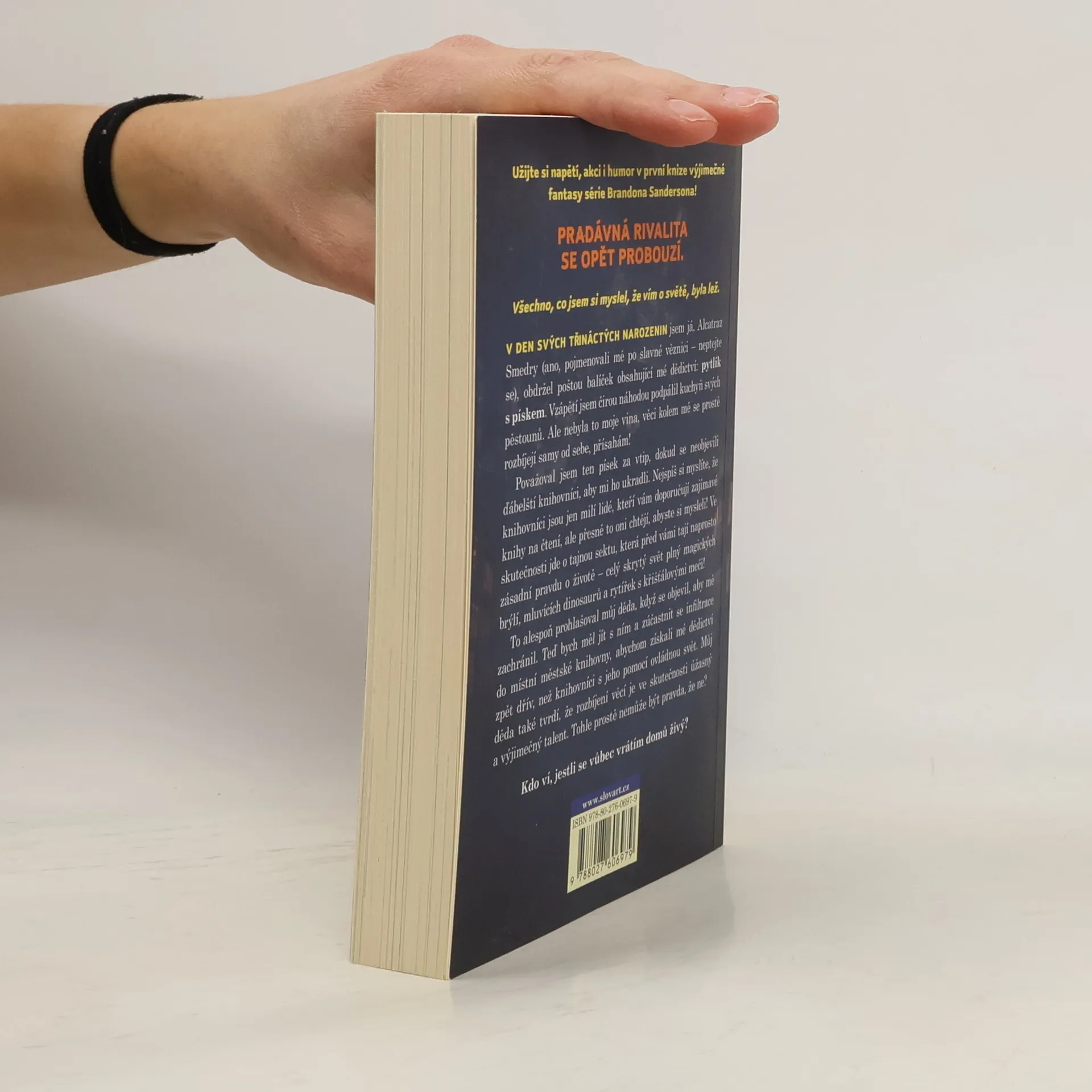 PRADÁVNÁ RIVALITA SE OPĚT PROBOUZÍ.Všechno, co jsem si myslel, že vím o světě, byla lež.V DEN MÝCH TŘINÁCTÝCH NAROZENIN jsem já, Alcatraz Smedry (ano, pojmenovali mě po slavné věznici - neptejte se), obdržel poštou balíček obsahující mé dědictví: pytlík s pískem. Vzápětí jsem čirou náhodou podpálil kuchyň svých pěstounů. Ale nebyla to moje vina, věci kolem mě se prostě rozbíjejí samy od sebe, přísahám! Považoval jsem ten písek za vtip, dokud se neobjevili ďábelští knihovníci, aby mi ho ukradli. Nejspíš si myslíte, že knihovníci jsou jen milí lidé, kteří vám doporučují zajímavé knihy na čtení, ale přesně to oni chtějí, abyste si mysleli! Ve skutečnosti jde o tajnou sektu, která před vámi tají naprosto zásadní pravdu o životě - celý skrytý svět plný magických brýlí, mluvících dinosaurů a rytířek s křišťálovými meči! To alespoň prohlašoval můj děda, když se objevil, aby mě zachránil. Teď bych měl jít s ním a zúčastnit se infiltrace do místní městské knihovny, abychom získali mé dědictví zpět dřív, než knihovníci s jeho pomocí ovládnou svět. Můj děda také tvrdí, že rozbíjení věcí je ve skutečnosti úžasný a výjimečný talent. Tohle prostě nemůže být pravda, že ne?Kdo ví, jestli se vůbec vrátím domů živý?