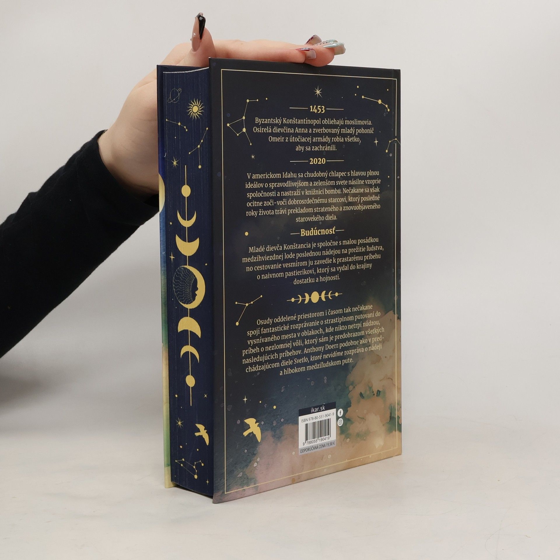 Zoči-voči neodvratnému koncu prežijú iba naše životné príbehy.V Krajine vtákov sa prepletajú osudy čudesnej skupiny rojkov a outsiderov z minulosti, súčasnosti i budúcnosti, ktorí prekonávajú nepriazeň osudu a odovzdávajú svoje príbehy nasledujúcim generáciám.1453Byzantský Konštantínopol obliehajú moslimovia. Osirelá dievčina Anna a zverbovaný mladý pohonič Omar z útočiacej armády robia všetko, aby sa zachránili.2020V americkom Idahu sa chudobný chlapec s hlavou plnou ideálov o spravodlivejšom a zelenšom svete násilne vzoprie spoločnosti a nastraží v knižnici bombu. Nečakane sa však ocitne zoči-voči dobrosrdečnému starcovi, ktorý posledné roky života trávi prekladom strateného a znovuobjaveného starovekého diela.BudúcnosťMladé dievča Konštancia je spoločne s malou posádkou medzihviezdnej lode poslednou nádejou na prežitie ľudstva, no cestovanie vesmírom ju zavedie k prastarému príbehu o naivnom pastierikovi, ktorý sa vydal do krajiny dostatku a hojnosti.Osudy oddelené priestorom i časom tak nečakane spojí fantastické rozprávanie o strastiplnom putovaní do vysnívaného mesta v oblakoch, kde nikto netrpí núdzou, príbeh o nezlomnej vôli, ktorý sám je predobrazom všetkých nasledujúcich príbehov. Anthony Doerr podobne ako v predchádzajúcom diele Svetlo, ktoré nevidíme rozpráva o nádeji a hlbokom medziľudskom pute.