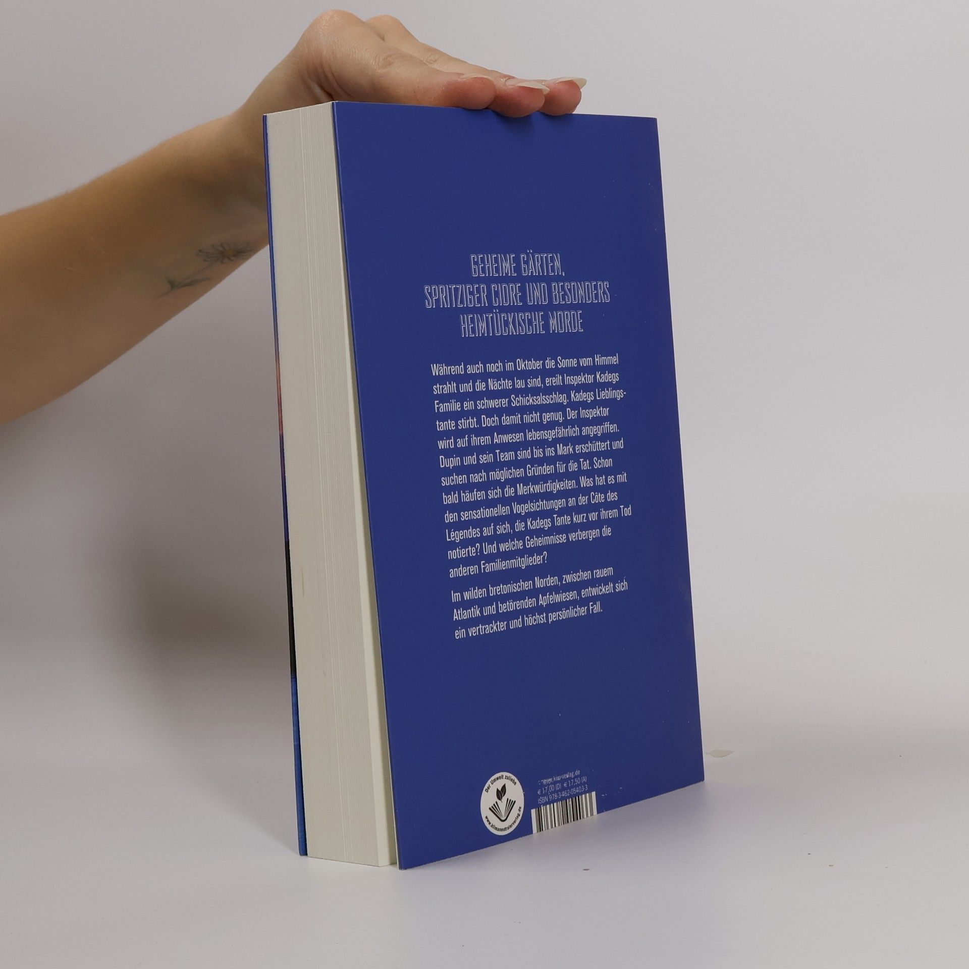 Kommissar Dupins elfter Fall: geheime Gärten, seltene Vogelarten, viel Cidre und grandiose Landschaften.  Während der bretonische Sommer auch im Oktober frohgemut weitermacht, die Sonne vom Himmel strahlt und die Nächte lau sind, ereilt Kadegs Familie ein schwerer Schicksalsschlag. Seine 89-jährige Tante verstirbt, nachdem sie von einer Reihe »Vorzeichen des Todes« heimgesucht wurde. Doch damit nicht genug, Kadeg wird auf ihrem Anwesen lebensgefährlich angegriffen. Kommissar Dupin und sein Team sind bis ins Mark erschüttert und suchen auf dem Gelände der geschichtsträchtigen ehemaligen Abtei, die Kadegs Tante bewohnte, nach möglichen Gründen für die Tat. Bald mehren sich die Merkwürdigkeiten. Was hat es mit den sensationellen Vogelsichtungen an der Côte des Légendes auf sich, die Kadegs Tante kurz vor ihrem Tod notiert hat? Und welche Geheimnisse verbergen die anderen Familienmitglieder? In einer der rausten und atemberaubendsten Gegenden der Bretagne, im hohen Norden, zwischen großen Meeresarmen, wildem Atlantik und betörenden Apfelwiesen entwickelt sich ein vertrackter und höchst persönlicher Fall.