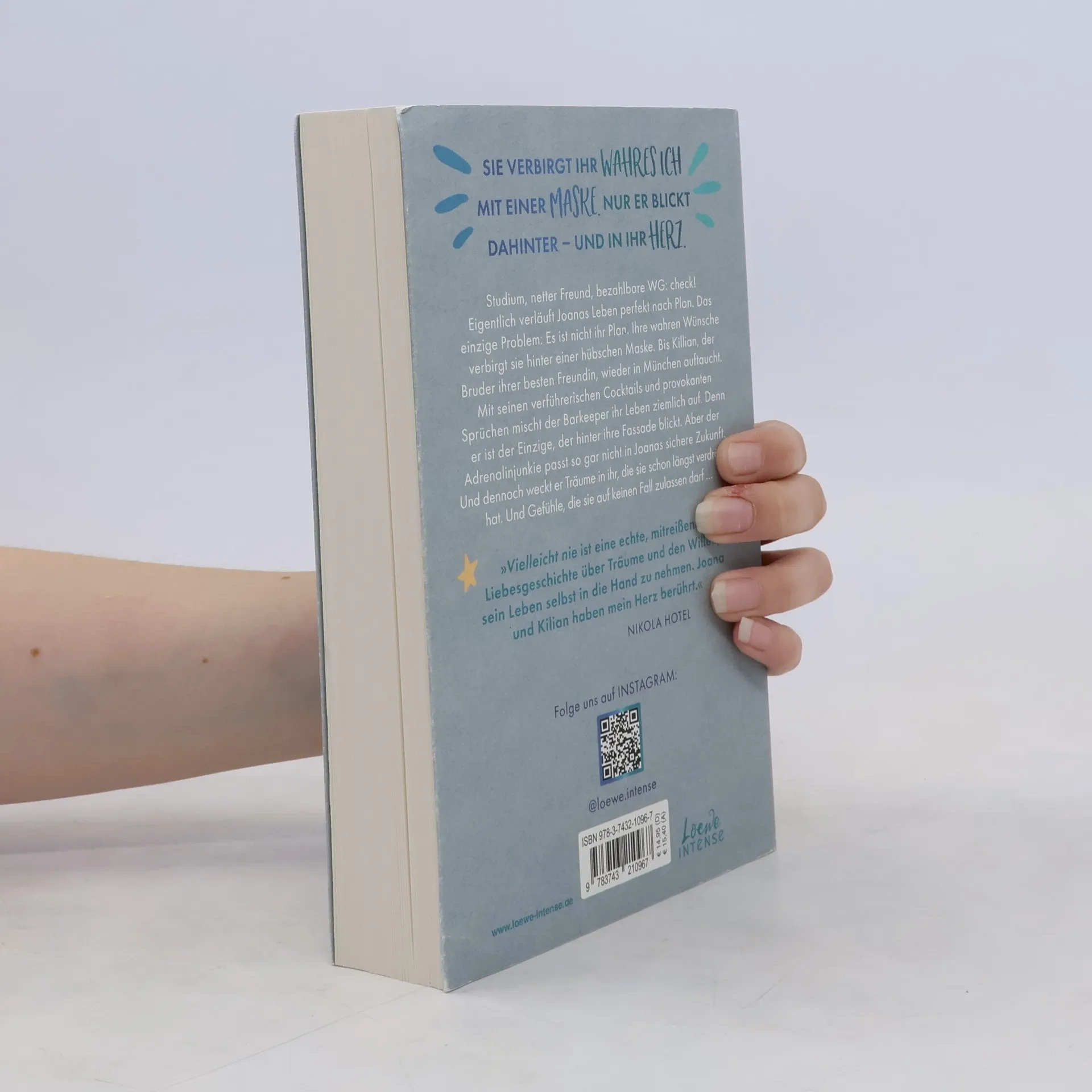 Das Buch ist bei deiner Buchhandlung vor Ort und bei vielen Online-Buchshops erhältlich! Mitreißend, prickelnd, ergreifend! - Die Reihe mit Herzklopfgarantie. Sie verbirgt ihr wahres Ich mit einer Maske. Nur er blickt dahinter – und in ihr Herz. Studium, netter Freund, bezahlbare WG: check! Eigentlich verläuft Joanas Leben perfekt nach Plan, das einzige Problem: Es ist nicht ihr Plan. Ihre wahren Wünsche verbirgt sie hinter einer hübschen Maske. Bis Killian, der Bruder ihrer besten Freundin, wieder in München auftaucht. Mit seinen verführerischen Cocktails und provokanten Sprüchen mischt der Barkeeper ihr Leben ziemlich auf. Denn er ist der Einzige, der hinter ihre Fassade blickt. Doch der Adrenalinjunkie passt so gar nicht in Joanas sichere Zukunft. Aber Kilian weckt Träume in ihr, die sie schon längst verdrängt hat. Und Gefühle, die sie auf keinen Fall zulassen darf … »Vielleicht nie ist eine echte, mitreißende Liebesgeschichte über Träume und den Willen, sein Leben selbst in die Hand zu nehmen. Joana und Kilian haben mein Herz berührt.« Nikola Hotel Im zweiten Band ihrer New Adult-Reihe zeigt Carolin Wahl , wie wichtig es ist, für sich selbst und seine eigenen Träume einzustehen. Eine humorvolle Liebesgeschichte, die auch ernste Themen wie Verlust und Zukunftsangst aufgreift. Mitreißend, prickelnd, ergreifend!