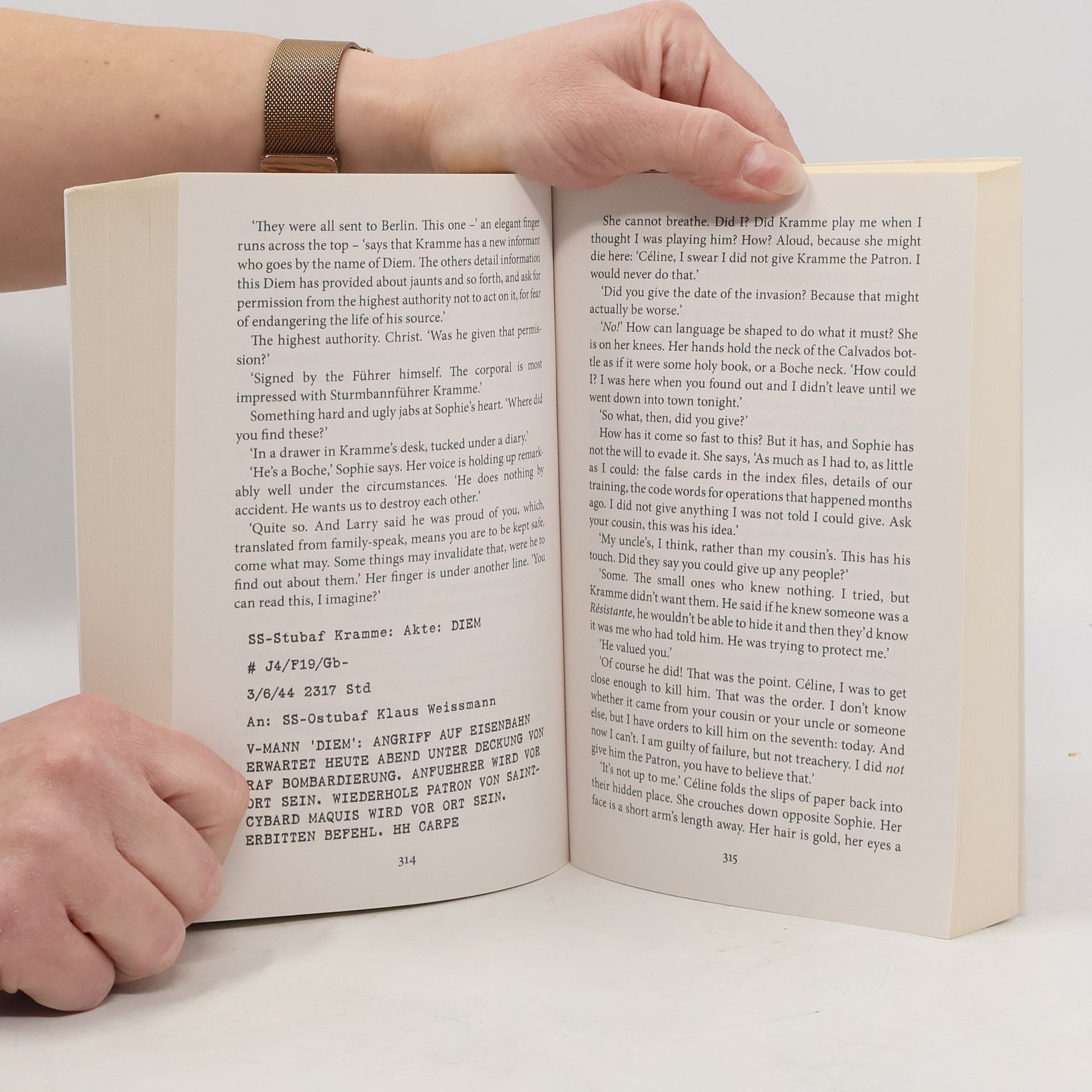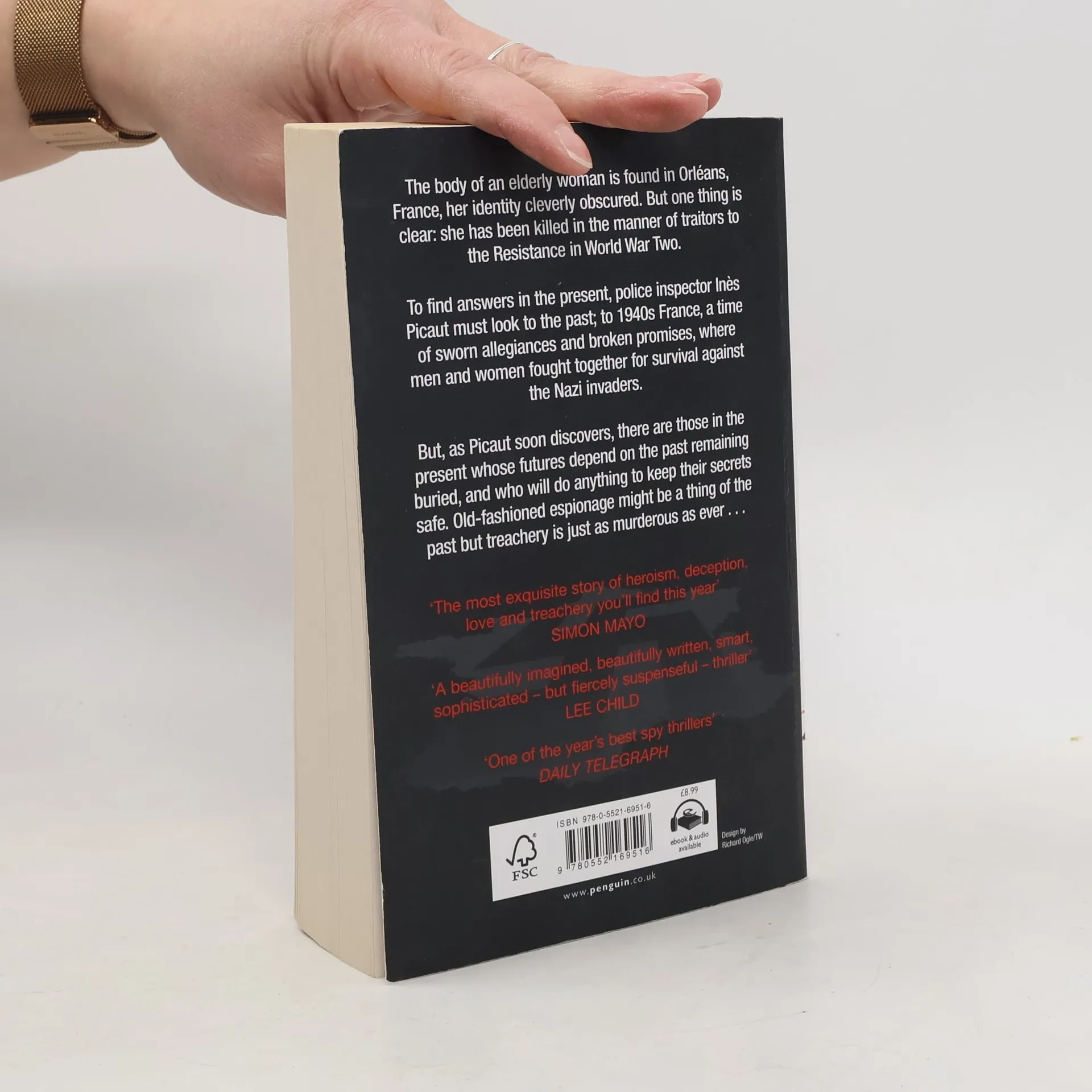 "The body of an elderly woman is found in Orléans, France, her identiy cleverly obscured. But one thing is clear: she has been killed in the manner of traitors to the Resistance in World War Two. To find answers in the present, police inspector Inès Picaut must look to the past; to 1940s France, a time of sworn allegiances and broken promises, where men and women fought together for survival against the Nazi invaders. But, as Picaut soon discovers, there are those in the present whose futures depend on the past remaining buried, and who will do anything to keep their secrets safe. Old-fashioned espionage might be a thing of the past but treachery is just as murderous as ever ..." Klappentext.