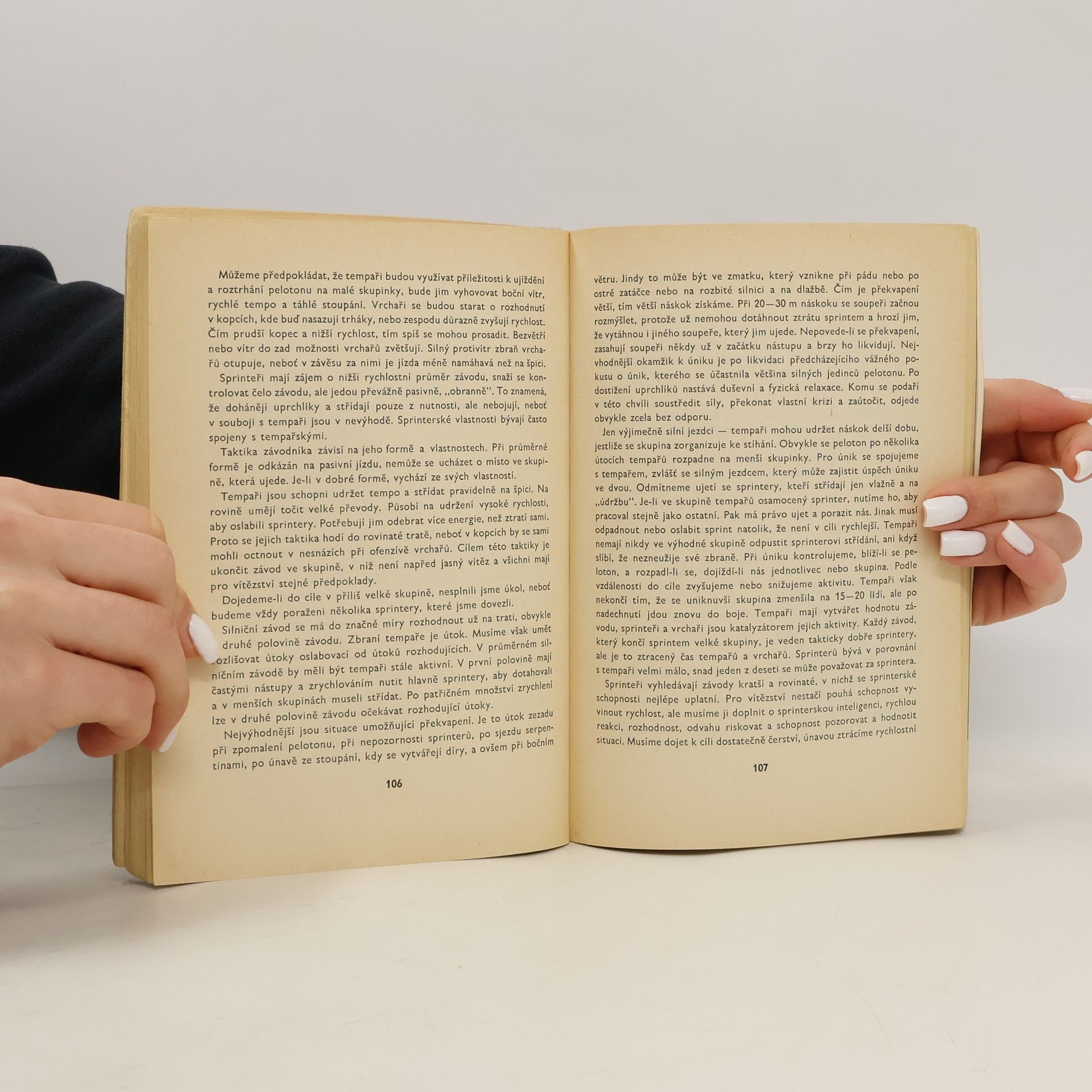 Učebnice využívá nejen zkušeností našich a zahraničních závodníků, ale opírá se také o výsledky teoretických prací a vědeckého výzkumu. Po charakteristice závodní cyklistiky probírá jednotlivé složky základního tréninku apopisuje technickou, tělesnou, taktickou a psychologickou přípravu při speciálním tréninku. Uvádí také galerii významných cyklistických osobností a přehledné tabulky výsledků.