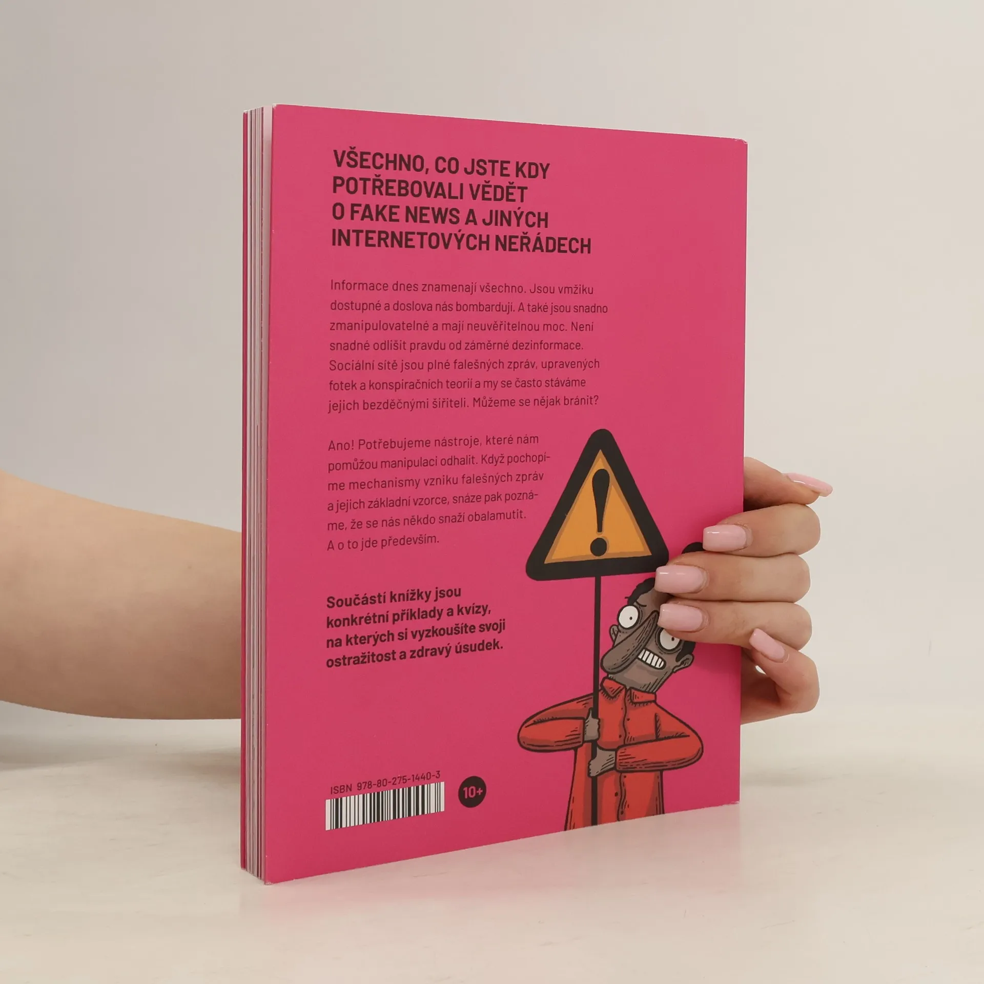Všechno, co jste kdy potřebovali vědět o fake news a jiných internetových neřádech. Žijeme v éře, kdy informace znamenají všechno. Jsou vmžiku dostupné a doslova nás bombardují. A také jsou snadno zmanipulovatelné a mají neuvěřitelnou moc. Není snadné odlišit pravdu od záměrné dezinformace. Sociální sítě jsou plné falešných zpráv, upravených fotek a konspiračních teorií a my se často stáváme jejich bezděčnými šiřiteli. Bubáky dnešní doby jsou boti a trollové, akorát že na tyhle trolly zvonečkem a slunečními paprsky nevyzrajete. Můžete se jim tedy nějak bránit? Ano! Potřebujete nástroje, které vám pomůžou manipulaci odhalit. Je třeba znát mechanismy vzniku falešných zpráv a jejich základní vzorce, abyste poznali, když se vás někdo snaží obalamutit. Tahle knížka vám pomůže nahlédnout pod pokličku manipulací a vybaví vás potřebnými zbraněmi v boji proti nim. A až tuhle knížku přečtou vaše děti, tak si ji od nich půjčte taky. Bránit se dezinformacím totiž musíme všichni do jednoho.