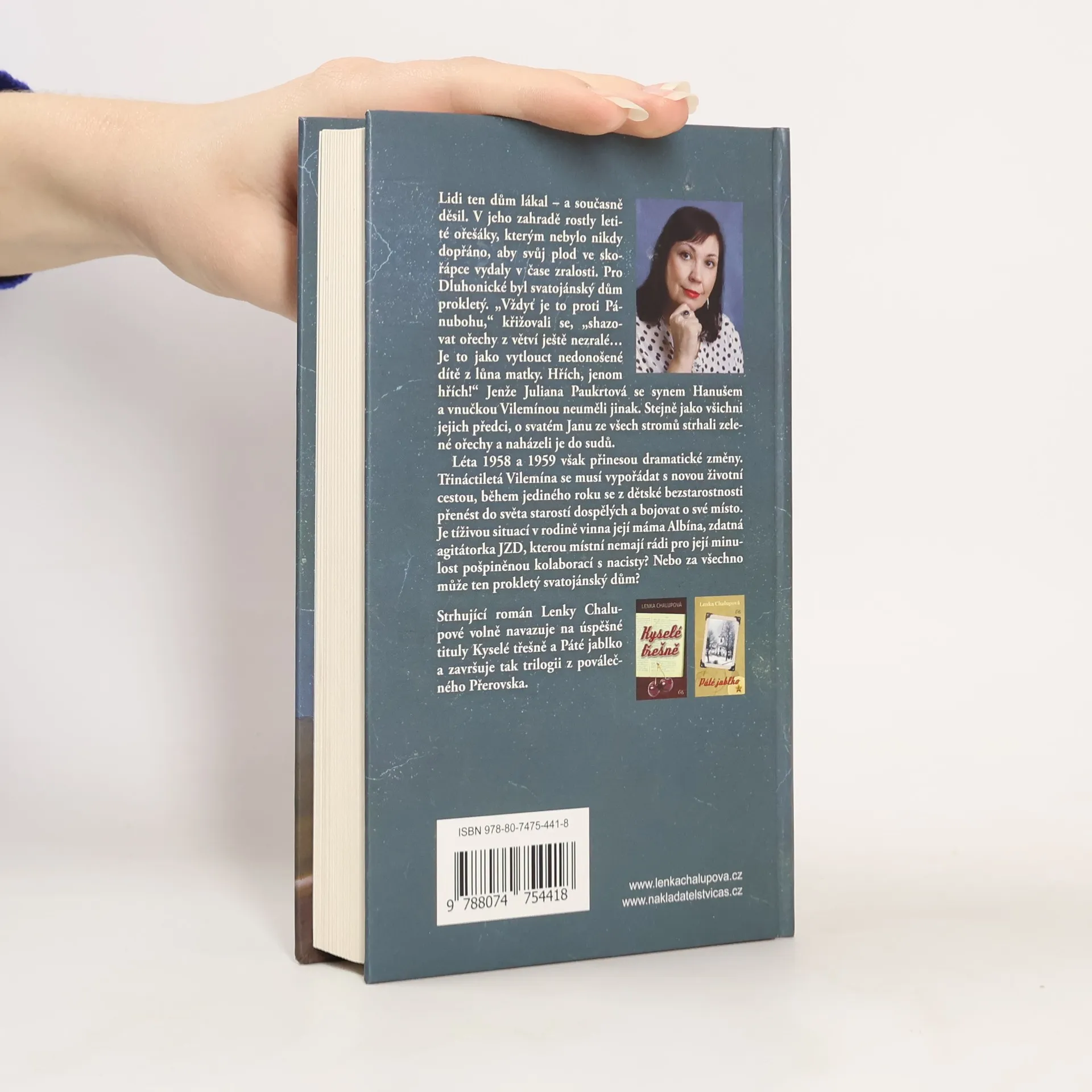Lidi ten dům lákal – a současně děsil. V jeho zahradě rostly letité ořešáky, kterým nebylo nikdy dopřáno, aby svůj plod ve skořápce vydaly v čase zralosti. Pro Dluhonické byl svatojánský dům prokletý. „Vždyť je to proti Pánubohu,“ křižovali se, „shazovat ořechy z větví ještě nezralé… Je to jako vytlouct nedonošené dítě z lůna matky. Hřích, jenom hřích!“ Jenže Juliana Paukrtová se synem Hanušem a vnučkou Vilemínou neuměli jinak. Stejně jako všichni jejich předci, o svatém Janu ze všech stromů strhali zelené ořechy a naházeli je do sudů. Léta 1958 a 1959 však přinesou dramatické změny. Třináctiletá Vilemína se musí vypořádat s novou životní cestou, během jediného roku se z dětské bezstarostnosti přenést do světa starostí dospělých a bojovat o své místo. Je tíživou situací v rodině vinna její máma Albína, zdatná agitátorka JZD, kterou místní nemají rádi pro její minulost pošpiněnou kolaborací s nacisty? Nebo za všechno může ten prokletý svatojánský dům? Strhující román Lenky Chalupové volně navazuje na úspěšné tituly Kyselé třešně a Páté jablko a završuje tak trilogii z poválečného Přerovska.