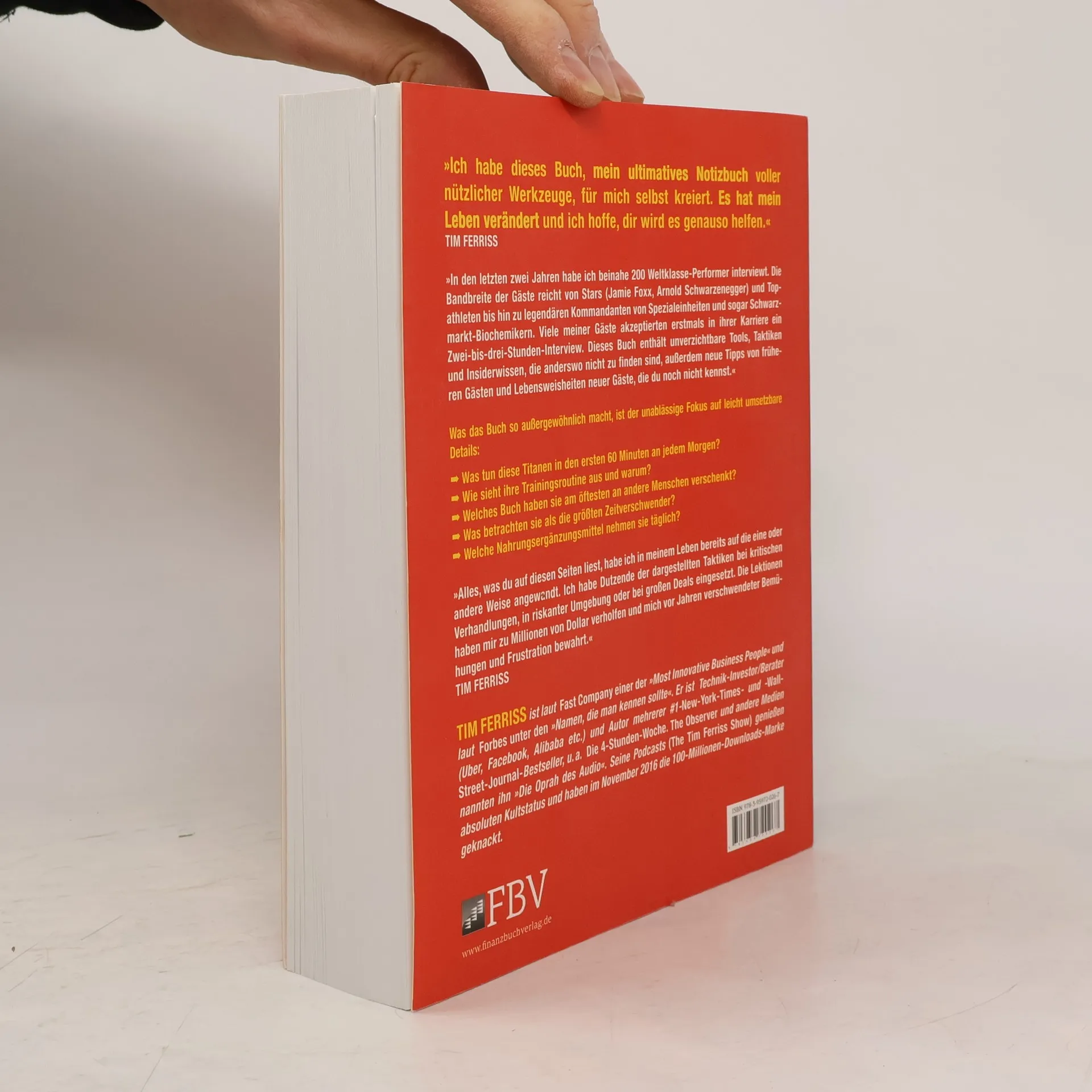 »Ich habe dieses Buch, mein ultimatives Notizbuch voller nützlicher Werkzeuge, für mich selbst kreiert. Es hat mein Leben verändert und ich hoffe, dir wird es genauso helfen.« TIM FERRISS. In den letzten zwei Jahren habe ich fast 200 Weltklasse-Performer interviewt, darunter Stars wie Jamie Foxx und Arnold Schwarzenegger, Topathleten sowie legendäre Kommandanten von Spezialeinheiten und Schwarzmarkt-Biochemiker. Viele meiner Gäste gaben zum ersten Mal in ihrer Karriere ein Zwei-bis-drei-Stunden-Interview. Dieses Buch enthält unverzichtbare Tools, Taktiken und Insiderwissen, die anderswo nicht zu finden sind, sowie neue Tipps und Lebensweisheiten von Gästen, die du noch nicht kennst. Was das Buch außergewöhnlich macht, ist der Fokus auf leicht umsetzbare Details: - Was tun diese Titanen in den ersten 60 Minuten ihres Morgens? - Wie sieht ihre Trainingsroutine aus? - Welches Buch haben sie am häufigsten verschenkt? - Was sind die größten Zeitverschwender? - Welche Nahrungsergänzungsmittel nehmen sie täglich? »Alles, was du auf diesen Seiten liest, habe ich in meinem Leben bereits angewandt. Die dargestellten Taktiken haben mir zu Millionen von Dollar verholfen und mich vor Frustration bewahrt.« TIM FERRISS.