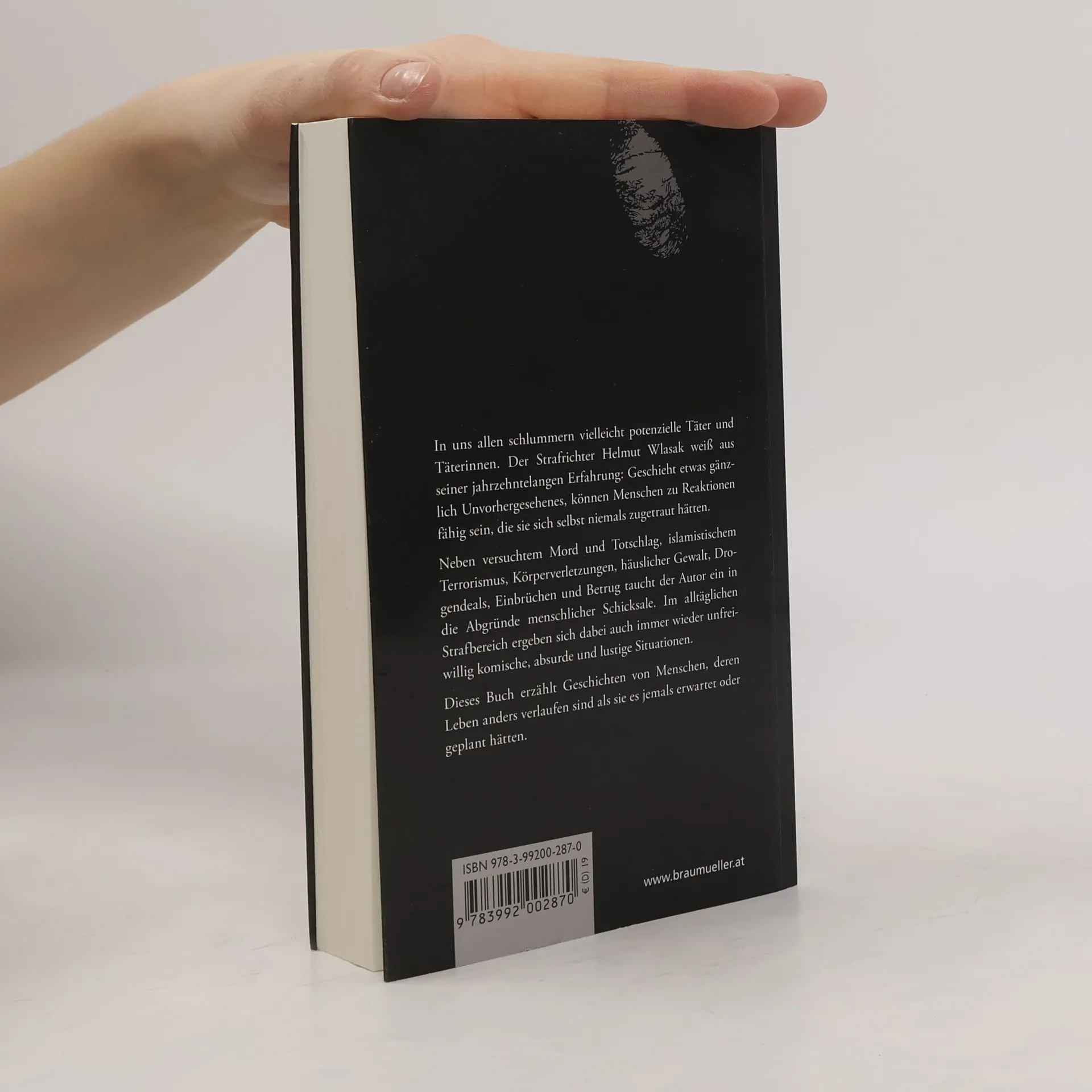 In uns allen schlummern vielleicht potenzielle Täter und Täterinnen. Der Strafrichter Helmut Wlasak weiß aus seiner jahrzehntelangen Erfahrung: Geschieht etwas gänzlich Unvorhergesehenes, können Menschen zu Reaktionen fähig sein, die sie sich selbst niemals zugetraut hätten. Neben versuchtem Mord und Totschlag, islamistischem Terrorismus, Körperverletzungen, häuslicher Gewalt, Drogendeals, Einbrüchen und Betrug taucht der Autor ein in die Abgründe menschlicher Schicksale. Im alltäglichen Strafbereich ergeben sich dabei auch immer wieder unfreiwillig komische, absurde und lustige Situationen. Dieses Buch erzählt Geschichten von Menschen, deren Leben anders verlaufen sind als sie es jemals erwartet oder geplant hätten.