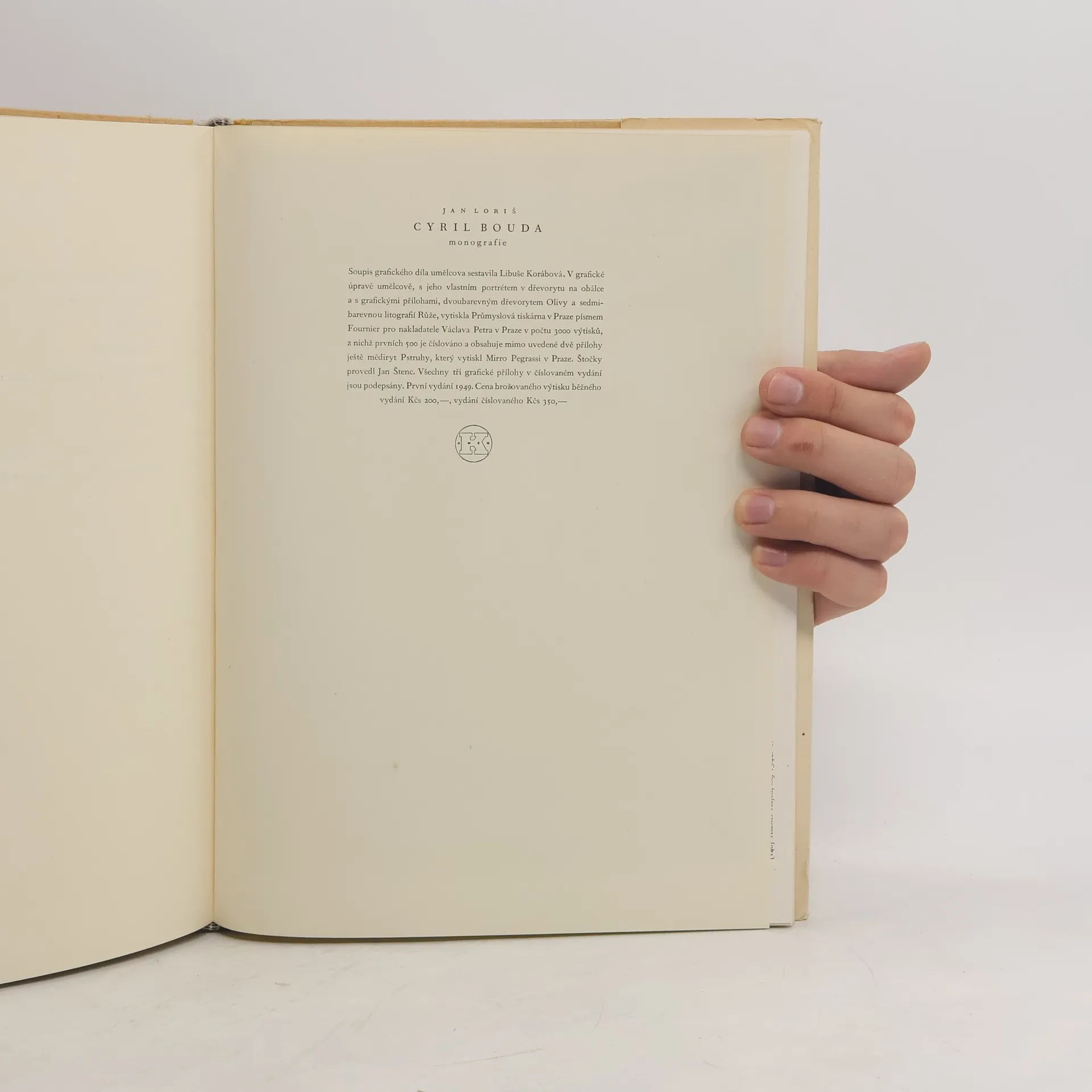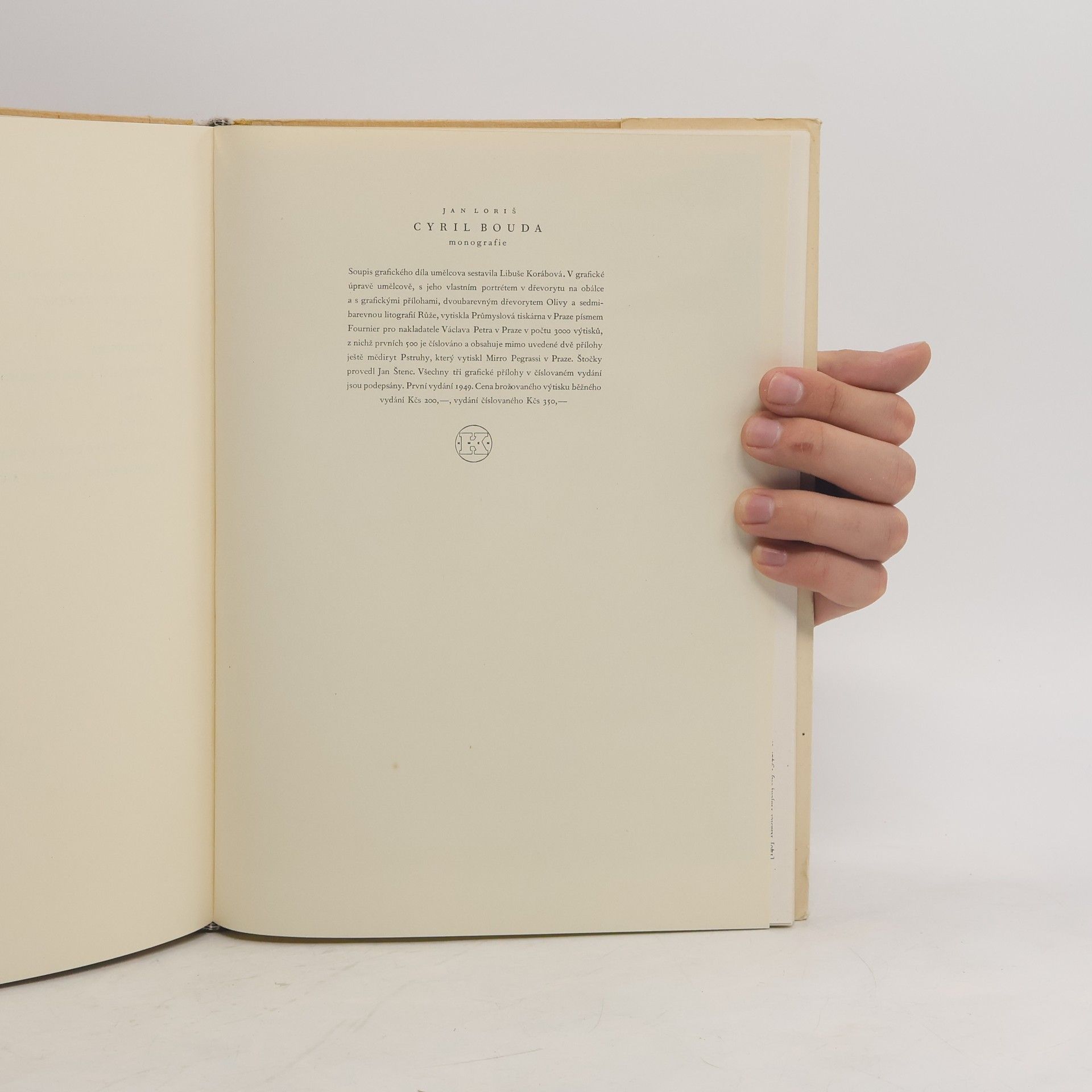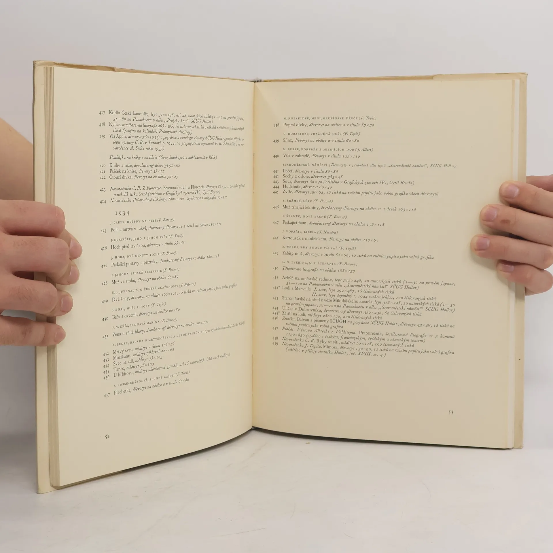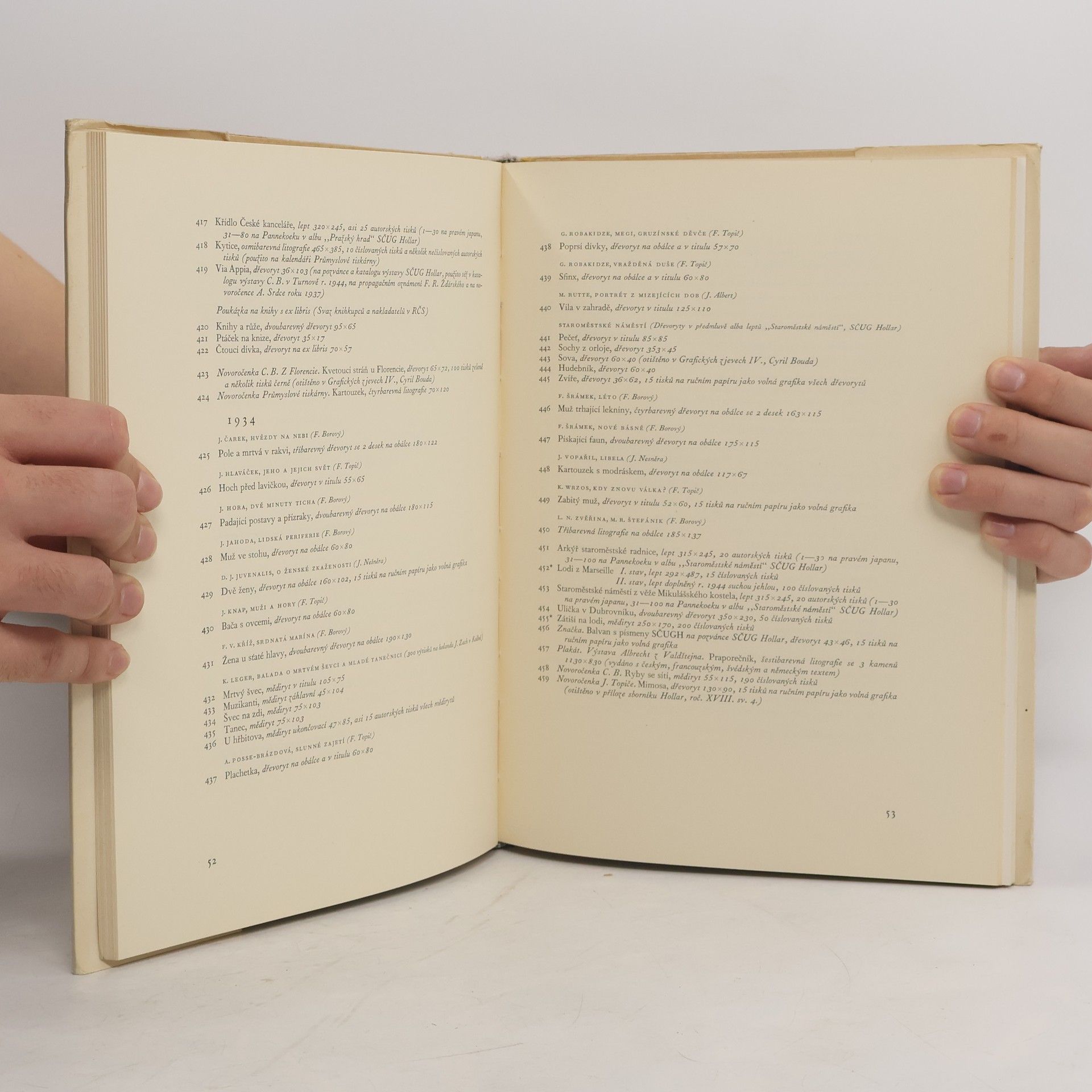 Soupis grafického díla umělcova sestavila Libuše Korábová. V grafické úpravě umělcově, s jeho vlastním portrétem v dřevorytu na obálcea s grafickými přílohami, dvoubarevným dřevorytem Olivy a sedmibarevnou litofrafií Růže.