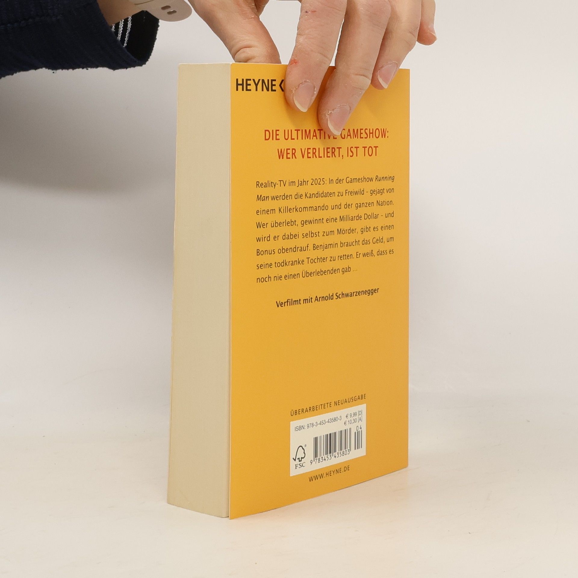 Die ultimative Gameshow: Wer verliert, ist tot Reality-TV im Jahr 2025: In der Gameshow Running Man werden die Kandidaten zu Freiwild – gejagt von einem Killerkommando und der ganzen Nation. Wer überlebt, gewinnt eine Milliarde Dollar – und wird er dabei selbst zum Mörder, gibt es einen Bonus obendrauf. Benjamin braucht das Geld, um seine todkranke Tochter zu retten. ER weiß, dass es noch nie einen Überlebenden gab … Verfilmt mit Arnold Schwarzenegger.