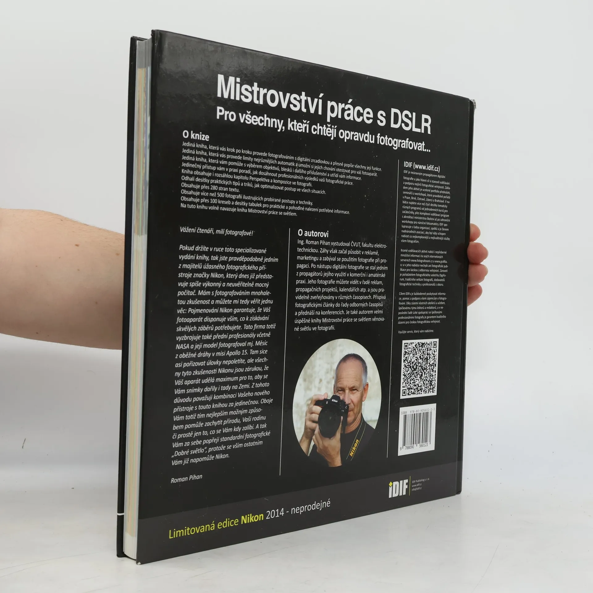 Kniha Mistrovství práce s DSLR jako první nabízí opravdu vyčerpávající odpovědi na všechny vaše otázky týkající se práce s DSLR. Jde o původní českou publikaci, na které tým lektorů IDIFu pracoval skoro rok. Autorem textu je Roman Pihan, který se problematice práce s DSLR věnuje soustavně již přes pět let. Začtěte se do této unikátní knihy a najděte odpovědi na své otázky.Kniha je napsána sice velice odborně, ale Roman Pihan tyto termíny vždy vysvětlí velice přesně, jasně a srozumitelně. Proto se člověk nemusí bát, že by něco nepochopil. Jeho jazyk je ale spíše odbornější. Sám Roman Pihan o ní mluví jako o knize, která má seznámit uživatele s provozem zrcadlovky, jejím pochopením a samozřejmě bezchybnou obsluhou. Na tuto publikaci navazuje Mistrovství práce se světlem, kde naopak rozebírá taje světla, tonalitu barev a bere na zřetel jeho zpracování.