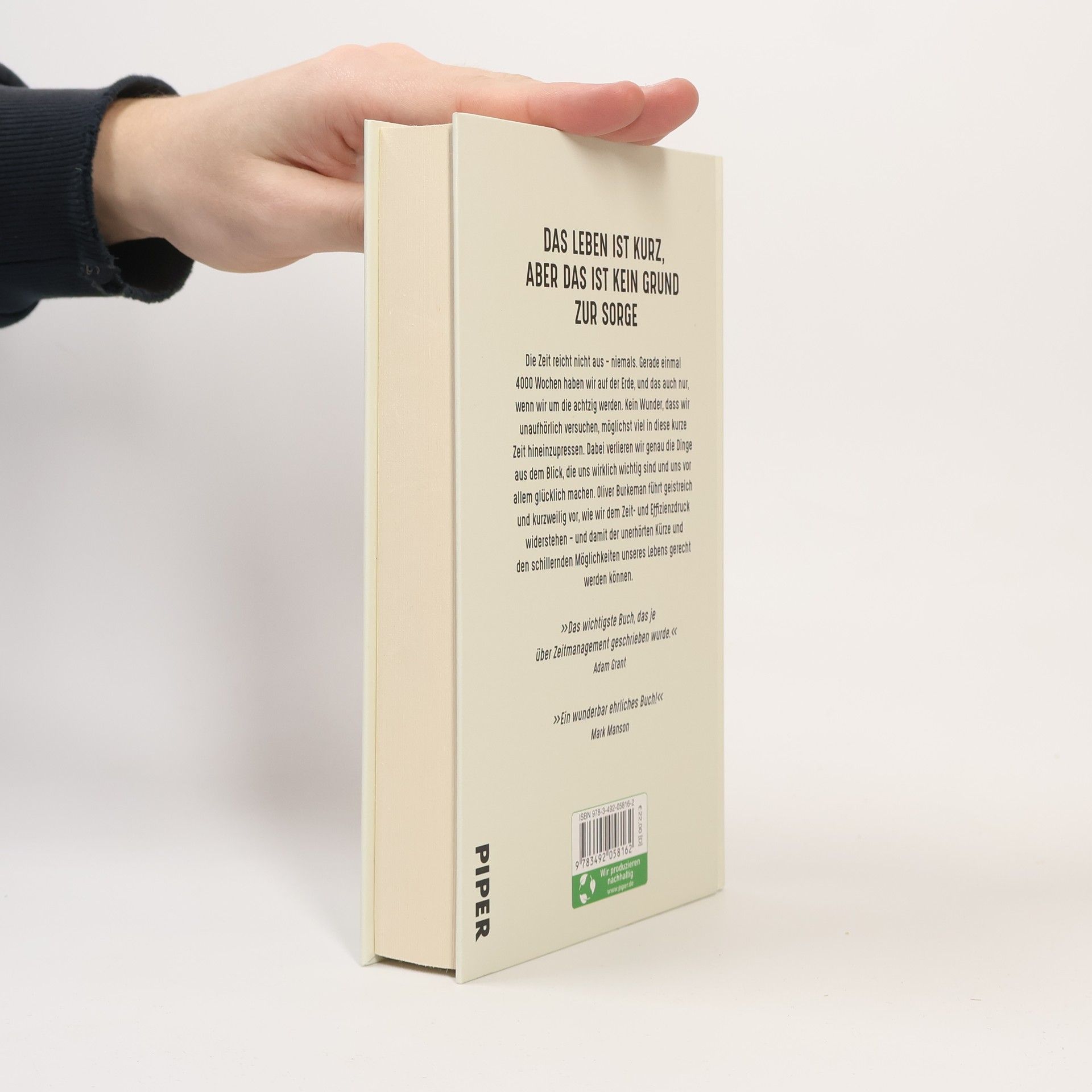 Das Leben ist kurz, aber das ist kein Grund zur Sorge Die Zeit reicht nicht aus – niemals. Gerade einmal 4000 Wochen haben wir auf der Erde, und das auch nur, wenn wir um die achtzig werden. Kein Wunder, dass wir unaufhörlich versuchen, möglichst viel in diese kurze Zeit hineinzupressen. Dabei verlieren wir genau die Dinge aus dem Blick, die uns wirklich wichtig sind und uns vor allem glücklich machen. Oliver Burkeman führt geistreich und kurzweilig vor, wie wir dem Zeit- und Effizienzdruck widerstehen – und damit der unerhörten Kürze und den schillernden Möglichkeiten unseres Lebens gerecht werden können. Der New York Times Bestseller Oliver Burkeman legt hier ein fantastisch geschriebenes und unterhaltsames Buch vor, das die Philosophie von Zeit und Zeitmanagement durchleuchtet, Fallen aufzeigt, in die wir alle schon getappt sind, und die Endlichkeit des menschlichen Lebens zu einem erhebt - einem herrlichen Grund zu feiern! »Das wichtigste Buch, das je über Zeitmanagement geschrieben wurde.« Adam Grant »Ein wunderbar ehrliches Buch!« Mark Manson »Ein willkommener Balsam für alle, die sich von den (vielleicht unrealistischen) Anforderungen des Lebens überwältigt fühlen.« Publishers Weekly