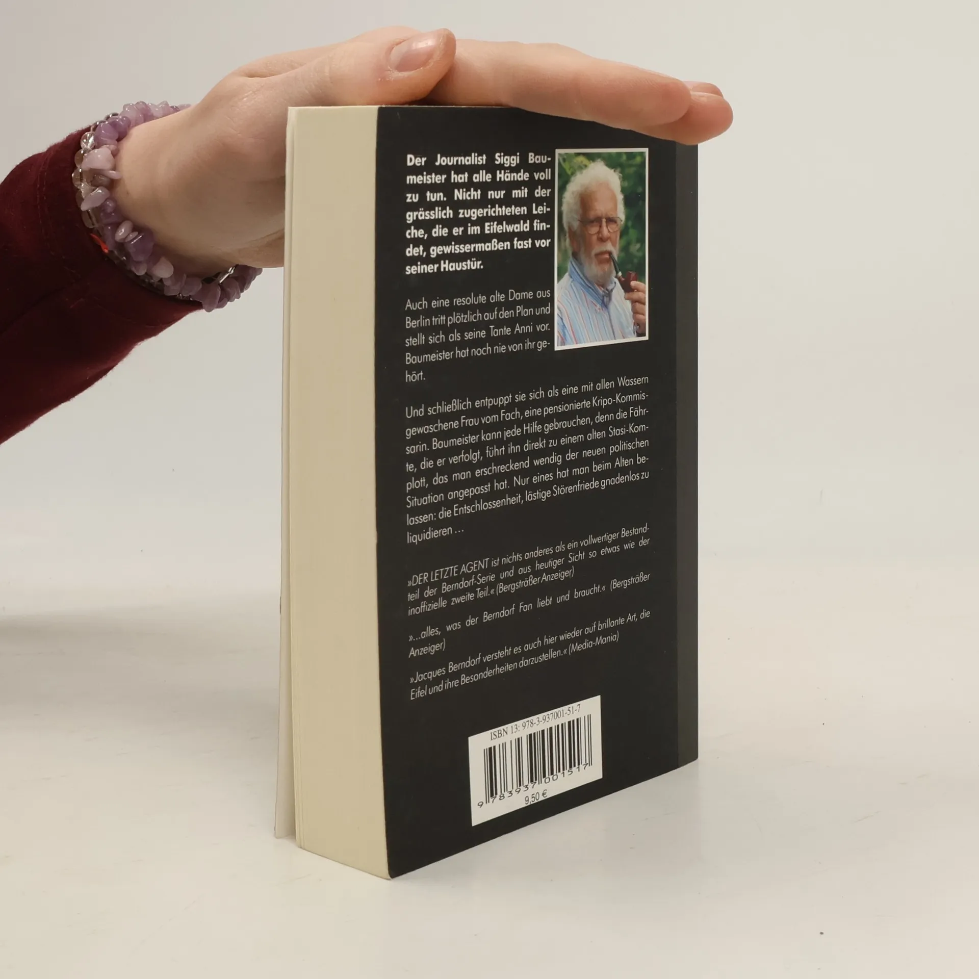 Der Journalist Siggi Baumeister hat alle Hände voll zu tun. Nicht nur mit der gräßlich zugerichteten Leiche, die er im Eifelwald findet, gewis-sermaßen fast vor seiner Haustür. Auch eine resolute alte Dame aus Berlin tritt plötzlich auf den Plan und stellt sich als seine Tante Anni vor. Baumeister hat noch nie von ihr gehört. Und schließlich entpuppt sie sich als eine mit allen Wassern gewaschene Frau vom Fach, eine pensionierte Kripo-Kommissarin. Baumeister kann jede Hilfe gebrauchen, denn die Fährte, die er verfolgt, führt ihn direkt zu einem alten Stasi-Komplott, das man erschreckend wendig der neuen politischen Situation angepasst hat. Nur eines hat man beim alten belassen: die Entschlossenheit, lästige Störenfriede gnadenlos zu liquidieren … “Wieder einmal überzeugt das Buch durch Berndorfs journalistische Qualitäten. Es ist nur zu hoffen, dass - wie vom Verlag angekündigt - noch weitere “verschollene” Berndorf-Schätze geborgen werden können.” (Bergsträßer Anzeiger zu DER LETZTE AGENT) “Ein zeitgenössischer Krimi vom Allerfeinsten. Jacques Berndorf versteht es auch hier wieder auf brillante Art, die Eifel und ihre Besonderheiten darzustellen und nicht nur die Leserinnen und Leser zu begeistern, die selbst im ländlichen Bereich groß geworden sind.”