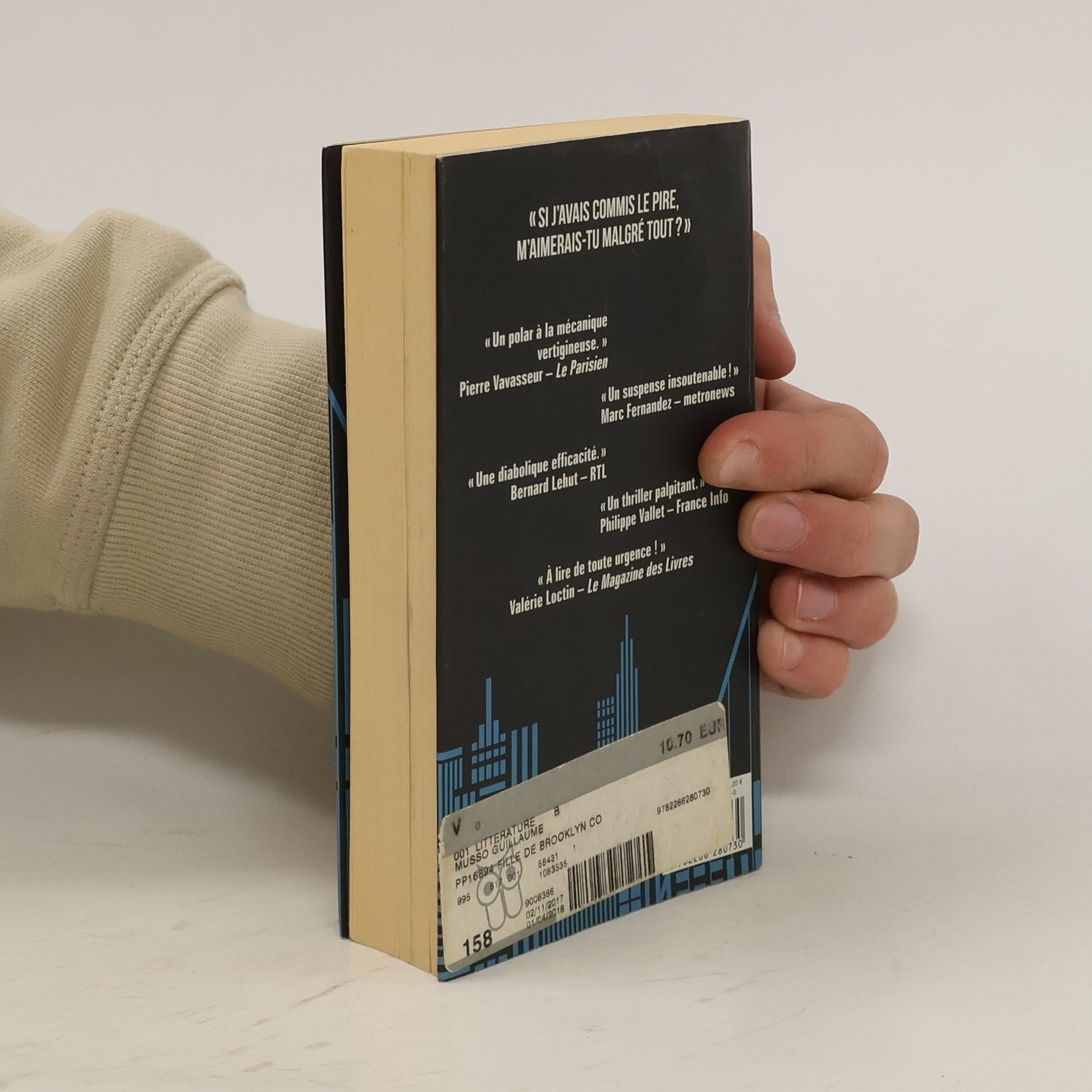 Je me souviens très bien de cet instant. Nous étions face à la mer. L'horizon scintillait. C'est là qu'Anna m'a demandé : " Si j'avais commis le pire, m'aimerais-tu malgré tout ? " Vous auriez répondu quoi, vous ? Anna était la femme de ma vie. Nous devions nous marier dans trois semaines. Bien sûr que je l'aimerais quoi qu'elle ait pu faire. Du moins, c'est ce que je croyais, mais elle a fouillé dans son sac d'une main fébrile, et m'a tendu une photo. - C'est moi qui ai fait ça. Abasourdi, j'ai contemplé son secret et j'ai su que nos vies venaient de basculer pour toujours. " Un polar à la mécanique vertigineuse. Une fois de plus Musso déboussole et fascine. " Pierre Vavasseur – Le Parisien