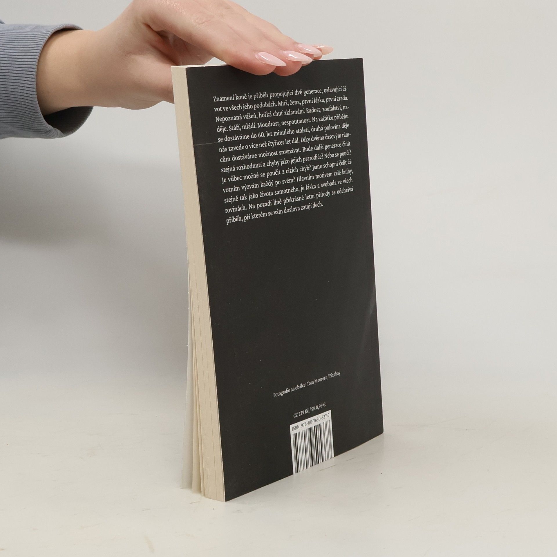 Povídka propojující dvě generace, zrcadlící jejich výhry i prohry. Příběh lásky, svobody a oslavy přírody ve všech jejích krásách Muž, žena, první láska, první zrada. Nepoznaná vášeň, hořká chuť zklamání. Radost, zoufalství, naděje. Stáří, mládí. Moudrost, nespoutanost. Znamení koně je příběh propojující dvě generace, oslavující život ve všech jeho podobách. Na začátku se přeneseme do 60. let minulého století, druhá polovina děje nás zavede o více než čtyřicet let později. Díky dvěma časovým rámcům můžeme srovnávat. Bude dělat další generace stejná rozhodnutí a chyby jako jejich prarodiče, nebo se poučí? A je vůbec možné poučit se z cizích chyb? Hlavním motivem knihy, stejně jako života samotného, je láska a svoboda ve všech rovinách. Na pozadí líně překrásné letní přírody se odehrává příběh, při kterém se vám doslova zatají dech.
