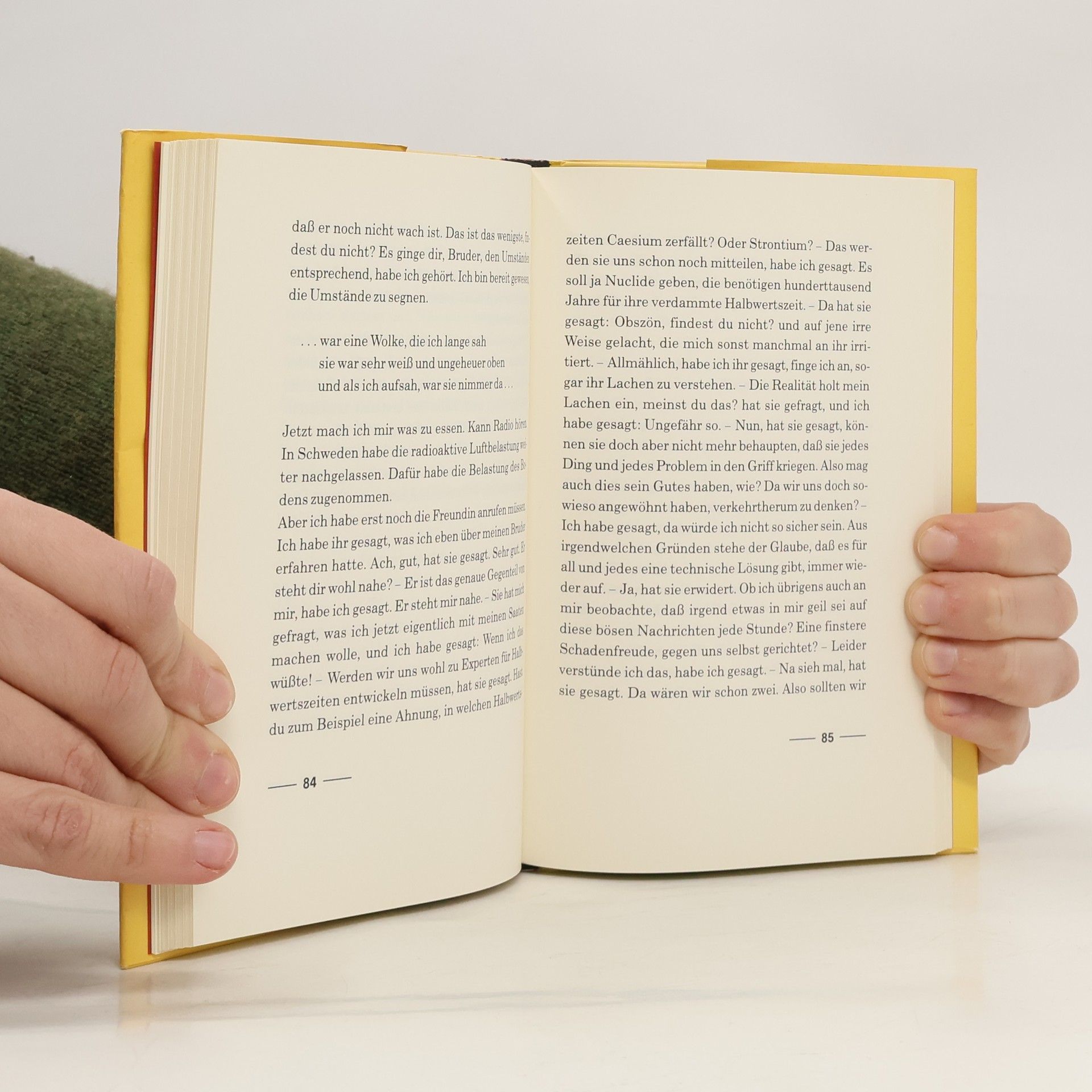 Ihrem Bruder, der sich dem Risiko einer Operation aussetzt, versucht die Erzählerin, in einem inneren Monolog jenen Tag zu beschreiben, an dem uns alle - vorbereitet und doch ahnungslos - die Nachricht über Tschernobyl erreichte