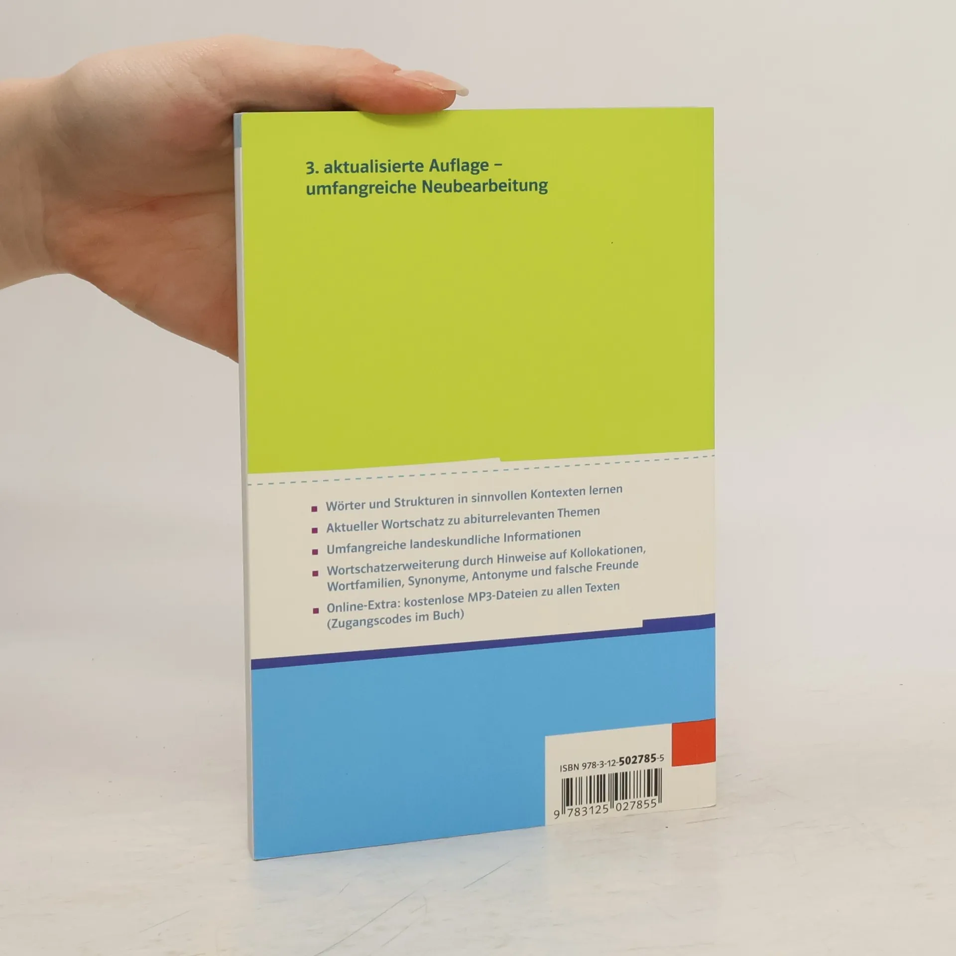 Thematischer gegliedeter Wortschatz für die Oberstufe. Im Sinn des kontextbezogenen Lernens enthalten landeskundliche Texte den jeweiligen Lernwortschatz.