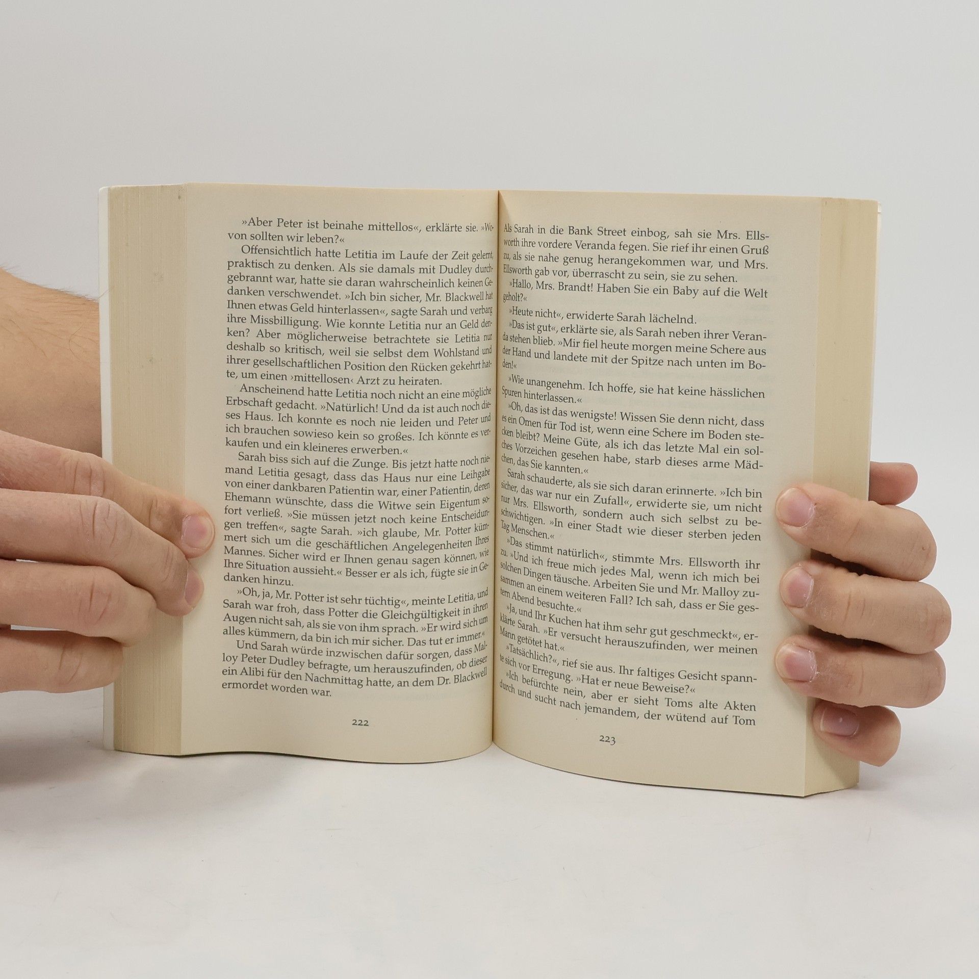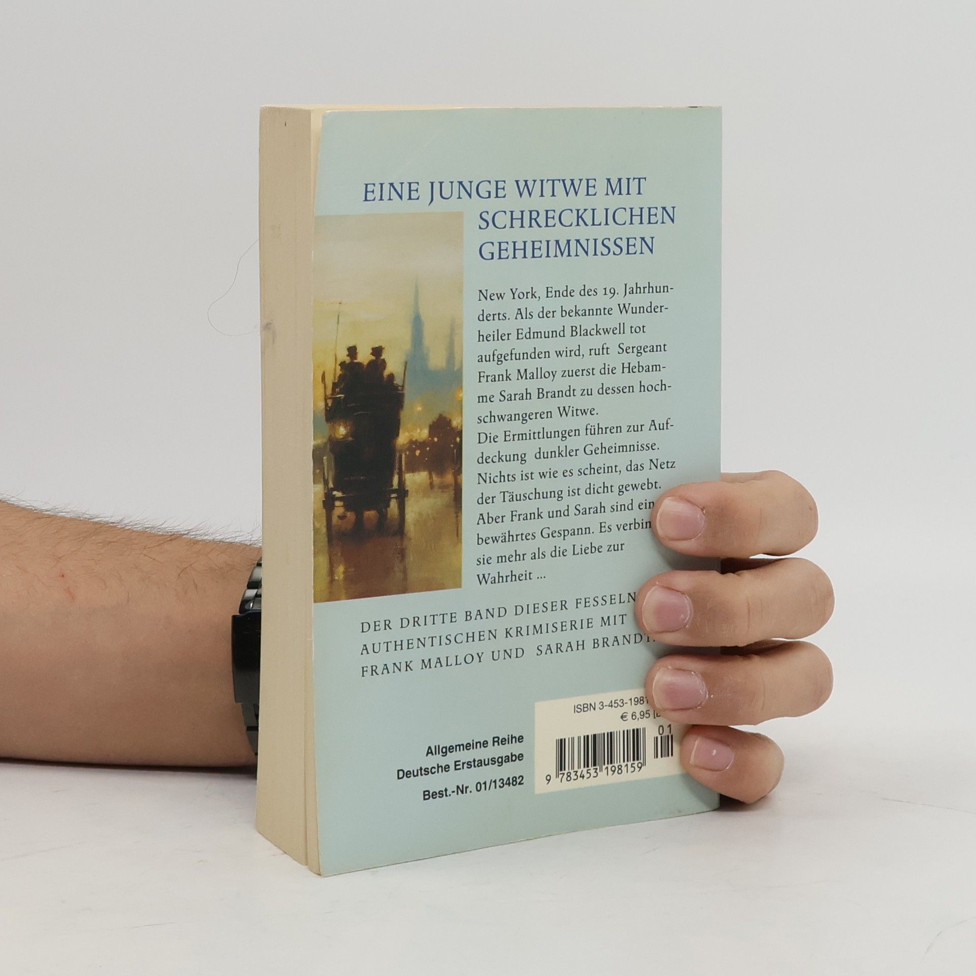 New York, Ende des 19. Jahrhunderts. Als der bekannte Wunderheiler Edmund Blackwell tot aufgefunden wird, ruft Sergeant Frank Malloy zuerst die Hebamme Sarah Brandt zu dessen hochschwangeren Witwe. Die Ermittlungen führen zur Aufdeckung dunkler Geheimnisse. Nichts ist wie es scheint, das Netz der Täuschung ist dicht gewebt. Aber Frank und Sarah sind ein bewährtes Gespann. Es verbindet sie mehr als die Liebe zur Wahrheit …