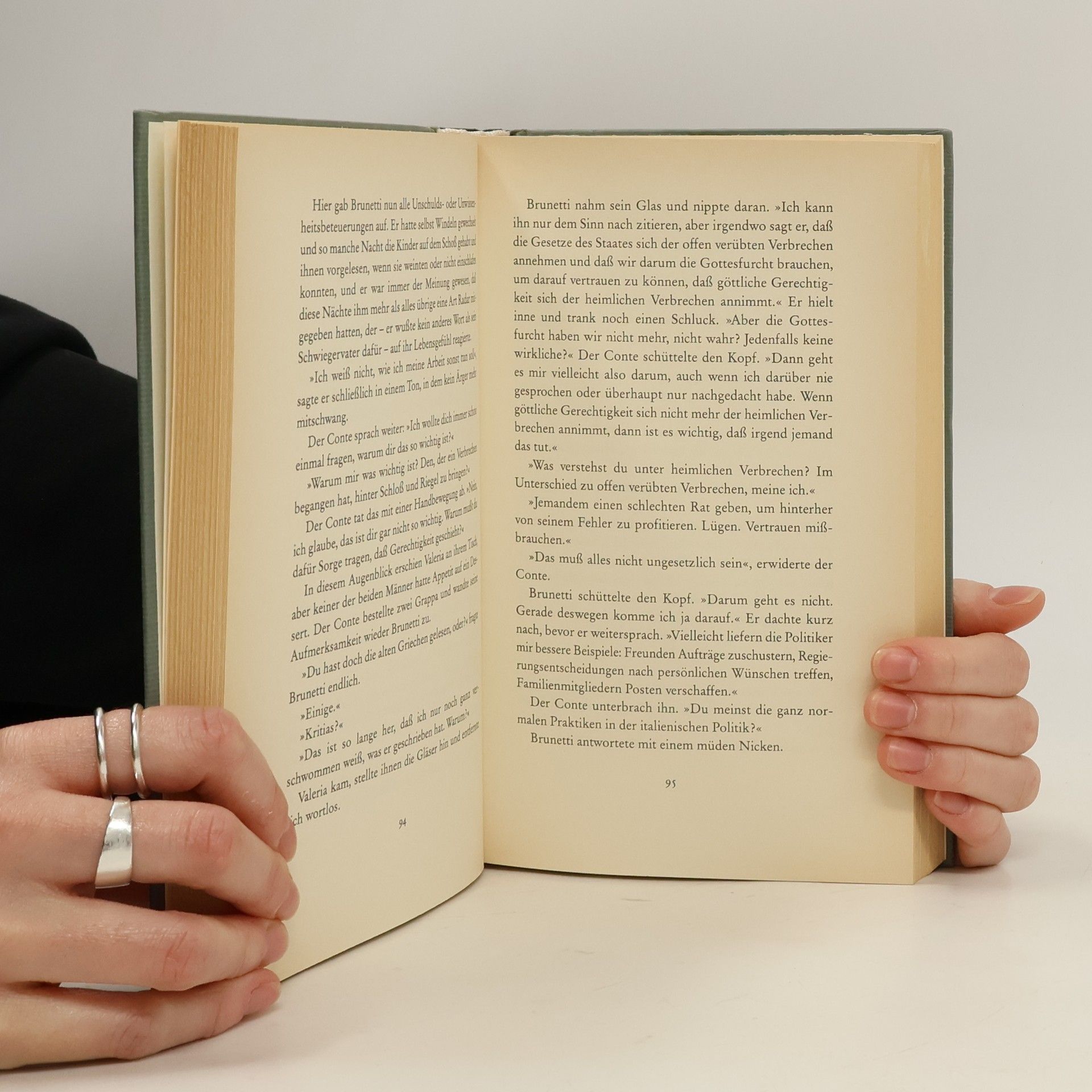 Als bei der Renovierung eines Hauses am Fuß der Dolomiten die Leiche eines jungen Mannes gefunden wird, führt die Spur zum venezianischen Adelsgeschlecht der Lorenzonis und weiter hinter die Kulissen der Mächtigen und Einflußreichen. Commissario Brunetti gräbt in seinem siebten Fall tiefer, als die Leiche lag. Nicht immer sind die Motive des Handelns so edel wie das Geblüt, aus dem man stammt.