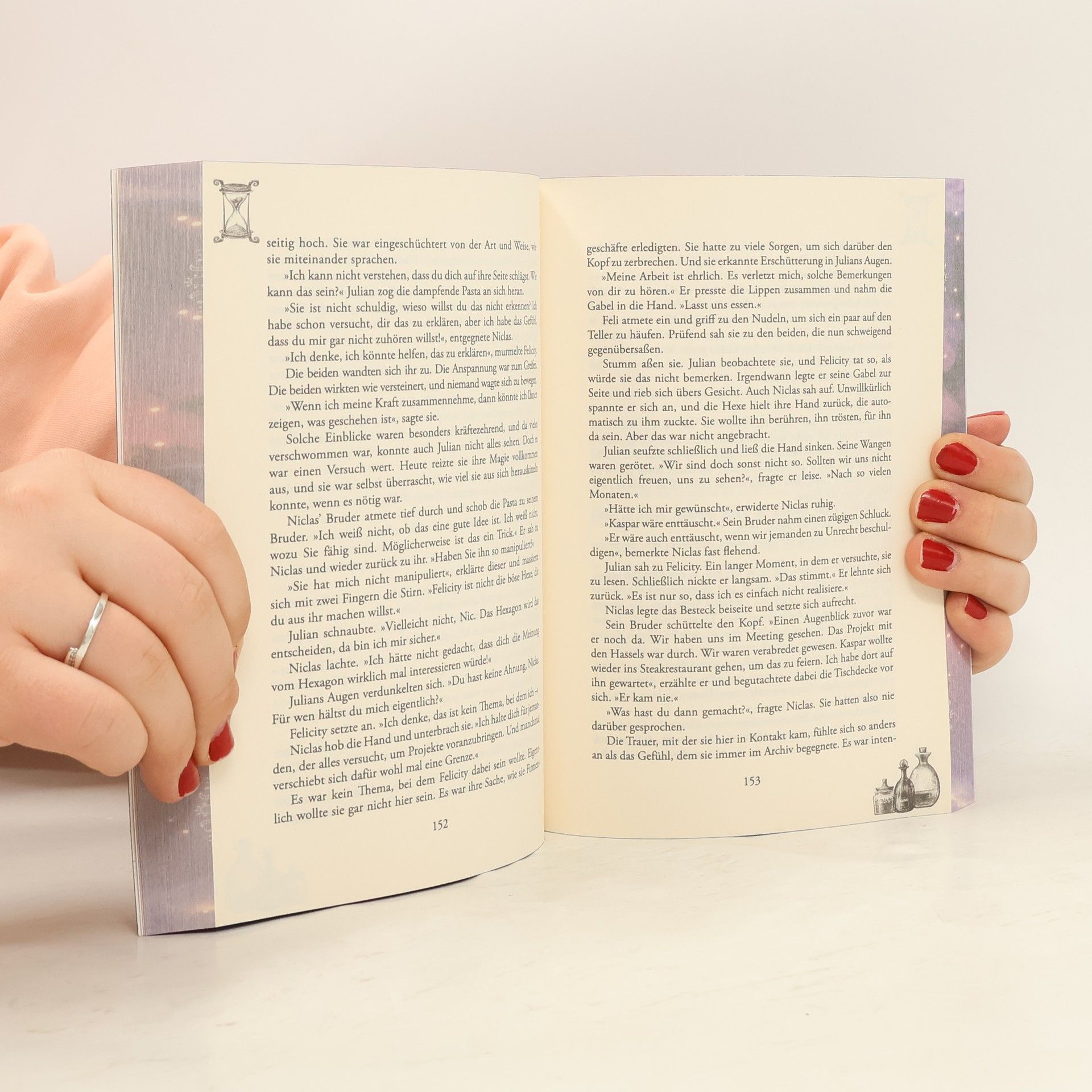 Hexenseelen sterben nicht Die junge Hexe Felicity tritt als Seelentransporteurin in die Fußstapfen ihrer Mutter. Neben der Herstellung von Elixieren, die in ihrem Café verkauft werden, kümmert sie sich darum, dass die verstorbenen Hexen und Hexer ihren Platz im Jenseits einnehmen. Dies ermöglichen besondere Bücher, die Felicity herstellt, um die Seelen der Verstorbenen zum Wunschort zu transportieren. Als der Hexer Niclas auftaucht und Felicity beschuldigt, die Seele seines Onkels ohne seine Zustimmung in den Tod befördert zu haben, kann die Hexe dies nicht auf sich sitzen lassen. Doch das Buch von Kaspar Eisenmann ist unauffindbar und Felicity ahnt, dass sie in ein böses Spiel verwickelt wurde Softcover mit Farbschnitt