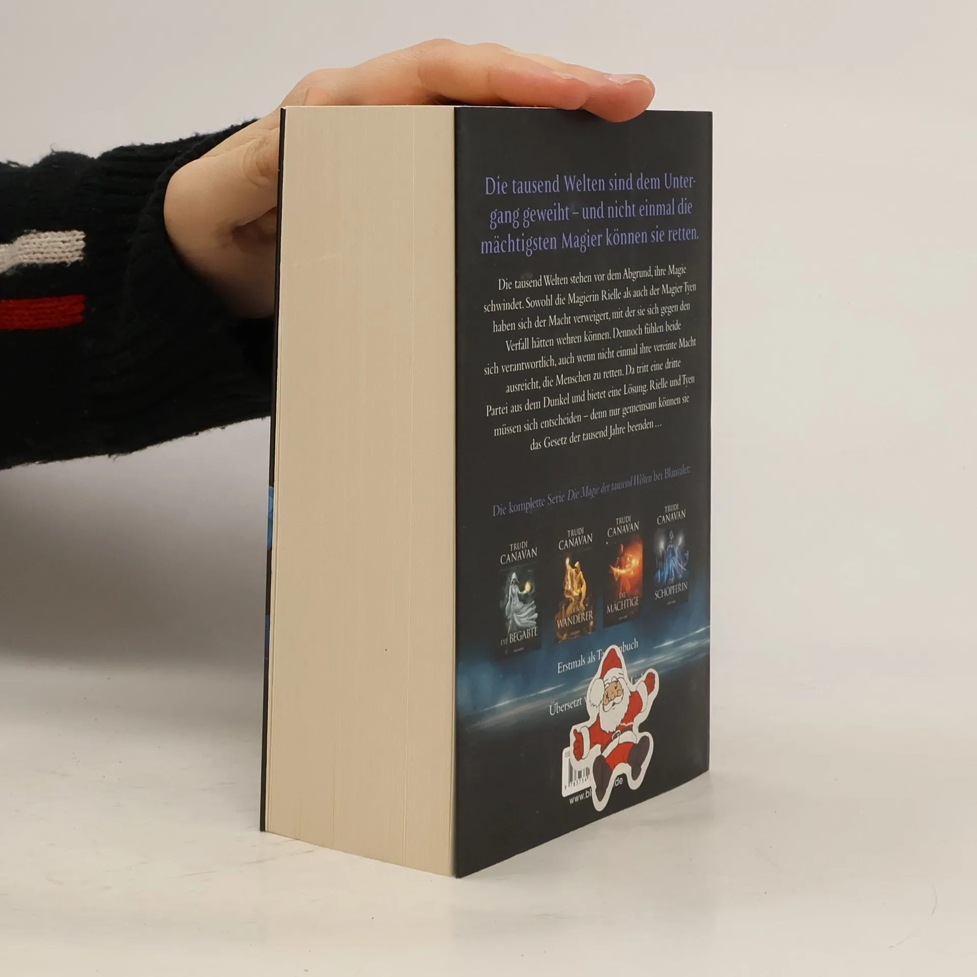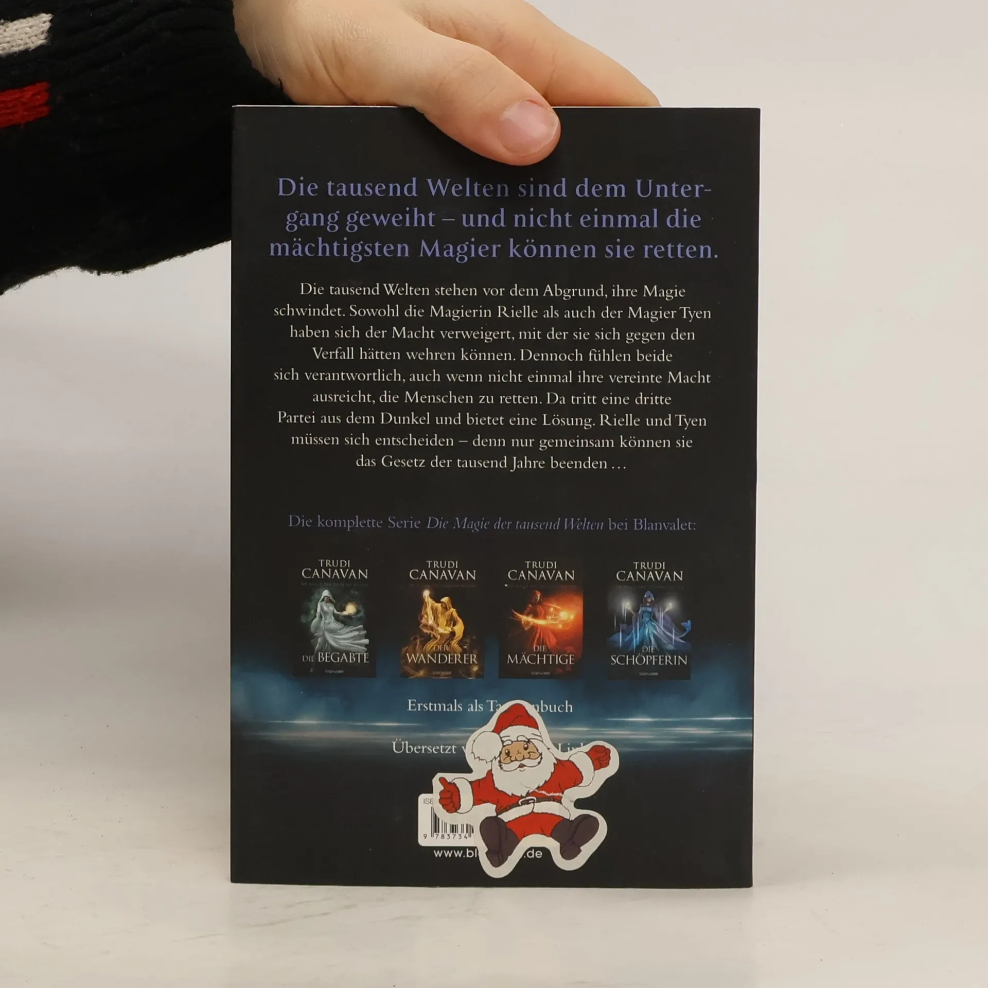 Die tausend Welten sind dem Untergang geweiht – und nicht einmal die mächtigsten Magier können sie retten. Die tausend Welten stehen vor dem Abgrund, ihre Magie schwindet. Sowohl die Magierin Rielle als auch der Magier Tyen haben sich der Macht verweigert, mit der sie sich gegen den Verfall hätten wehren können. Dennoch fühlen beide sich verantwortlich, auch wenn nicht einmal ihre vereinte Macht ausreicht, die Menschen zu retten. Da tritt eine dritte Partei aus dem Dunkel und bietet eine Lösung. Rielle und Tyen müssen sich entscheiden – denn nur gemeinsam können sie das Gesetz der tausend Jahre beenden … Die komplette Serie Die Magie der tausend Welten bei Blanvalet: 1. Die Begabte 2. Der Wanderer 3. Die Mächtige 4. Die Schöpferin