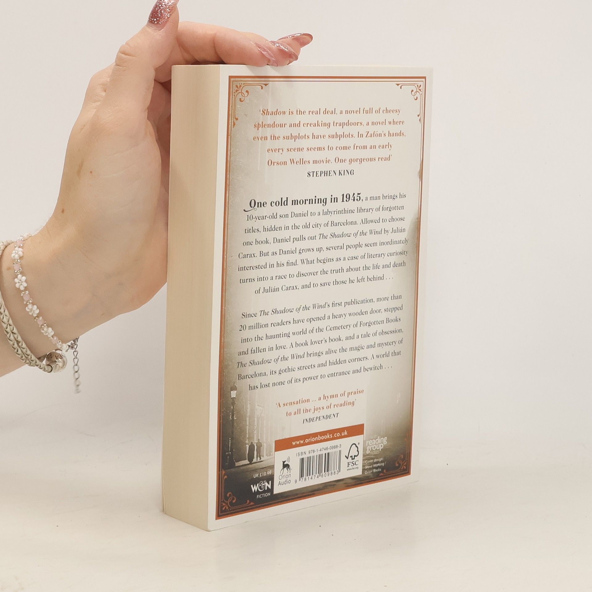 THE MODERN CLASSIC: OVER 20 MILLION COPIES SOLD A Sunday Times bestseller and a Richard & Judy book club pick 'The real deal: one gorgeous read' Stephen King 'This book will change your life. An instant classic' Daily Telegraph 'A book lover's dream' The Times Hidden in the heart of the old city of Barcelona is the 'Cemetery of Lost Books', a labyrinthine library of obscure and forgotten titles that have long gone out of print. To this library, a man brings his 10-year-old son Daniel one cold morning in 1945. Daniel is allowed to choose one book from the shelves and pulls out 'The Shadow of the Wind' by Julian Carax. But as he grows up, several people seem inordinately interested in his find. Then, one night, as he is wandering the old streets once more, Daniel is approached by a figure who reminds him of a character from the book, a character who turns out to be the devil. This man is tracking down every last copy of Carax's work in order to burn them. What begins as a case of literary curiosity turns into a race to find out the truth behind the life and death of Julian Carax and to save those he left behind... 'Marvellous' Sunday Times 'A hymn of praise to all the joys of reading' Independent 'Gripping and instantly atmospheric' Mail on Sunday 'Irresistibly readable' Guardian 'Diabolically good' Elle