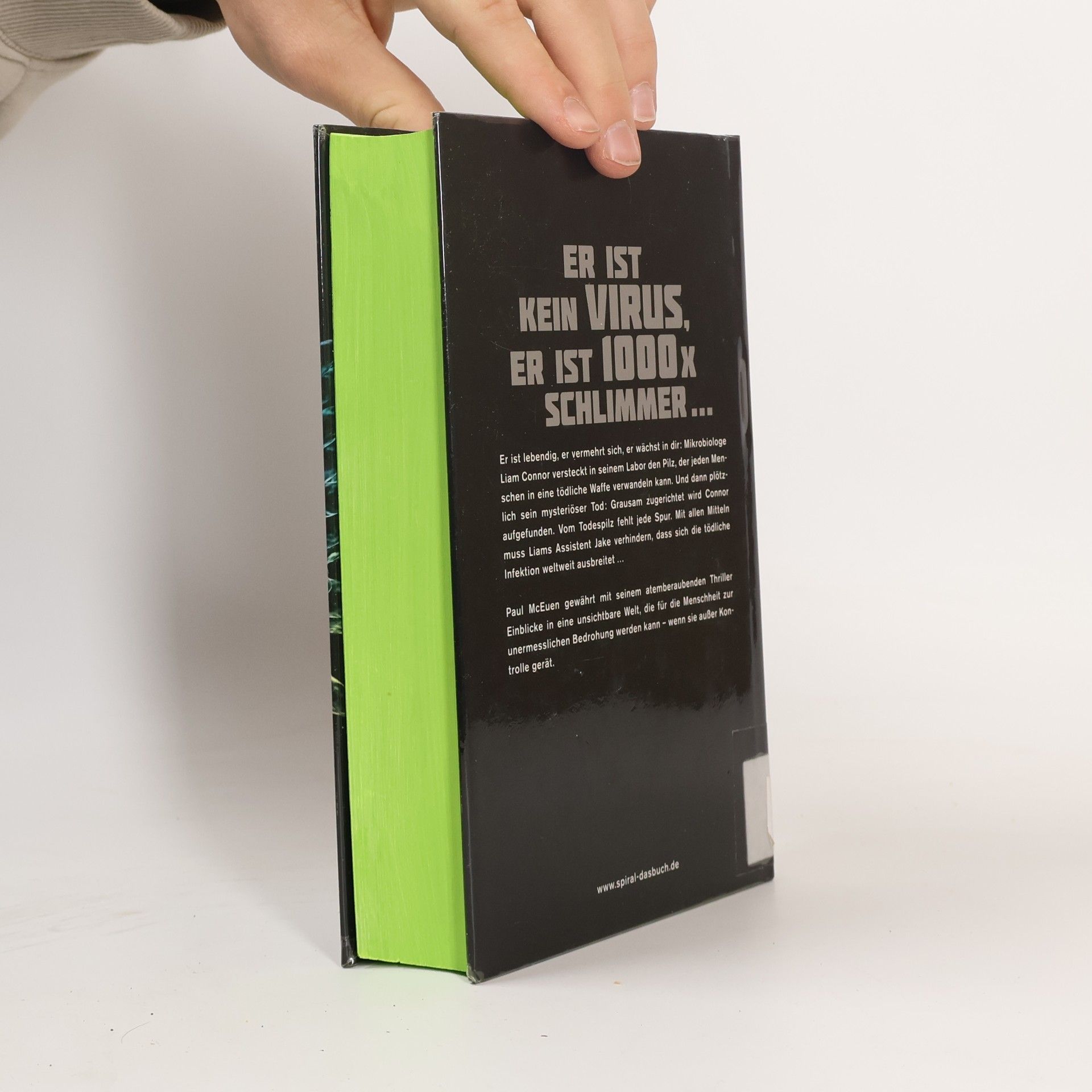 Er ist kein Virus, er ist 1000x schlimmer. Mikrobiologe Liam Connor besitzt den Pilz, der jeden Menschen in eine tödliche Waffe verwandeln kann. Und dann plötzlich sein mysteriöser Tod: Grausam zugerichtet wird Connor aufgefunden. Vom Todespilz fehlt jede Spur. Musste er für sein Wissen mit dem Leben bezahlen? Wer hat den Todespilz an sich gebracht? Welches Ziel verfolgt er? Wird der Pilz freigesetzt, so dass er die ganze Menschheit gefährden kann? Ein Wettlauf gegen die Zeit beginnt: Mit allen Mitteln muss Liams Assistent Jake verhindern, dass sich die tödliche Infektion weltweit ausbreitet … Paul McEuen gewährt mit seinem atemberaubenden Thriller Einblicke in eine unsichtbare Welt, die für die Menschheit zur unermesslichen Bedrohung werden kann – wenn sie außer Kontrolle gerät.