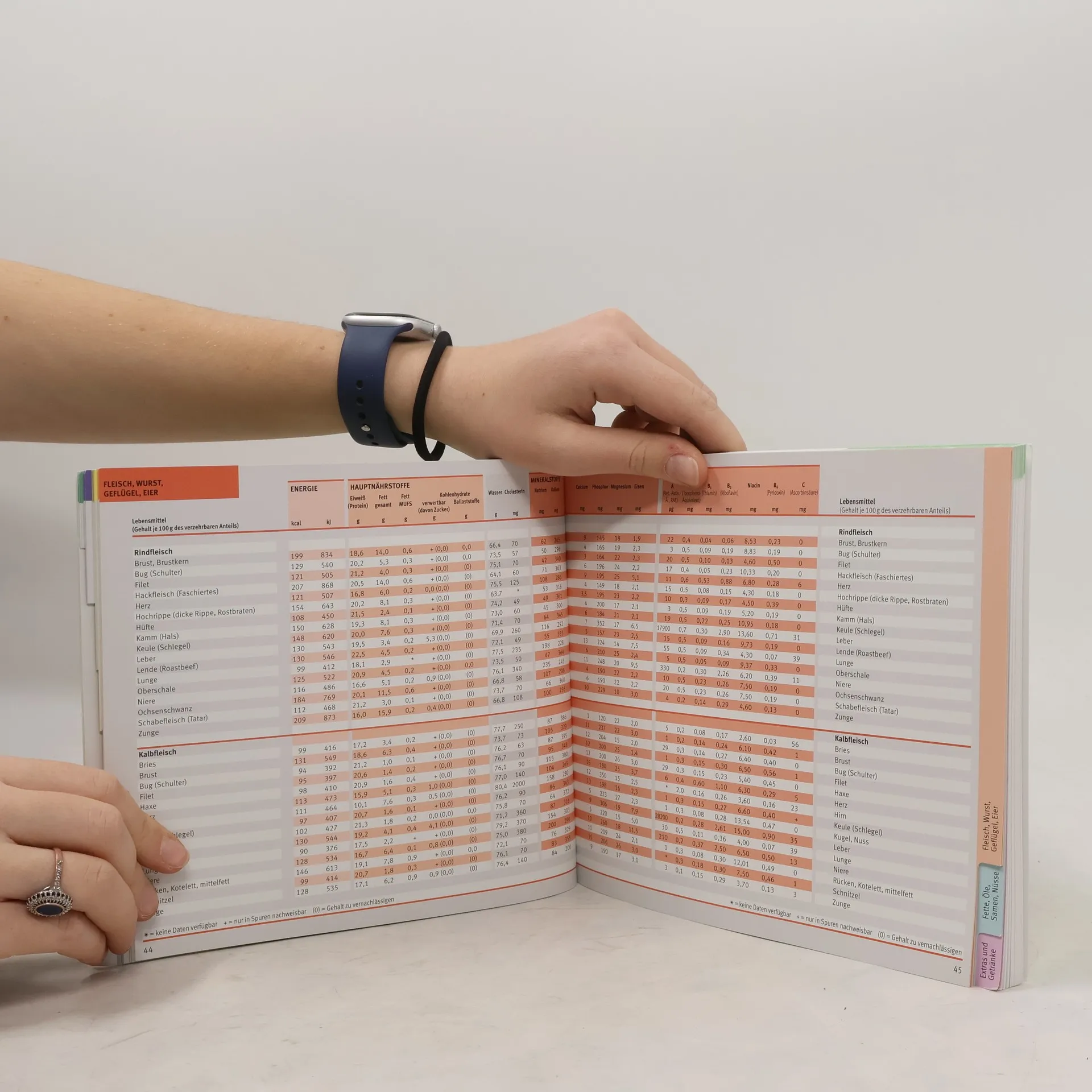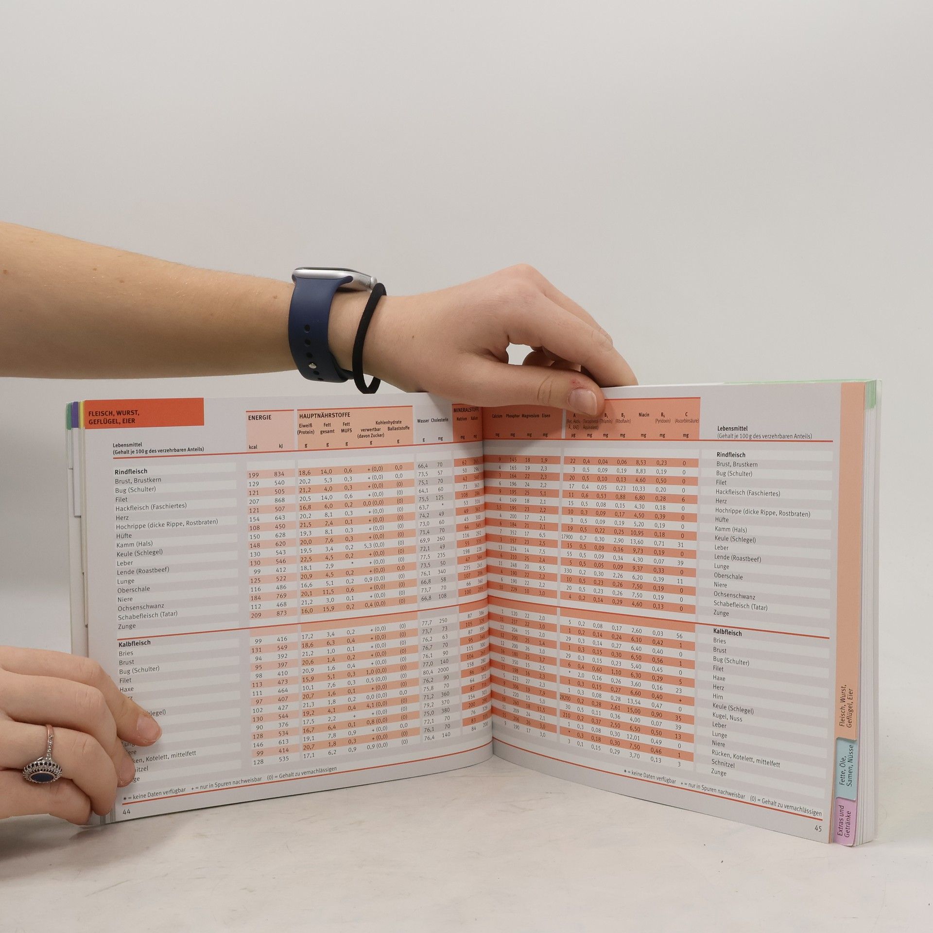 Die Nährwert-Kalorien-Tabelle ist seit Jahren der erfolgreichste und bei Ernährungsexperten anerkannte Klassiker. Über 20.000 Nährwertangaben bieten einen fundierten Überblick über die Nahrungsmittel, die wir täglich zu uns nehmen. Praktisch und benutzerfreundlich liefert die Tabelle wertvolle Informationen über alle wichtigen Inhaltsstoffe unserer Nahrung und berücksichtigt die aktuellen Referenzwerte der DGE (Deutsche Gesellschaft für Ernährung) zur Nährstoffzufuhr. Das nach Lebensmittelgruppen sortierte Griff-Register und die vielen Sondertabellen, z. B. für Diabetiker oder Allergiker, bieten eine sehr gute Übersicht über zahlreiche Produkte.