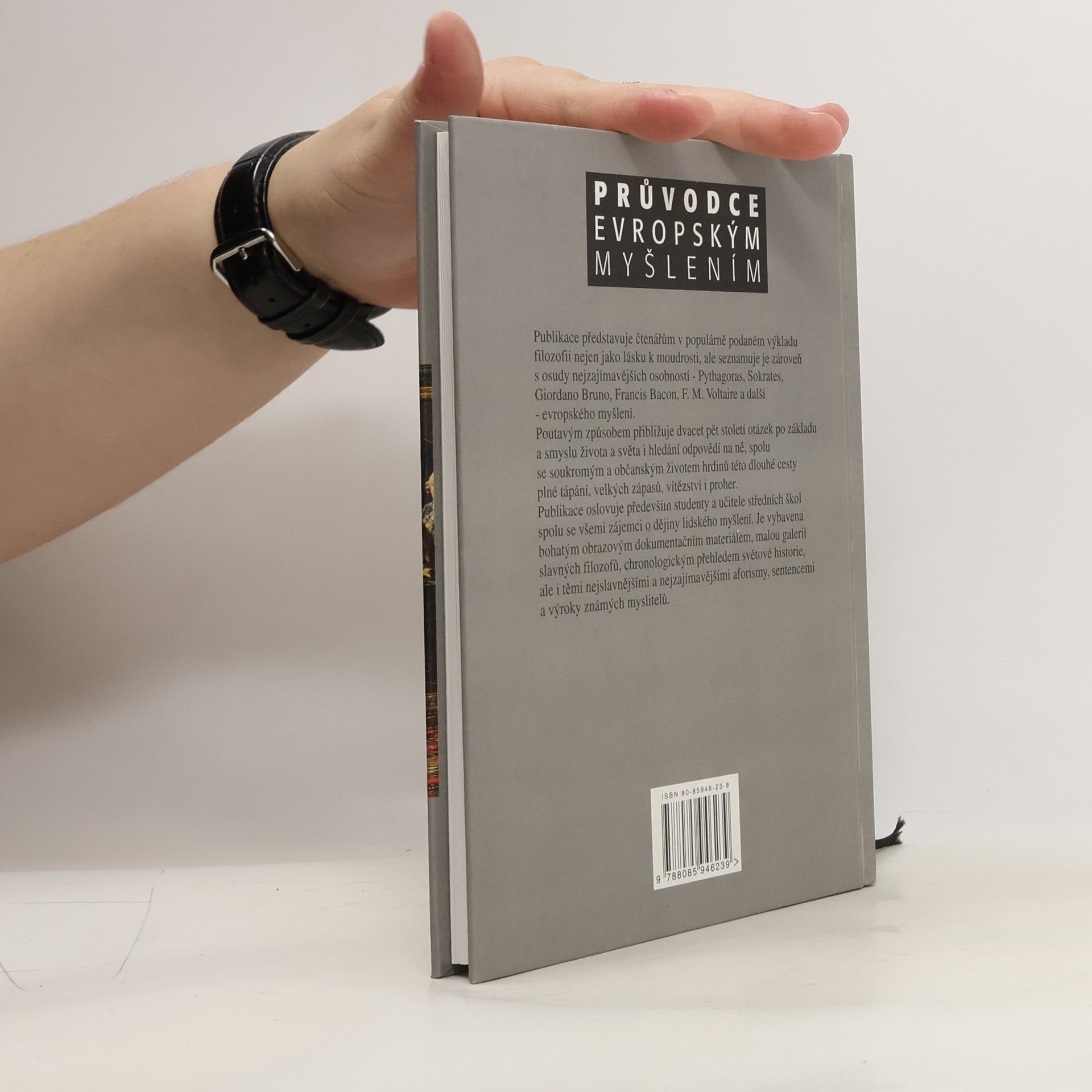 Publikace představuje čtenářům v populárně podaném výkladu filozofii nejen jako lásku k moudrosti, ale seznamuje je zároveň s osudy nejzajímavějších osobností - Pythagoras, Sokrates, Giordano Bruno, Francis Bacon, F. M. Voltaire a další - evropského myšlení. Poutavým způsobem přibližuje dvacet pět století otázek po základu a smyslu života a světa i hledání odpovědí na ně, spolu se soukromým a občanským životem hrdinů této dlouhé cesty plné tápání, velkých zápasů, vítězství i proher. Publikace oslovuje především studenty a učitele středních škol spolu se všemi zájemci o dějiny lidského myšlení. Je vybavena bohatým obrazovým dokumentačním materiálem, malou galerií slavných filozofů, chronologickým přehledem světové historie, ale i těmi nejslavnějšími a nejzajímavějšími aforismy, sentencemi a výroky známých myslitelů.