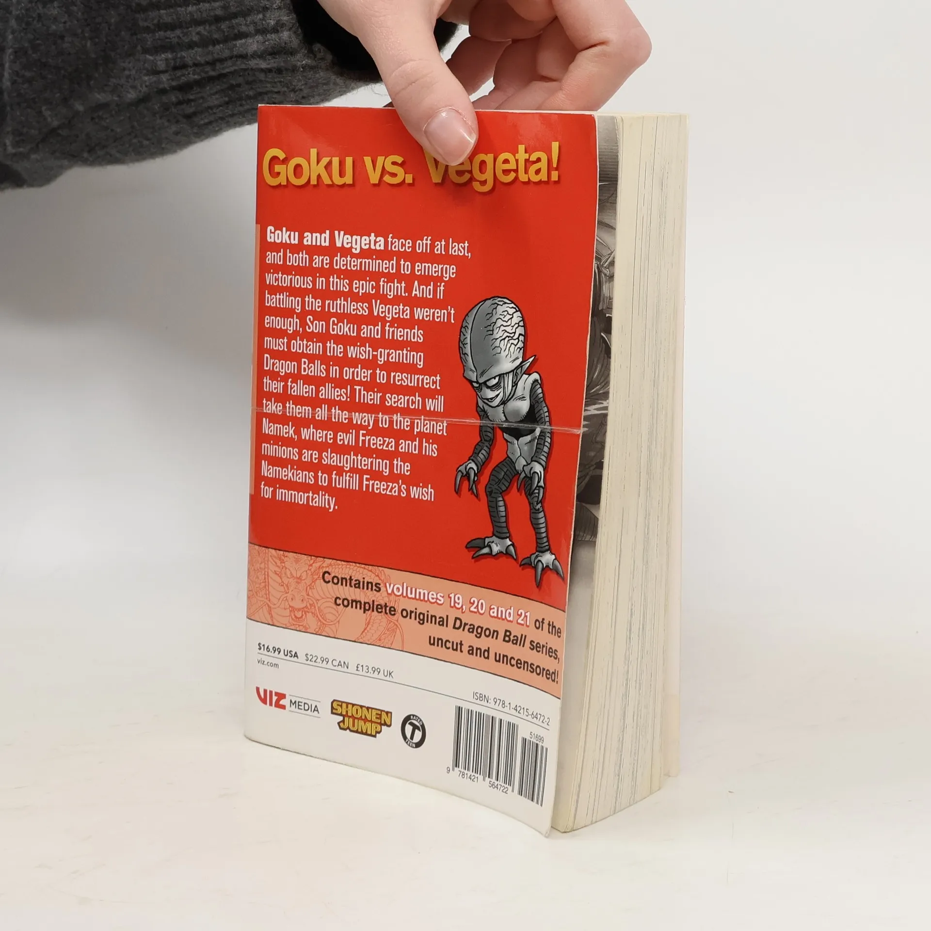 Goku vs. Vegeta! Goku and Vegeta face off at last and both are determined to emerge victorious in this epic fight. And if battling the ruthless Vegeta weren’t enough, Son Goku and friends must obtain the wish-granting Dragon Balls in order to resurrect their fallen allies! Their search will take them all the way to the planet Namek, where evil Freeza and his minions are slaughtering the Namekians to fulfill Freeza’s wish for immortality.