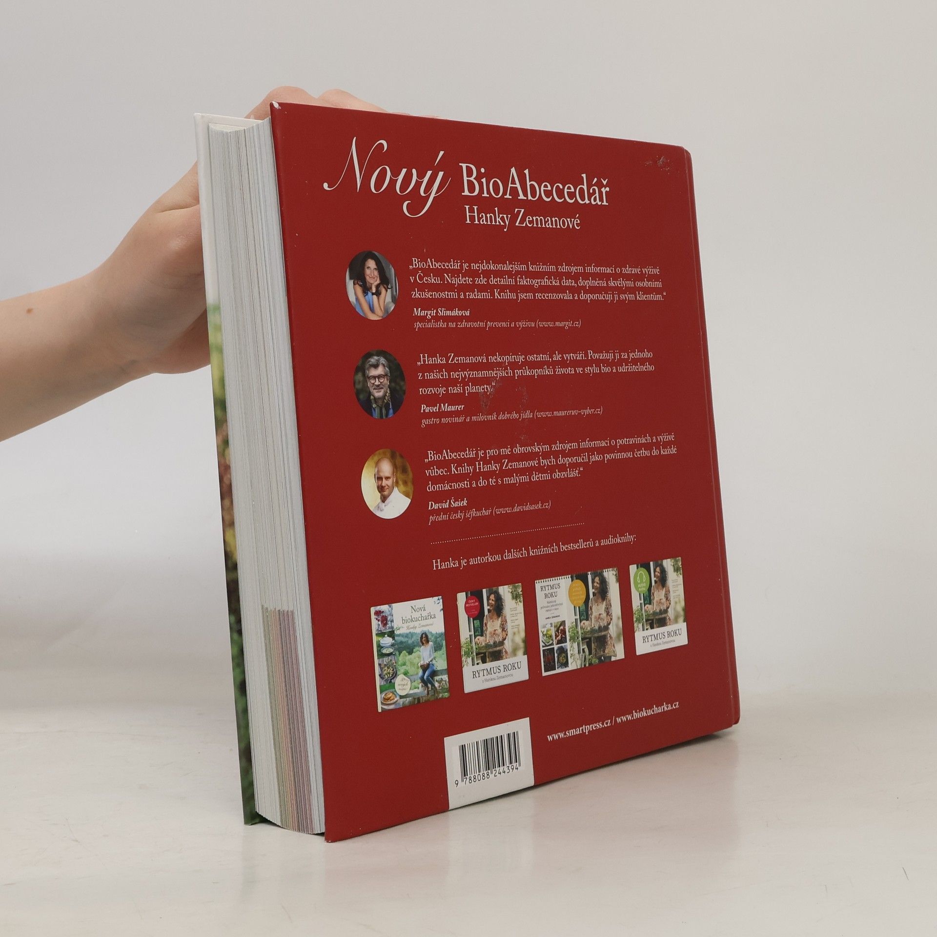 Vše podstatné o zdravém jídle v jedné knize. Srozumitelné informace, ověřené odborníky a celostními lékaři. 25 let Hančiných praktických zkušeností. Po 13 letech úspěšného prodeje kompletně přepracovaný. Receptová část knihy zůstala nezměněna. BioAbecedář je encyklopedie zdravých surovin plná praktických rad pro jejich nakupování a vaření. Hned po 1. vydání v roce 2010 ji média začala nazývat bio-biblí. Mnozí výživoví poradci ji doporučují svým klientům. Kniha je skvělým rádcem pro obchodníky s kvalitními potravinami a mnoho rodin, restaurací i jídelen dnes díky BioAbecedáři vaří zdravěji. O knize řekli: „BioAbecedář je nejdokonalejším knižním zdrojem informací o zdravé výživě v Česku. Najdete zde detailní faktografická data, doplněná skvělými osobními zkušenostmi a radami. Knihu jsem recenzovala a doporučuji ji svým klientům.“ PharmDr. Margit Slimáková, specialistka na zdravotní prevenci. Do 3. vydání BioAbecedáře jsem všechny hlavní texty napsala úplně nově, z mého současného úhlu pohledu a s přihlédnutím k novým poznatkům vědy o výživě. Jsem bohatší o 15 let životních zkušeností, vnímám více souvislostí i úskalí potravinářského průmyslu a zdravé výživy a mám jiný styl psaní. V Novém BioAbecedáři najdete i tipy, v čem se změnilo moje vaření, jakým potravinám věřím a které považuji za úplně zbytečné. Autorka Hanka Zemanová