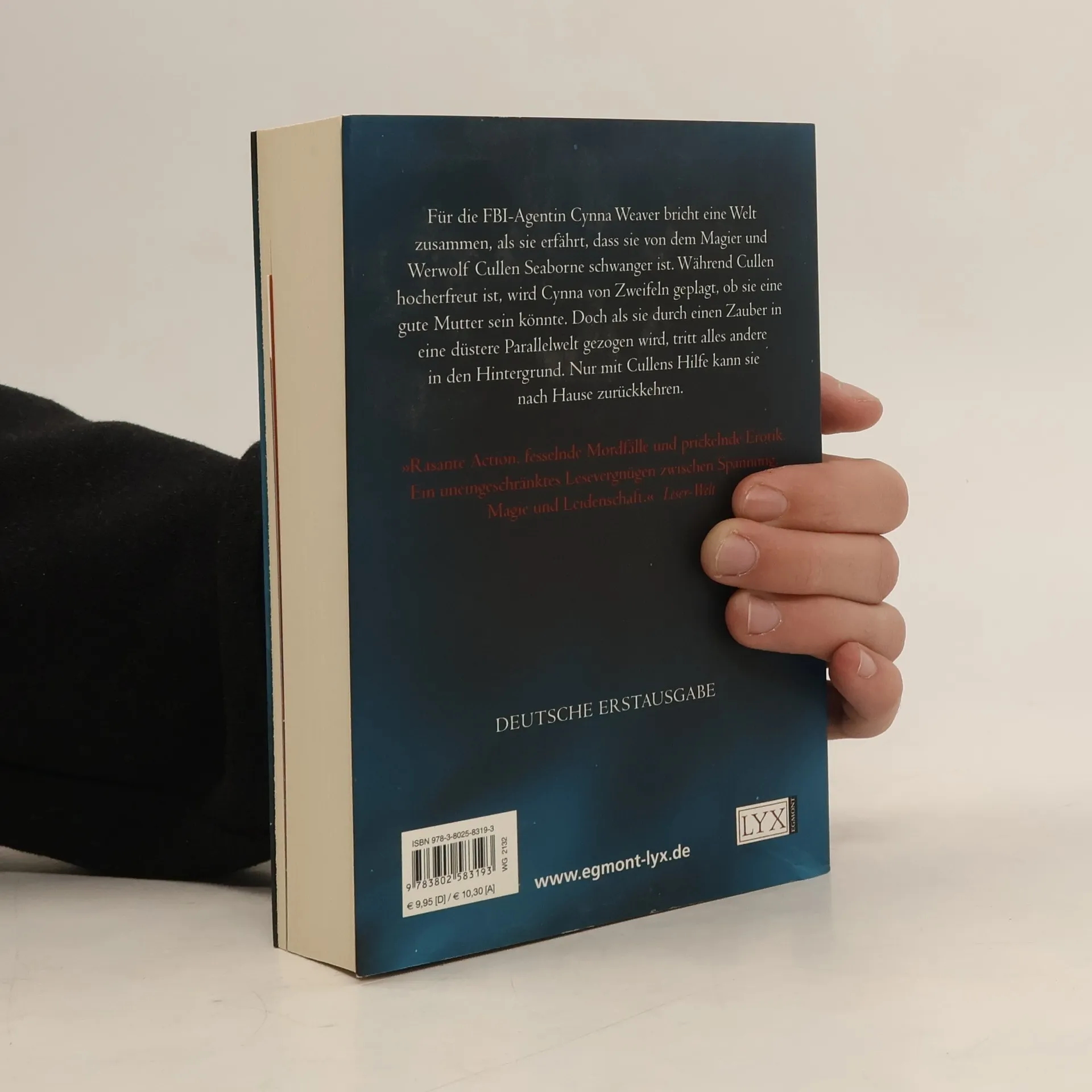 Für die FBI-Agentin Cynna Weaver bricht eine Welt zusammen, als sie erfährt, dass sie schwanger ist. Der Vater des Kindes ist der Werwolf und Magier Cullen Seaborne. Doch während Cullen hocherfreut ist, wird Cynna von Zweifeln geplagt: Was weiß sie schon über Kinder? Ihre eigene Kindheit war schließlich alles andere als glücklich. Ihre Mutter war Alkoholikerin, und ihr Vater hat die Familie schon früh verlassen. Zumindest hat Cynna das immer geglaubt. Doch dann findet sie sich zu ihrer Überraschung in einer anderen Dimension wieder, in der ihr Vater all die Jahre gelebt hat. Und nur mit Cullens Hilfe kann sie in die Wirklichkeit zurückkehren.
