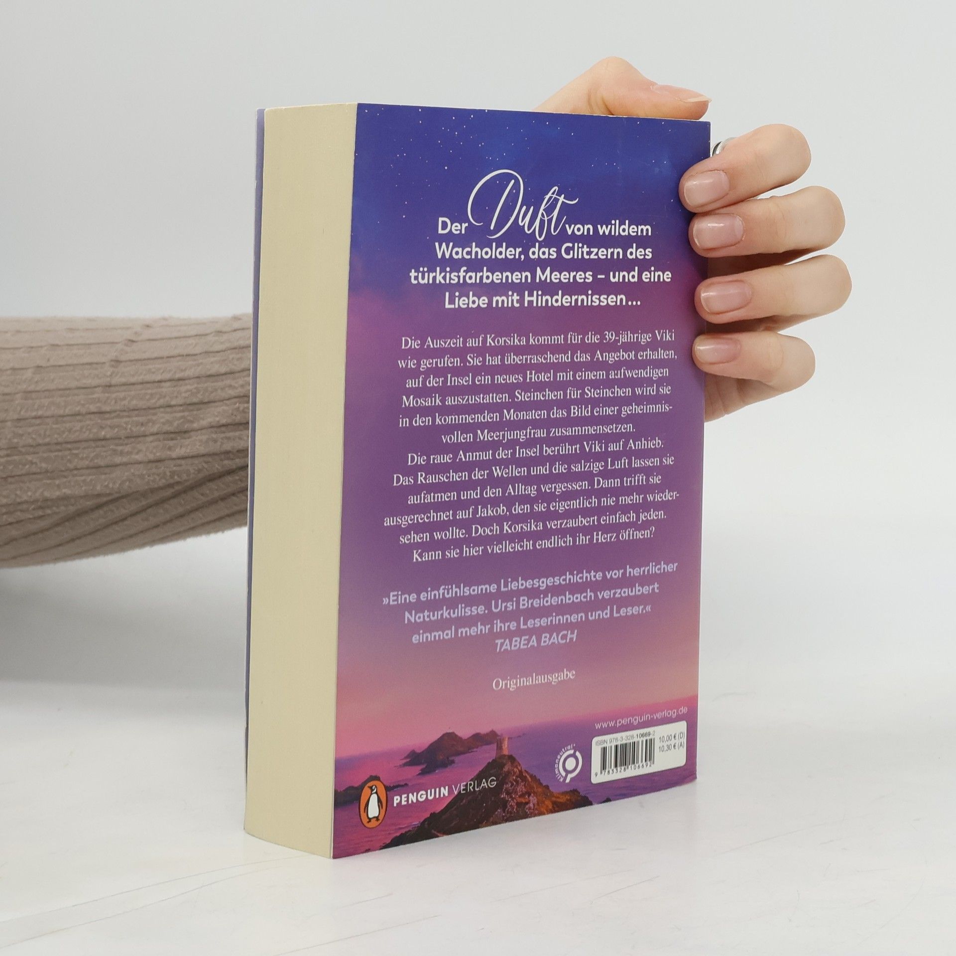 Eine Auszeit auf Korsika kommt für die 39-jährige Viki genau richtig. Sie erhält die Chance, ein neues Hotel mit einem aufwendigen Mosaik zu gestalten und beginnt, das Bild einer geheimnisvollen Meerjungfrau zu kreieren. Bei ihrer Ankunft spürt sie sofort die positive Wirkung der salzigen Luft und der sanften Wellen. Die raue Schönheit der Insel zieht sie in ihren Bann. Doch dann begegnet sie Jakob, den sie nach einem peinlichen Date eigentlich nie wiedersehen wollte. Korsika hat jedoch eine magische Anziehungskraft, und vielleicht gelingt es Viki und Jakob, sich hier endlich zu öffnen und ihre Herzen füreinander zu gewinnen. Der Roman wurde mit dem DELIA-Preis für den besten Liebesroman 2022 ausgezeichnet und wird als herzergreifend, spritzig und fantasievoll beschrieben. Die lebensechten Figuren erzeugen Empathie und laden dazu ein, sich in ihre Liebesgeschichte zu vertiefen. Leser*innen möchten sich mit einem Glas Wein zu ihnen setzen und sich in die emotionale Erzählung einhüllen.