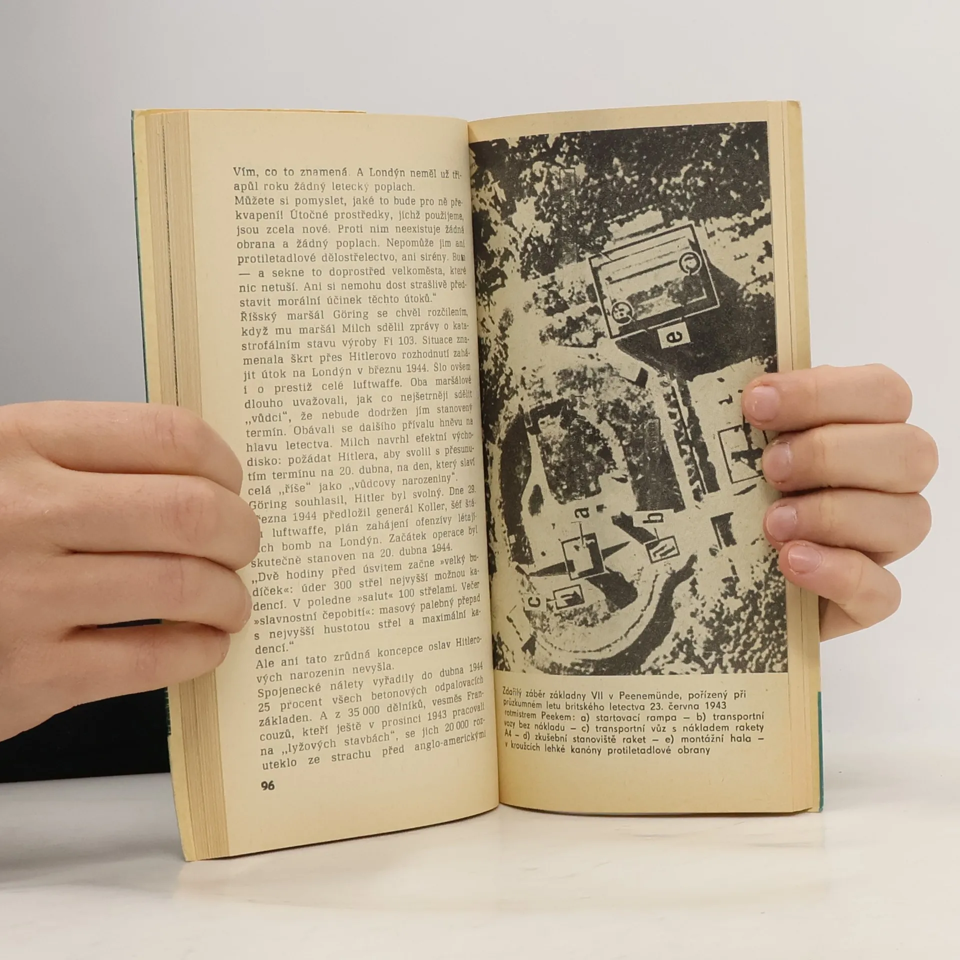 Jde o docela malý ostrov v Baltském moři, kde se nacistům podařilo vybudovat vojenskou základnu na výrobu a odpalováni tajných zbrani V1 a V2, které měly přinést zvrat ve vývoji války. Autoři J. Horský a J. Pražák sleduji ve své reportáži nejen historii raketové základny v Peeneműnde, alei zákulisí vývoje těchto »zázračných zbraní" v Německu a především dramatický boj britské zpravodajské služby, která se snažila tomuto největšímu tajemství druhé světové války přijít na kloub. Zvláště strhující je popis náletu na ostrov Usedom. Neméně poutavě jsou napsány i kapitoly, v nichž se hovoří o podílu českých a slovenských odbojářů na odhaleni laboratoři a továren, v nichž se zbraně V1 a V2 vyvíjely a vyráběly. Knížka je nesporně přínosem v literatuře s touto tematikou a vzbudí pozornost široké veřejnosti.