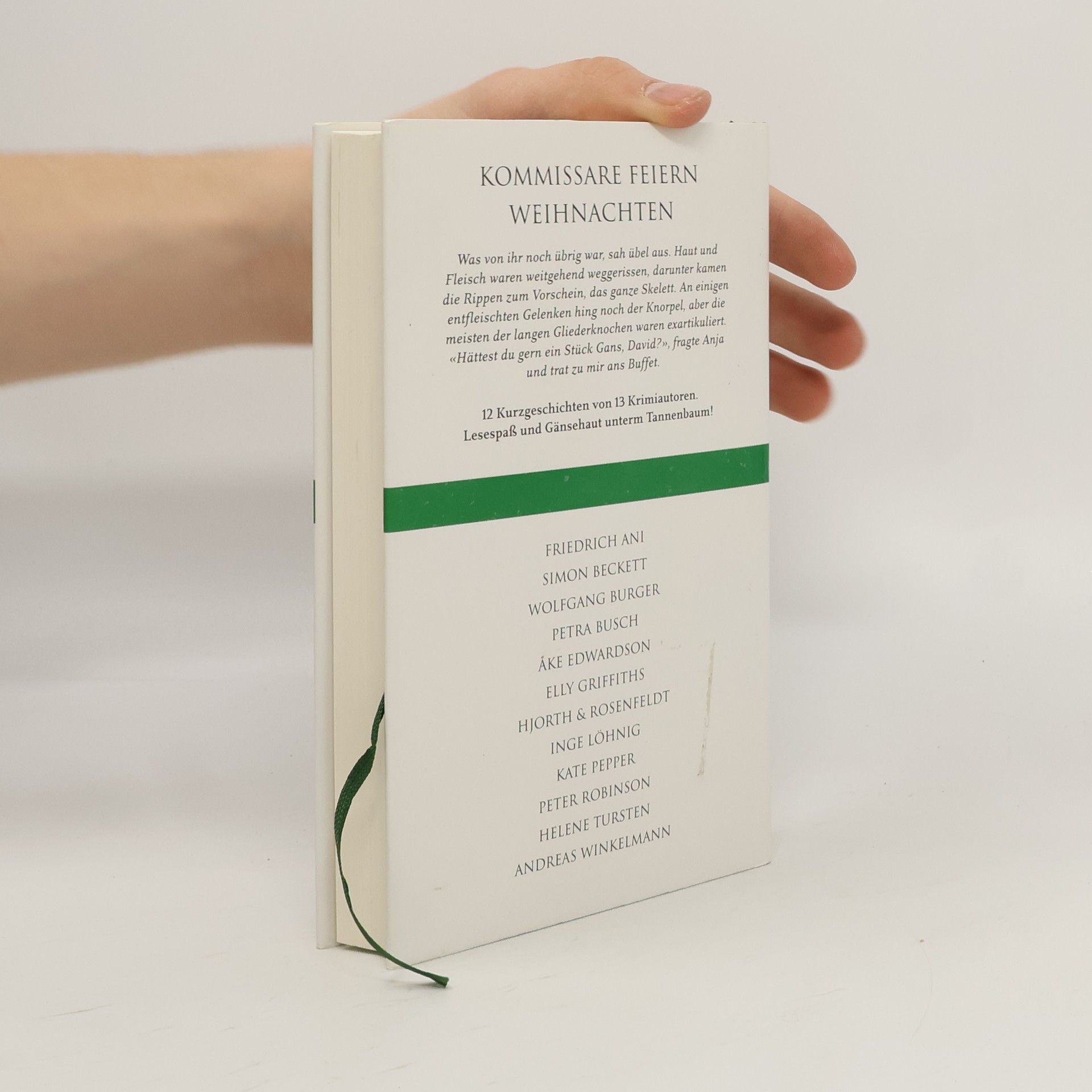 Kommissare feiern Weihnachten Was von ihr noch übrig war, sah übel aus. Haut und Fleisch waren weitgehend weggerissen, darunter kamen die Rippen zum Vorschein, das ganze Skelett. An einigen entfleischten Gelenken hing noch der Knorpel, aber die meisten der langen Gliederknochen waren exartikuliert. «Hättest du gern ein Stück Gans, David?», fragte Anja und trat zu mir ans Buffet.12 Kurzgeschichten von 13 Krimiautoren. Lesespaß und Gänsehaut unterm Tannenbaum!Friedrich AniSimon BeckettWolfgang BurgerPetra BuschÅke EdwardsonElly GriffithsHjorth & RosenfeldtInge LöhnigKate PepperPeter RobinsonHelene TurstenAndreas Winkelmann