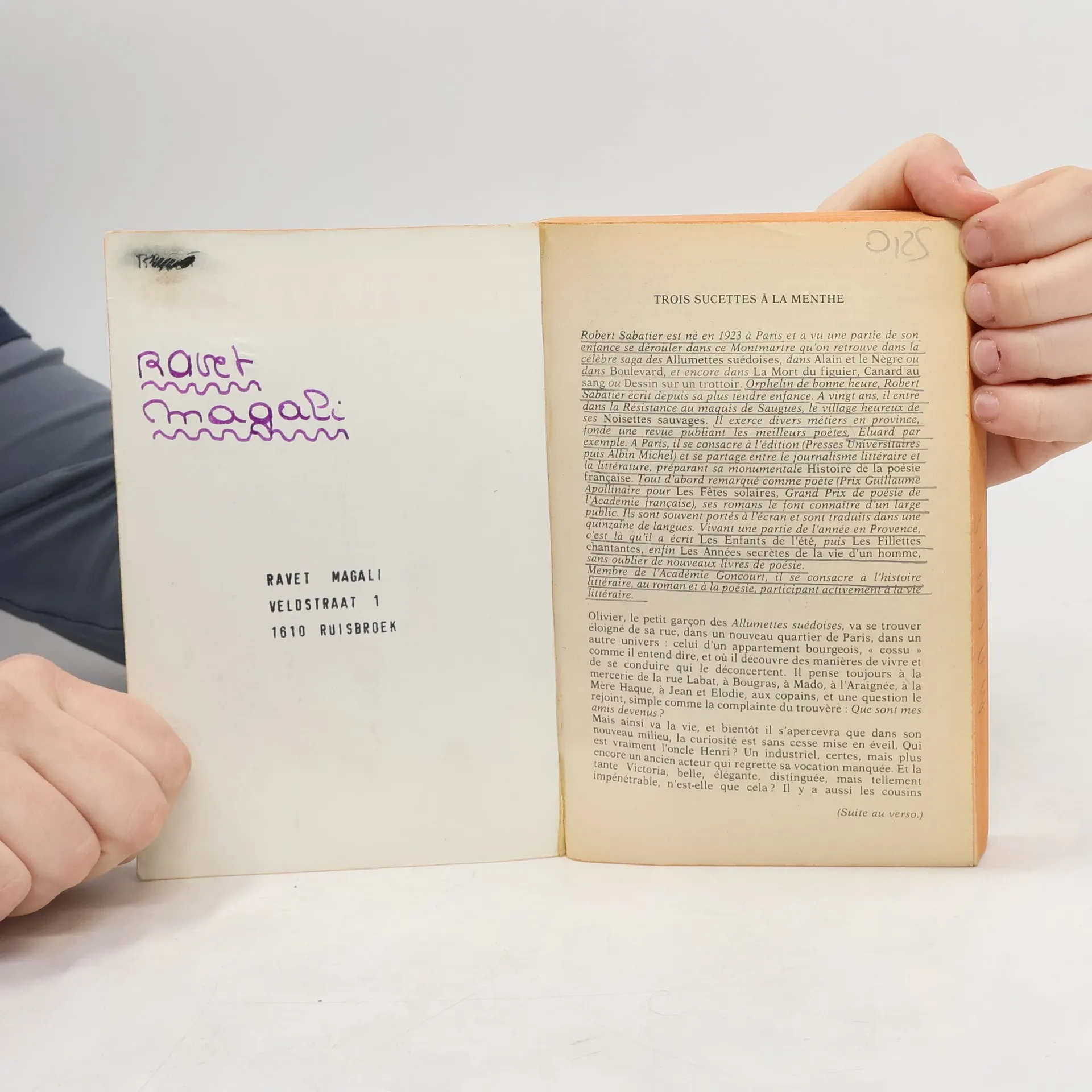 Trois sucettes à la menthe, Robert Sabatier