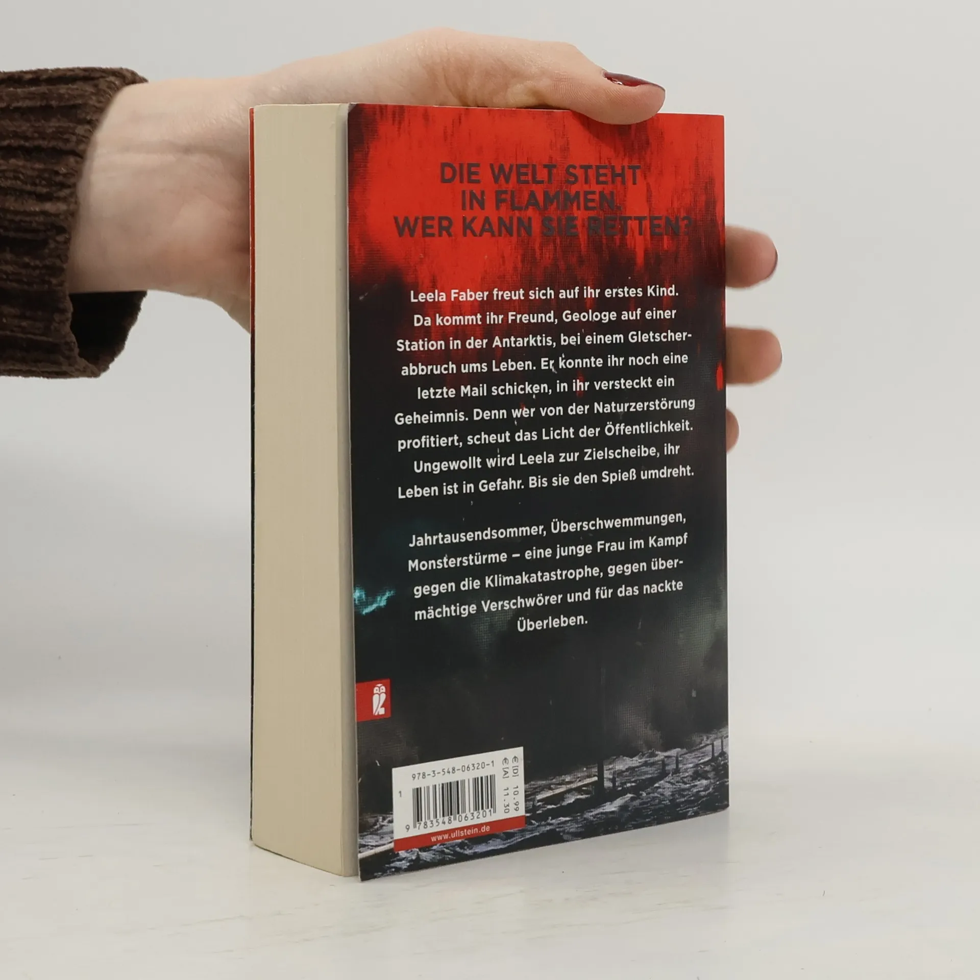 Wenn die Welt zu sterben droht, was tust du, um sie zu retten? Die Welt steht in Flammen. Wer kann sie retten? Es ist wärmer als je zuvor. In der Antarktis bricht ein Milliarden Tonnen schwerer Gletscher ab. Die deutsche Forschungsstation Neumayer III versinkt im Meer und mit ihr der Glaziologe Jakob Richter. Doch vor seinem Tod konnte er seiner Freundin Leela noch Dokumente schicken, die beweisen, wie große Konzerne die Klimakatastrophe befördern. Leela nimmt den Kampf gegen die Mächtigen auf, erleidet Niederlage um Niederlage, und weiß am Ende nur noch einen Ausweg … Jahrtausendhochwasser, wochenlang mörderische Hitze, Monsterstürme - eine junge Frau im Kampf gegen die Klimakatastrophe, gegen übermächtige Verschwörer und ums nackte Überleben.