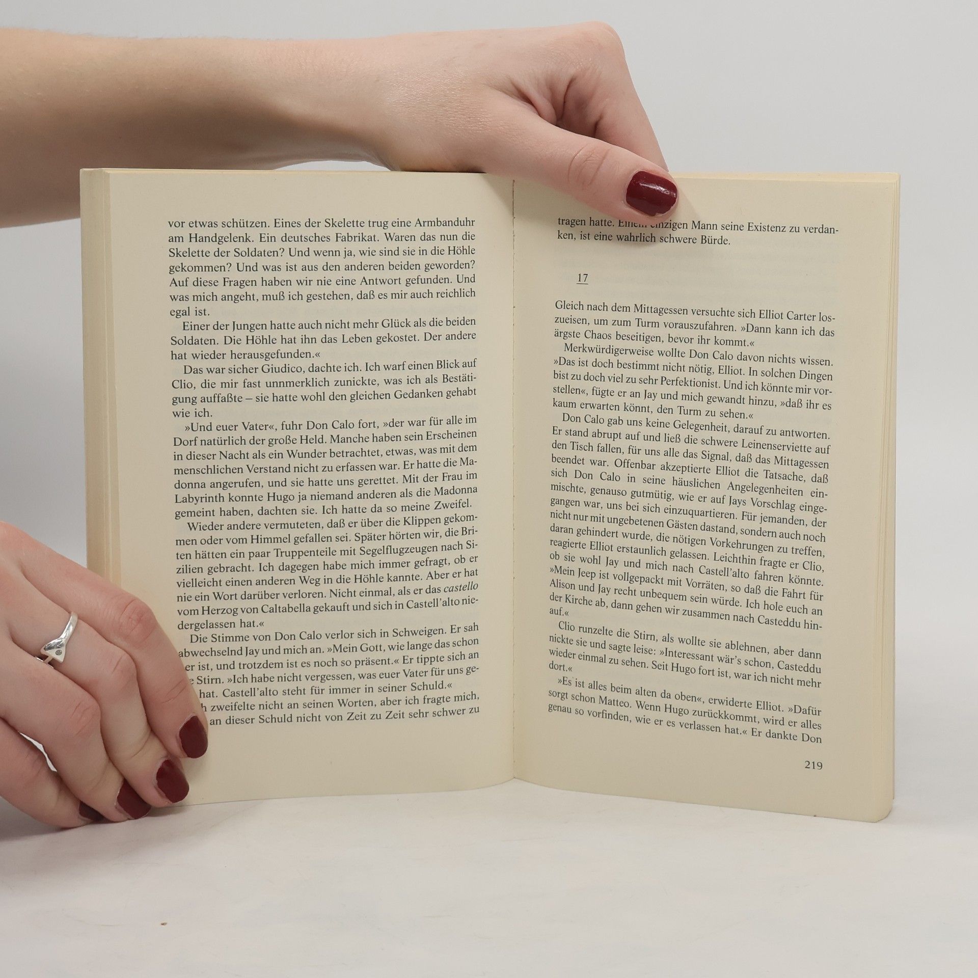 Alison Jordan steht vor der schwierigsten Aufgabe ihres Lebens: Sie muß ihren seit langem vermißten Vater, den berühmten Architekten und Archäologen Hugo Raphael, finden und vor einer tödlichen Gefahr warnen. Gemeinsam mit ihrem Halbbruder Jay reist sie nach Sizilien, nach Castell'alto, dem Dorf, das Gott vergessen hat. Ein Ziel, so abgelegen, daß es nicht einmal auf den Landkarten zu finden ist. Hier besitzt Hugo ein altes Kastell. Hier hoffen sie, ihn zu finden. Doch Castell'alto ist kein Ort für Fremde, wie sie schon bald erfahren. Und es birgt ein Geheimnis - ein Geheimnis, das für Alisons Zukunft entscheidend ist.